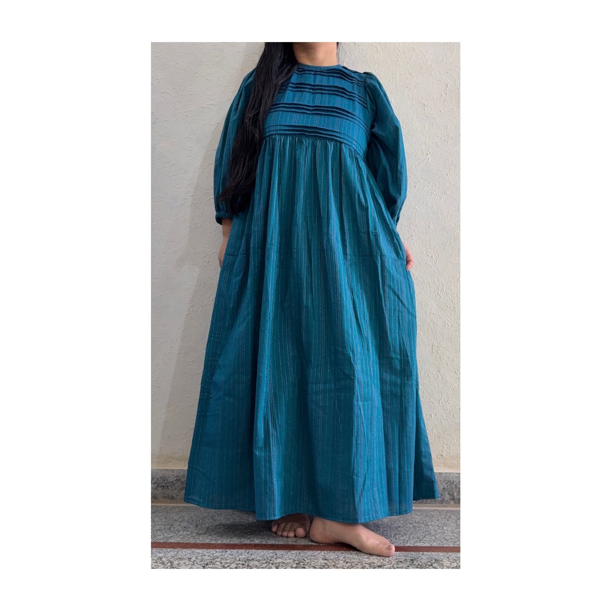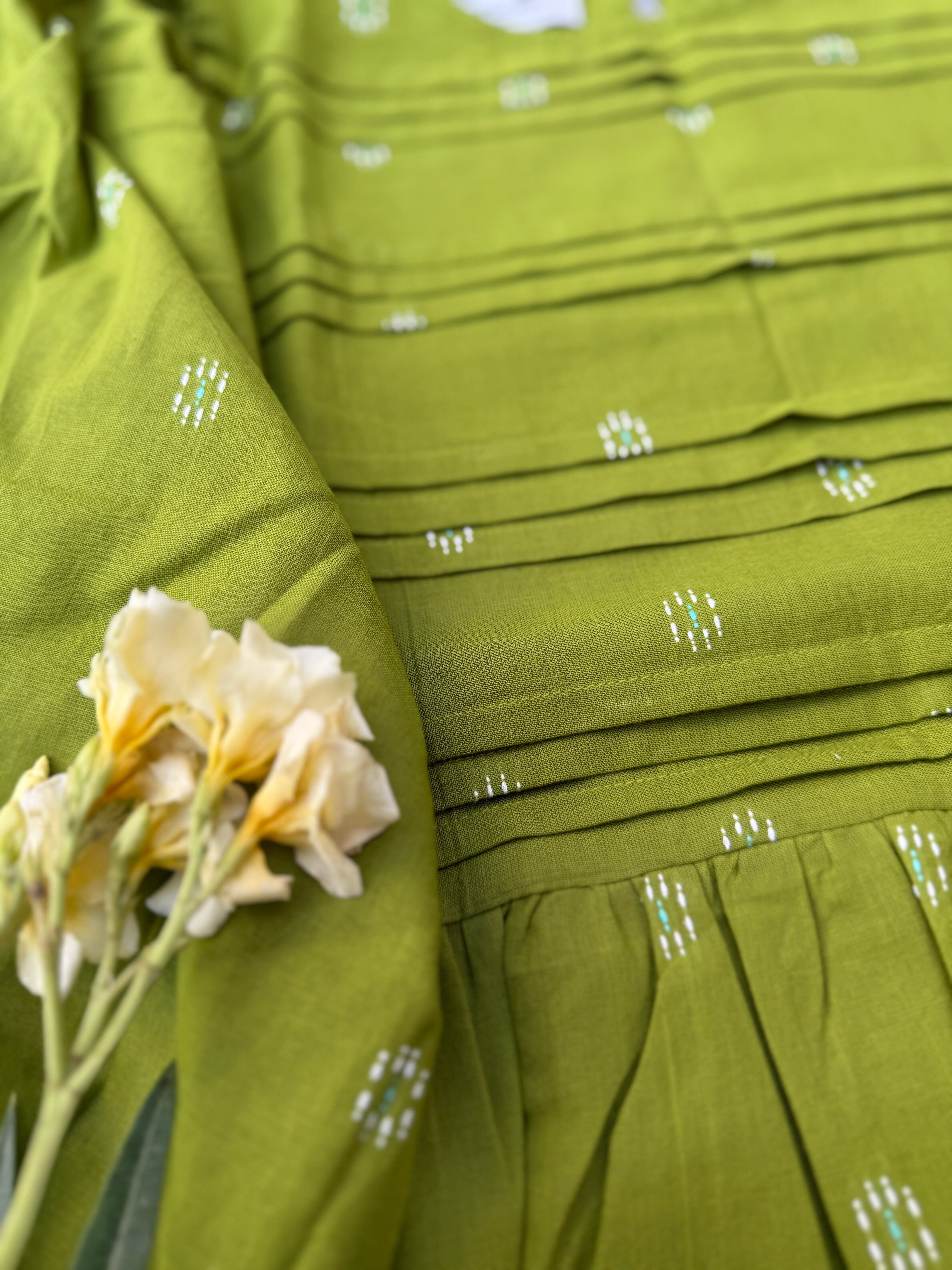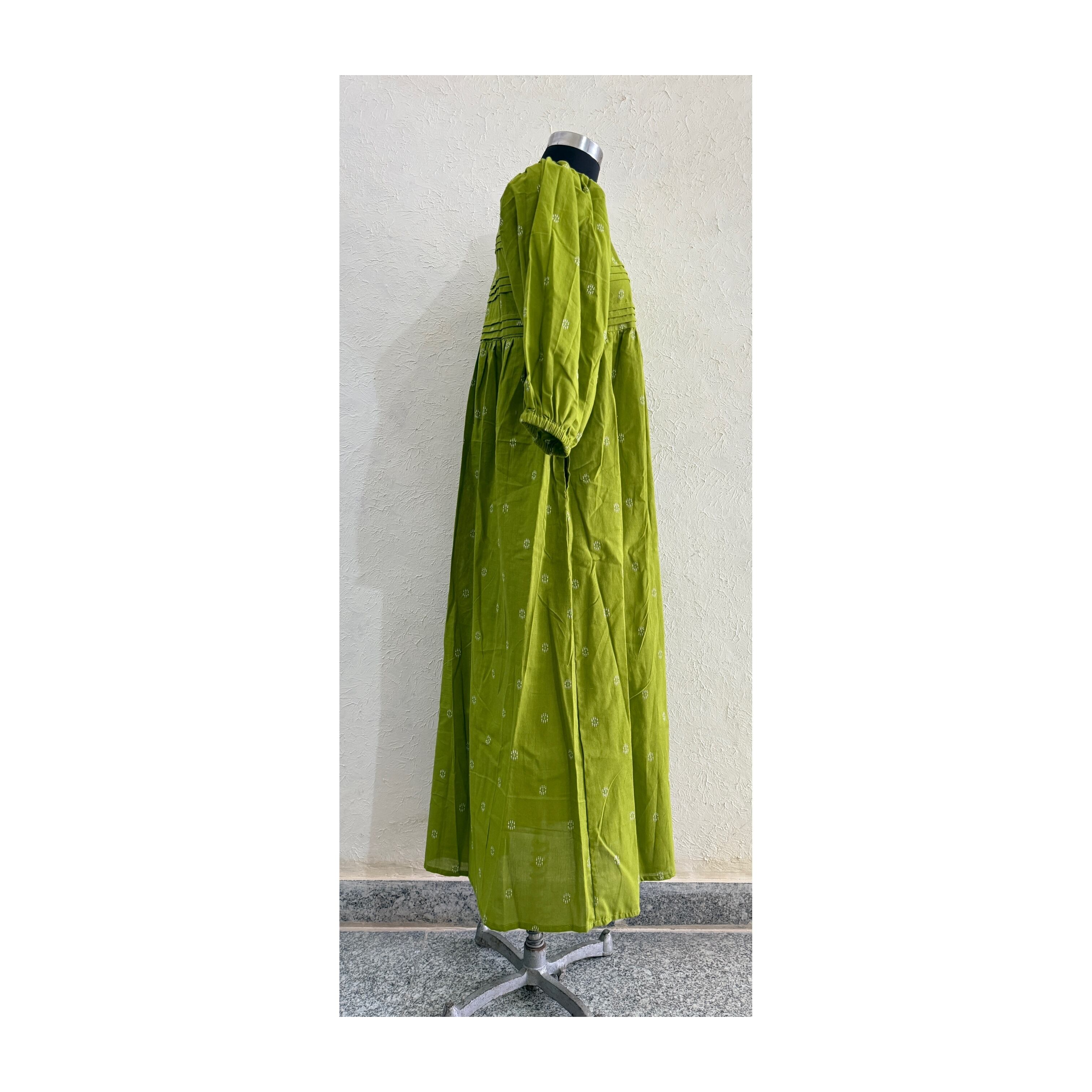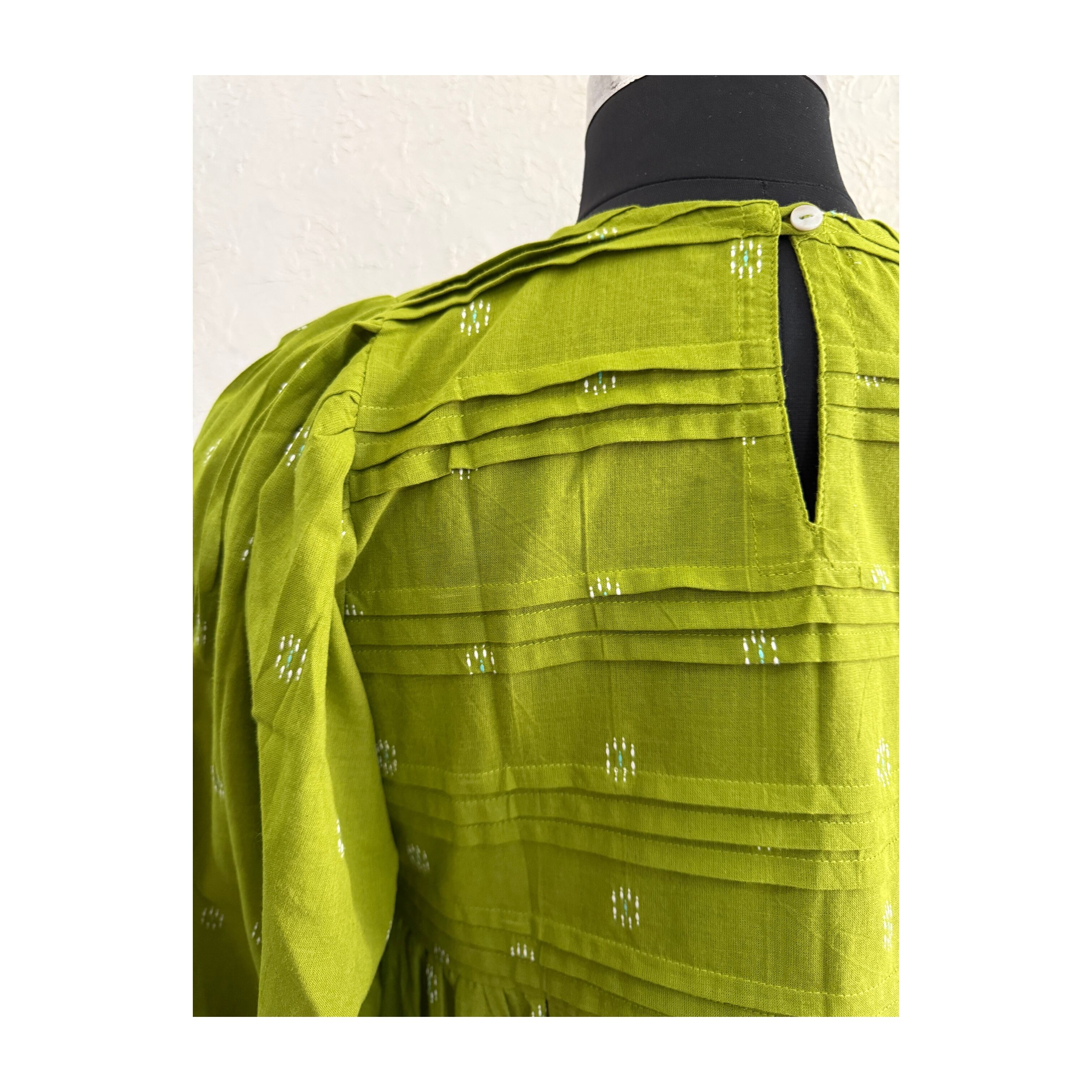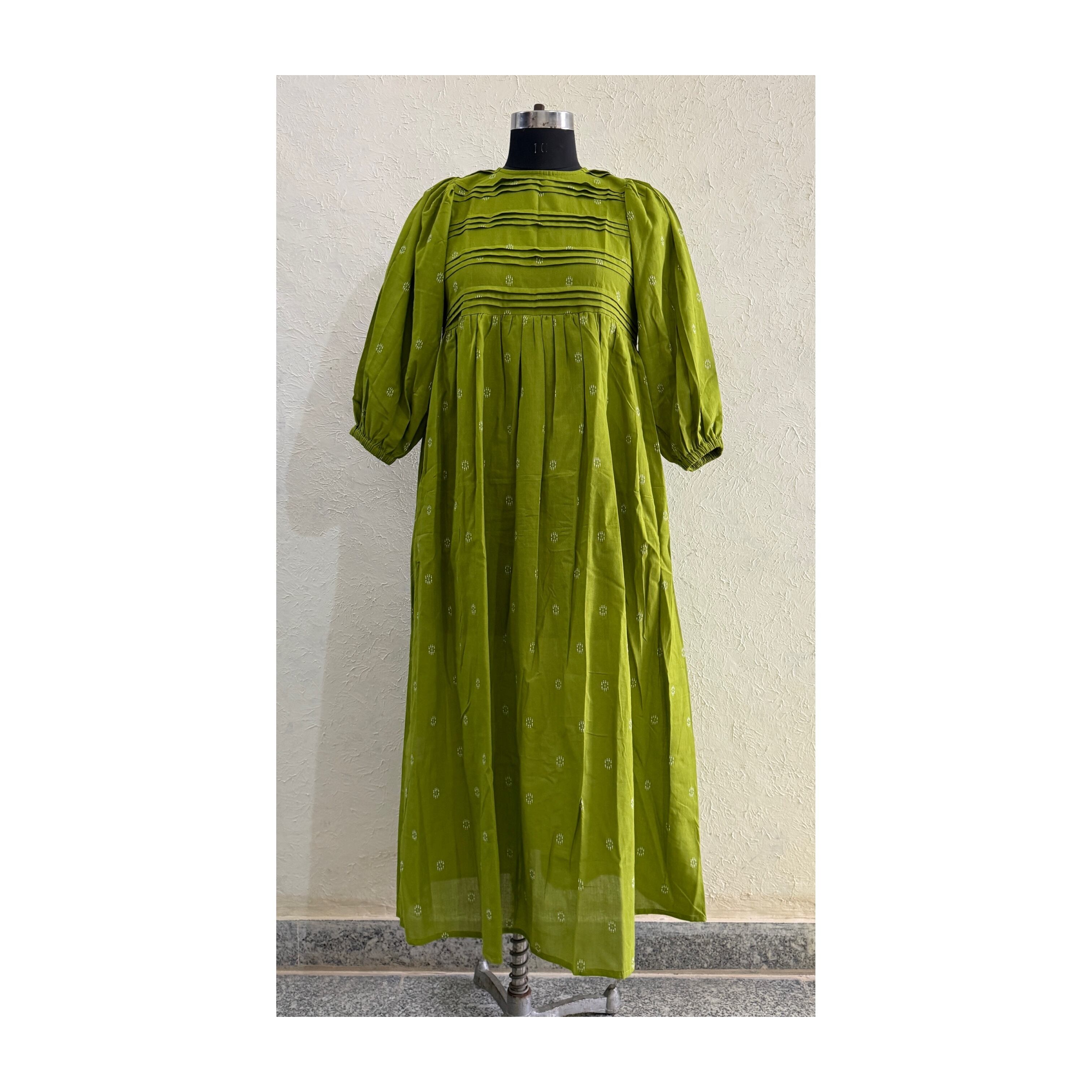 saruche 南インドコットン ピンタックパフスリーブワンピース UGUISU