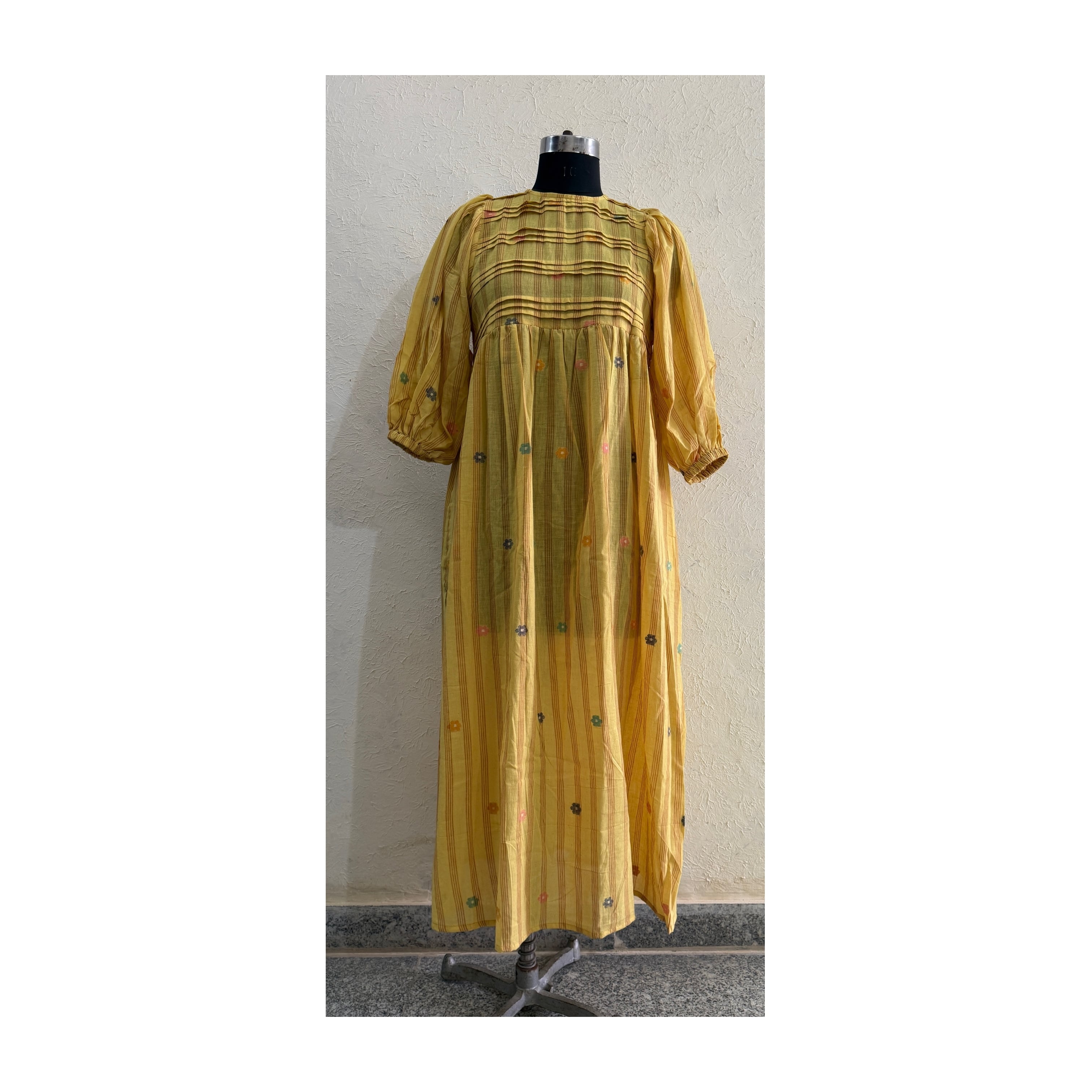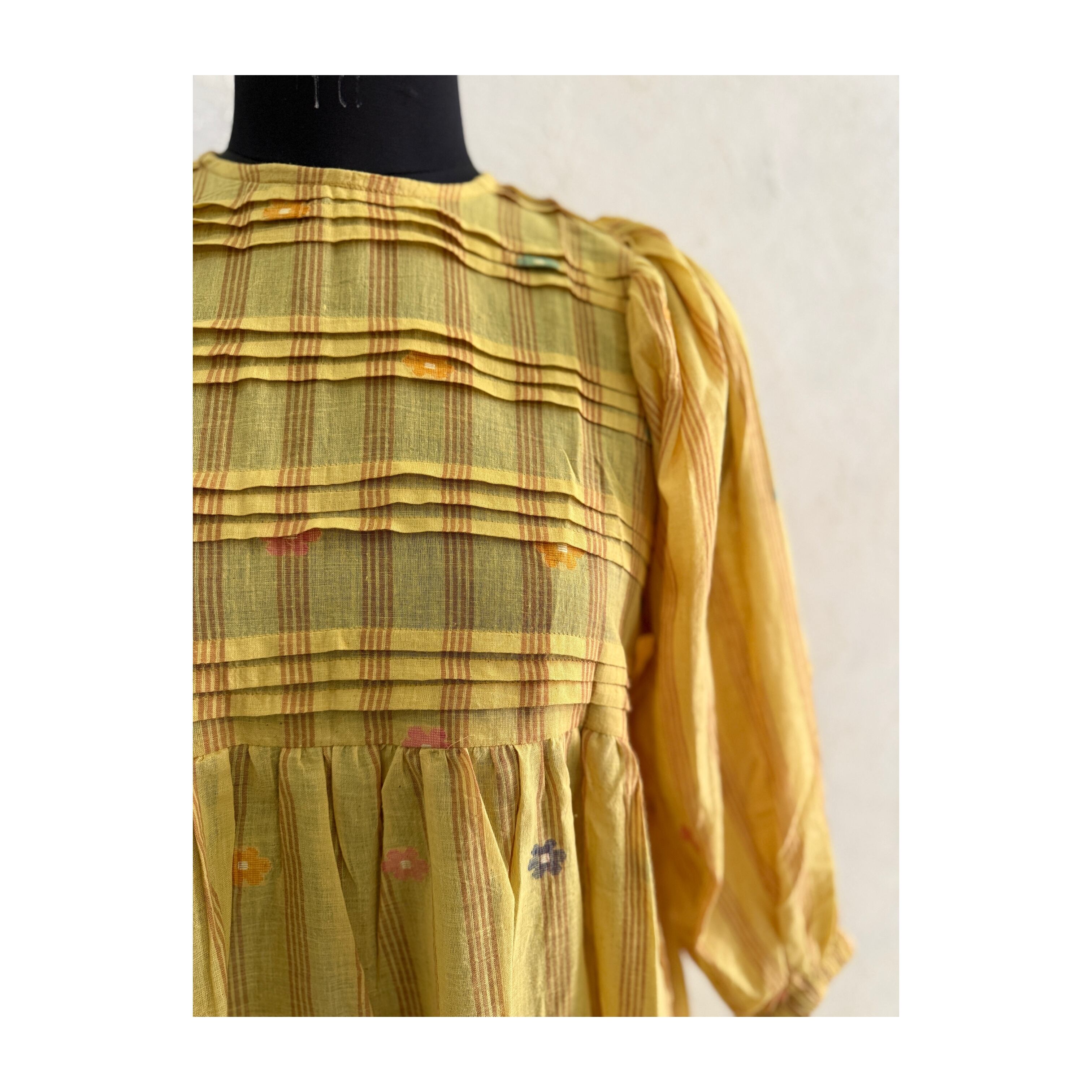 saruche ジャムダニコットン ピンタックパフスリーブワンピース OHANA