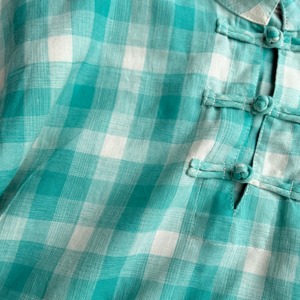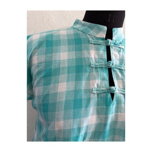 saruche 南インドカディコットン チェックのハイネックチャイニーズボタンクルタ Mint Green