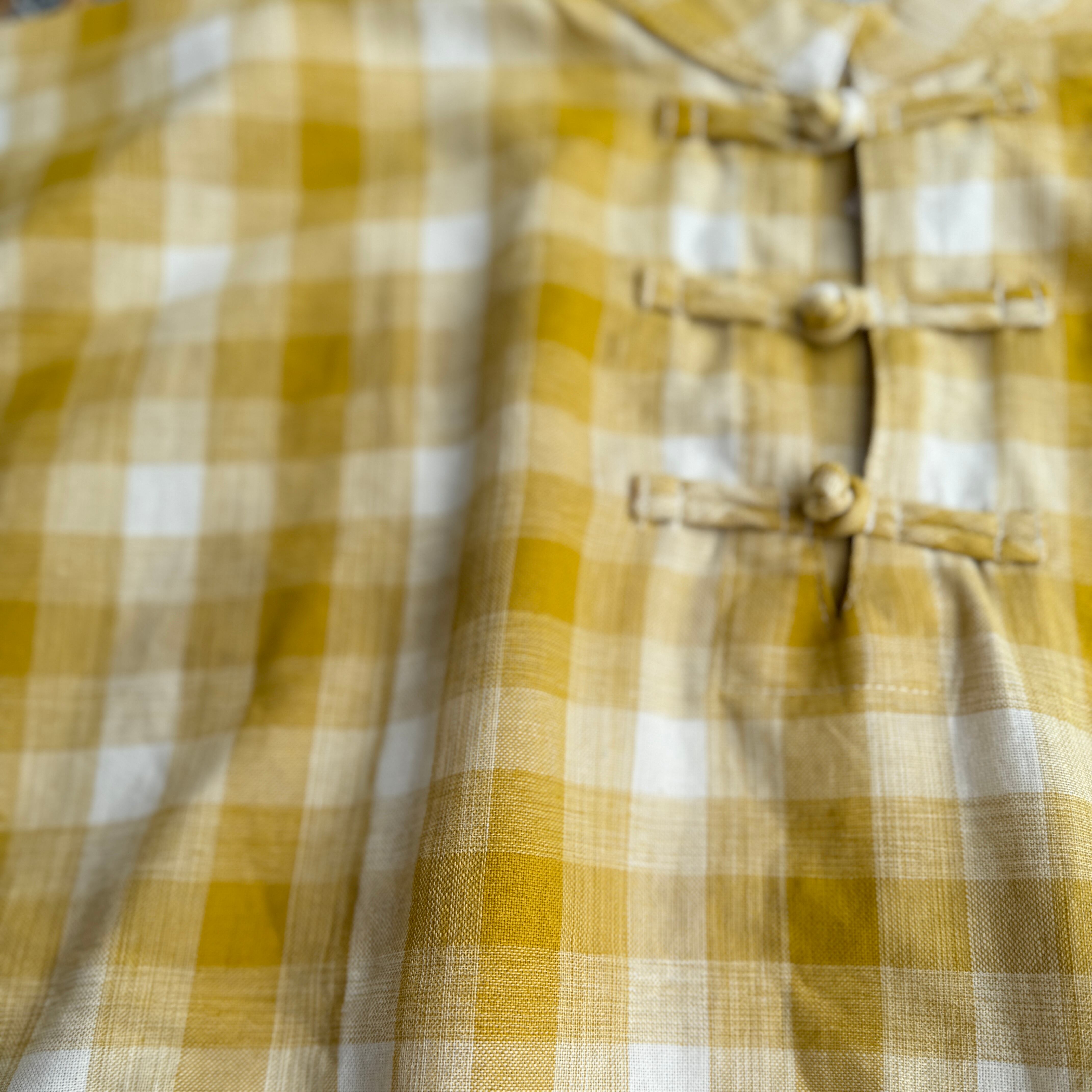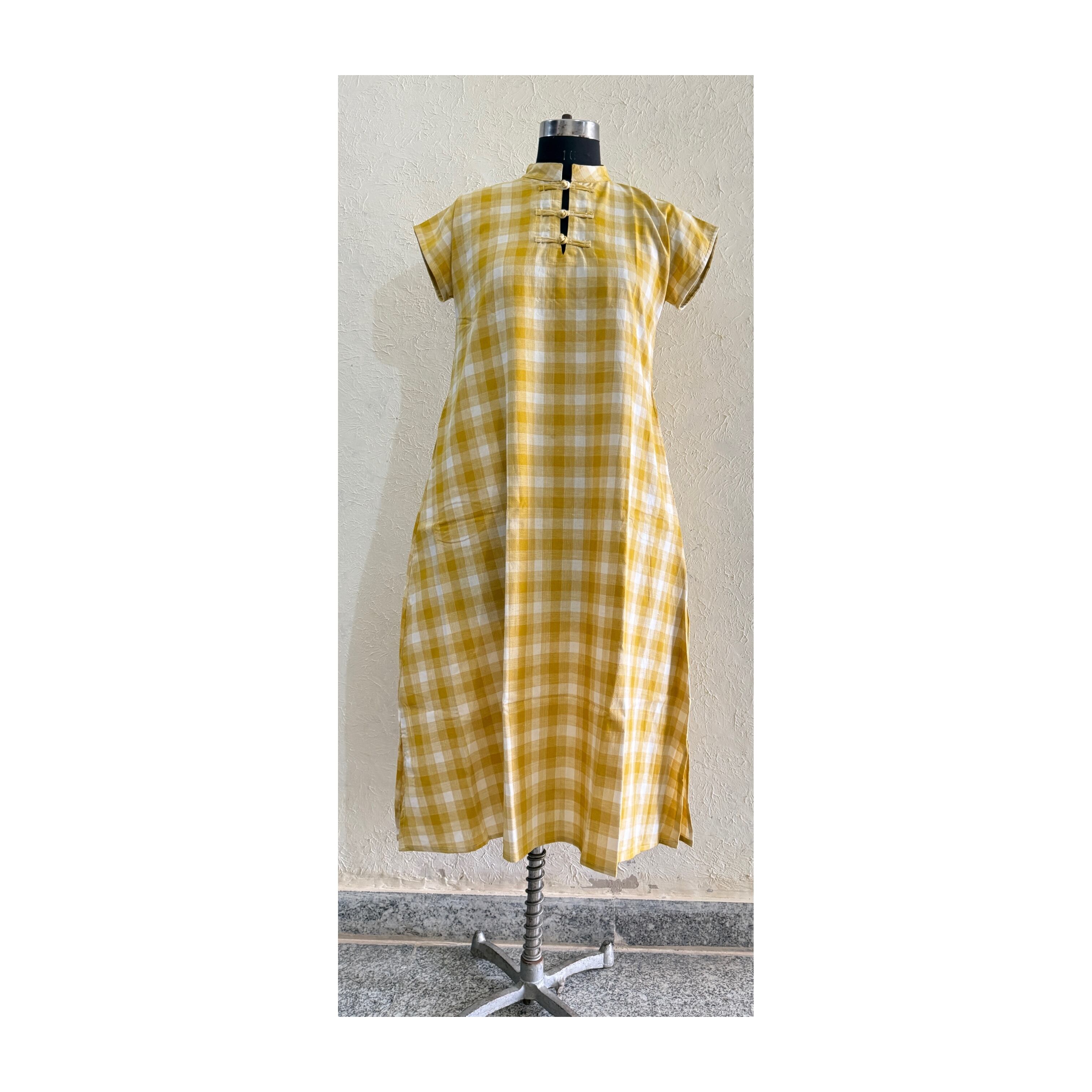 saruche 南インドカディコットン チェックのハイネックチャイニーズボタンクルタ Yellow