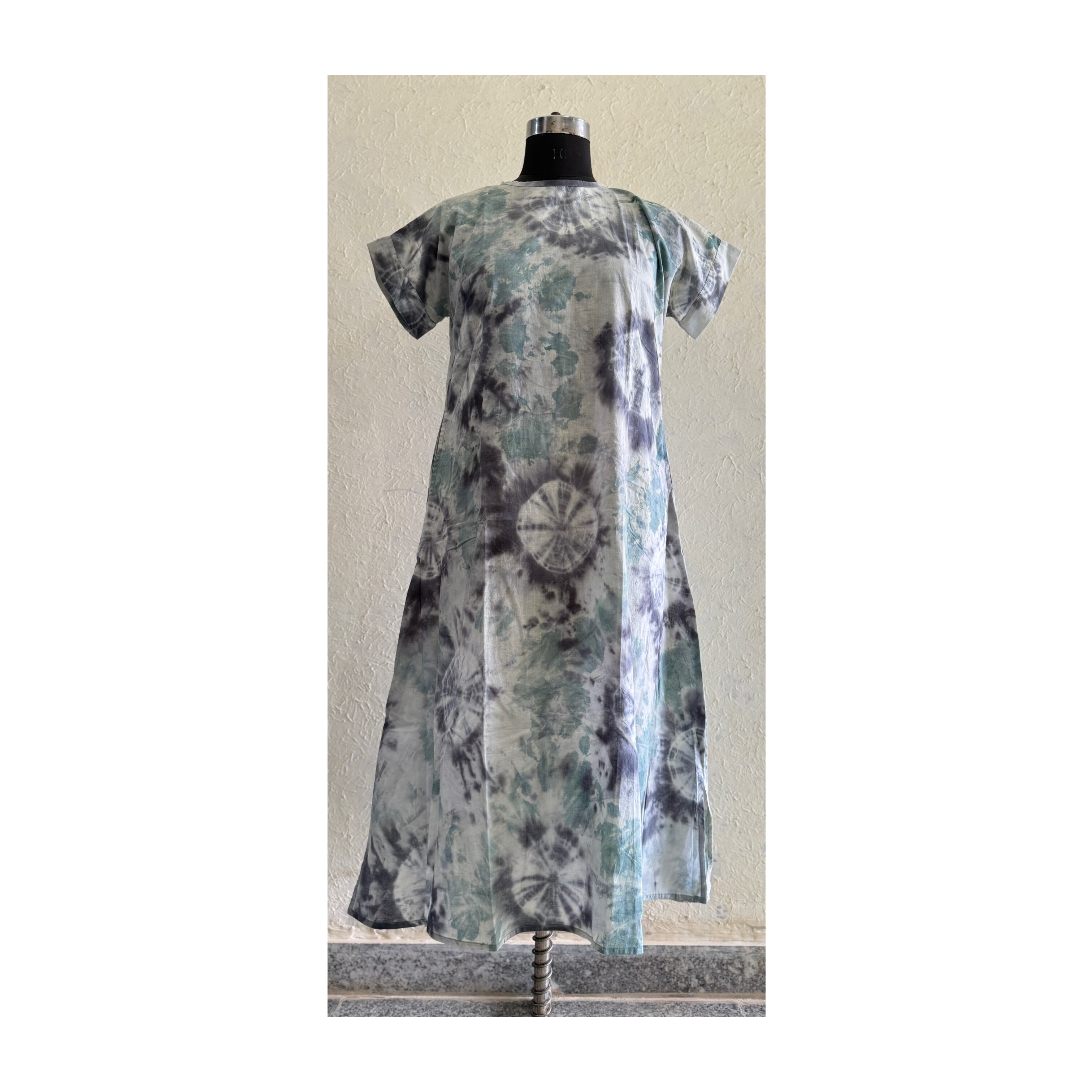 saruche タイダイ 絞り染 バックリボンプレーンワンピース UGUISU