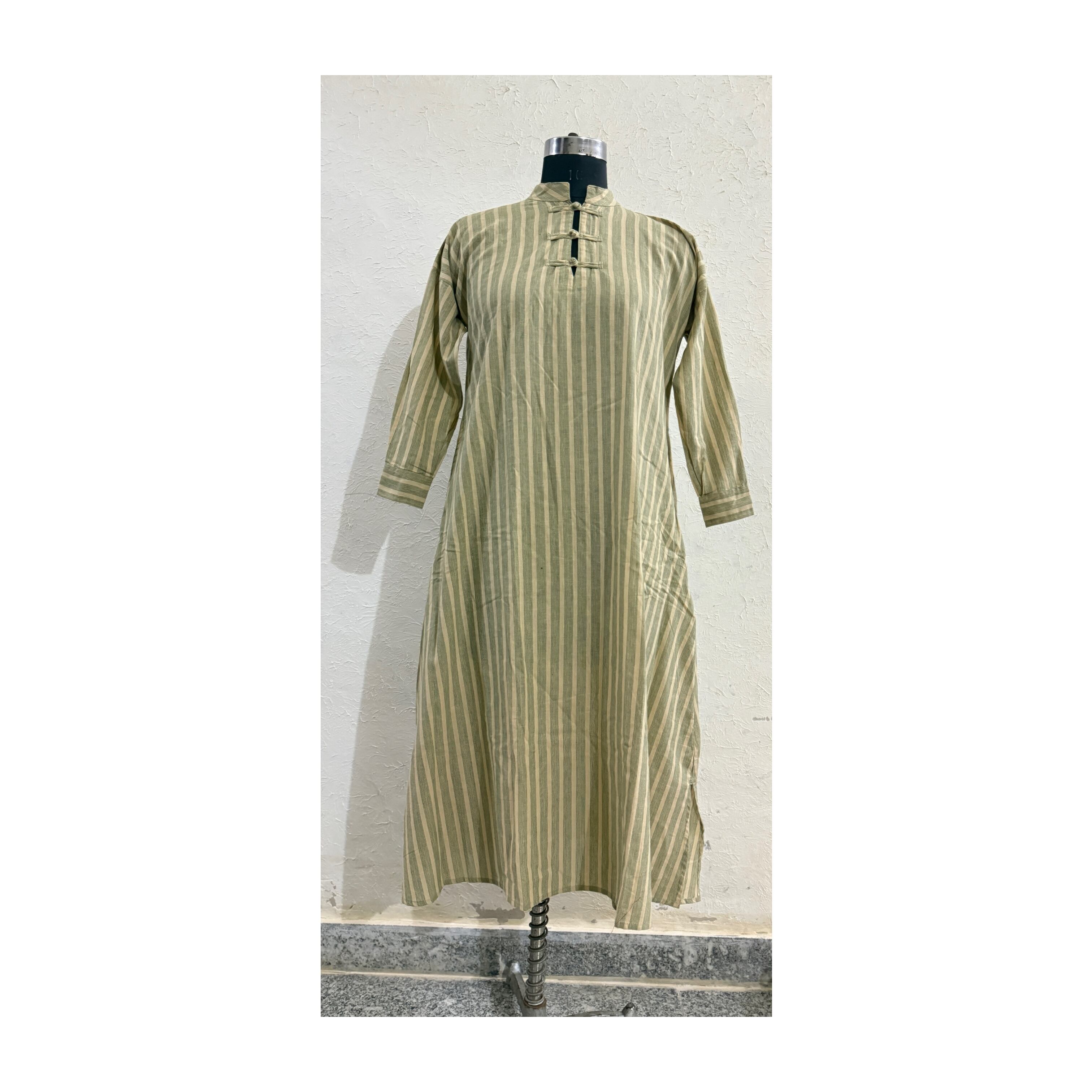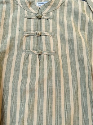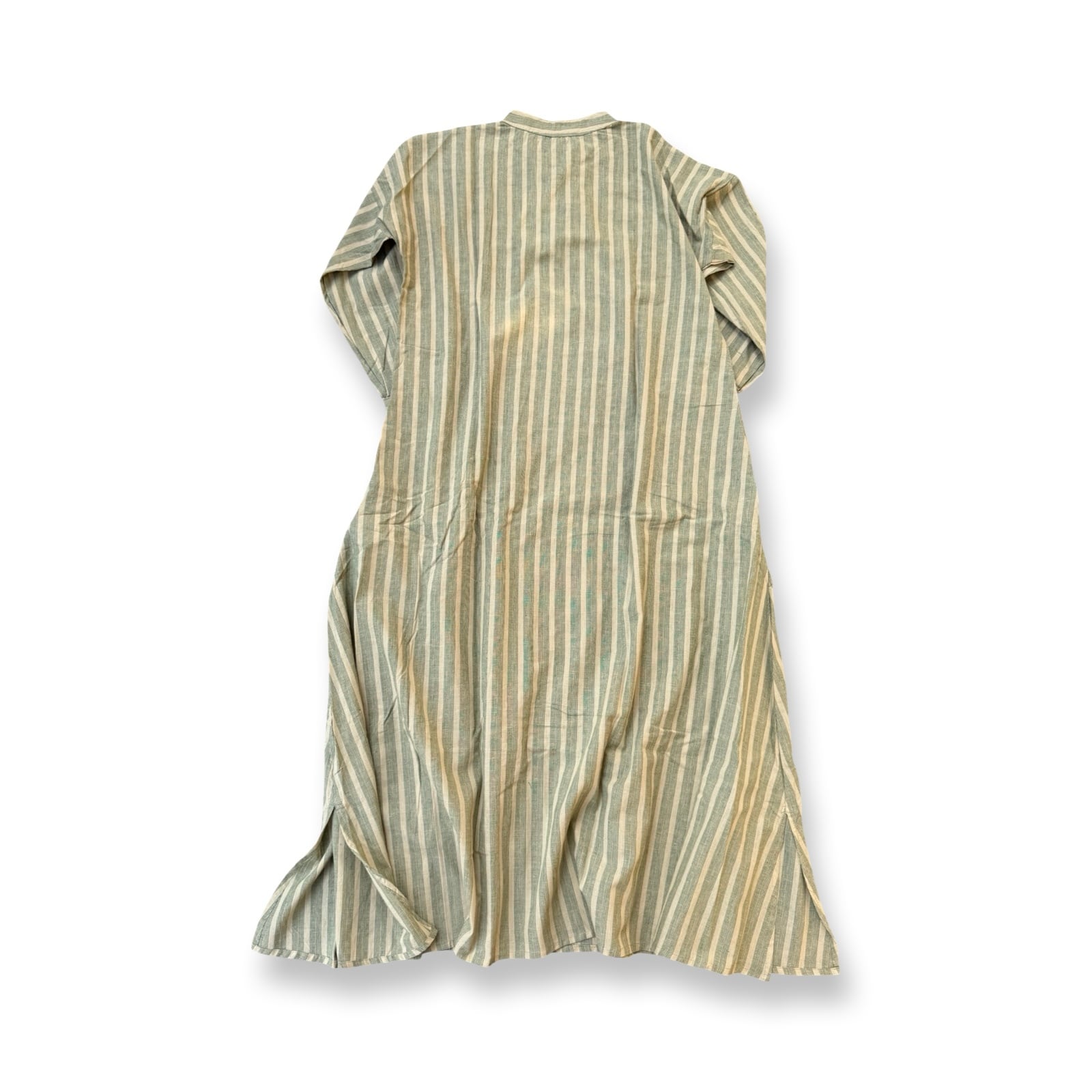saruche 南インドカディコットン ストライプチャイニーズボタンワンピース Green