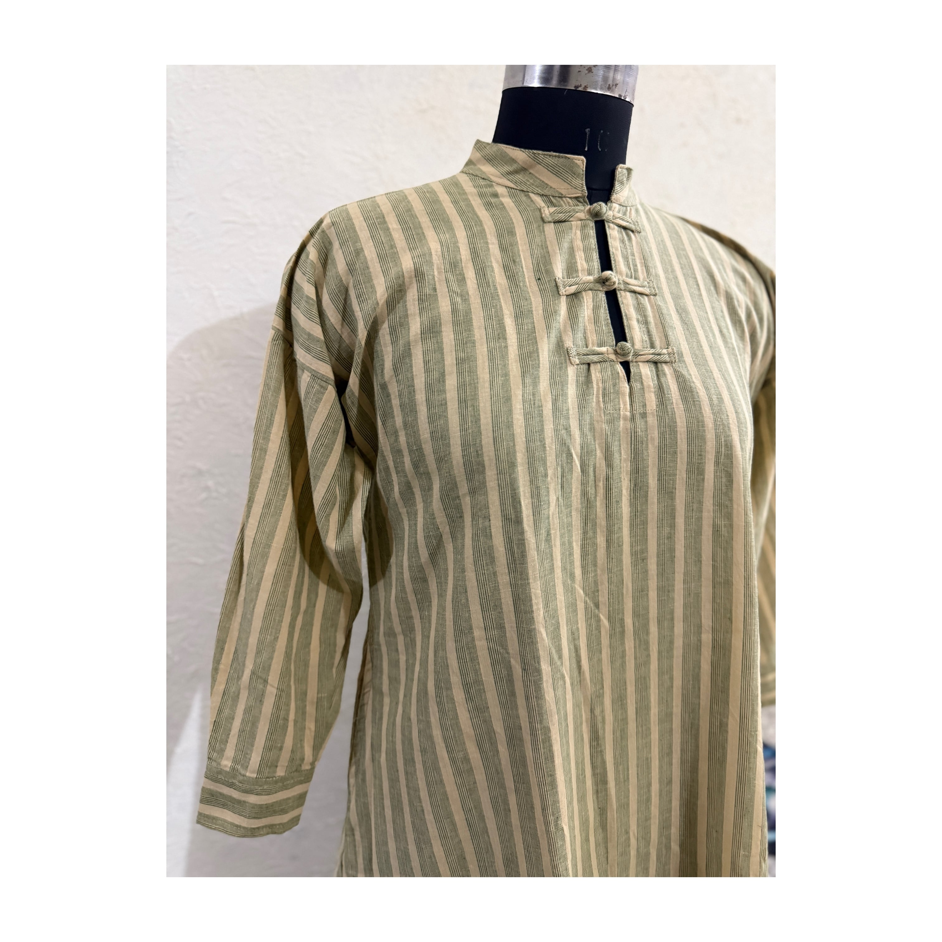 今回のクルタシリーズは南インドのメンズライクなストライプがナチュラルで魅力的なカディコットンで。