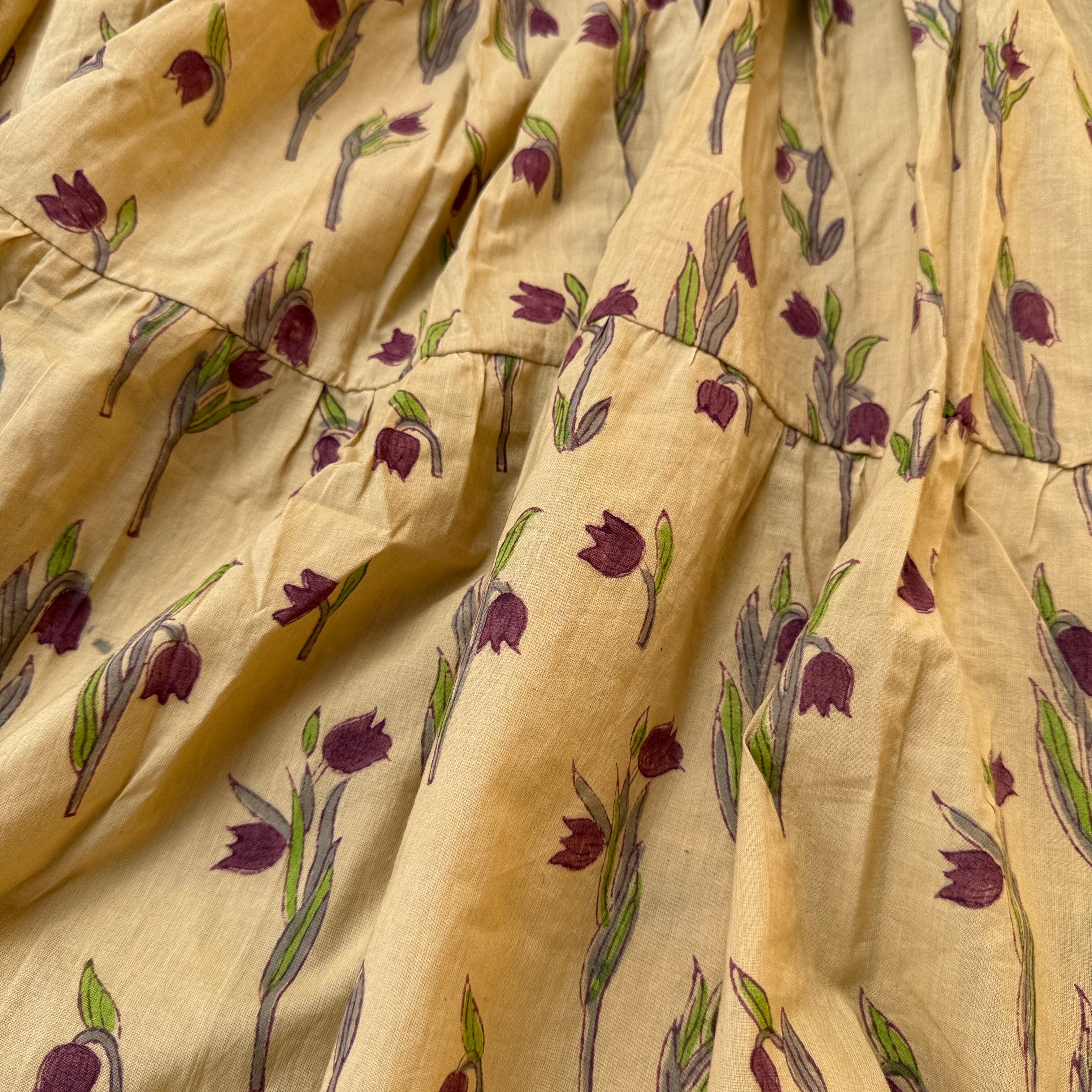saruche ブロックプリント スクエアヨークキルティングワンピース Kinari Purple
