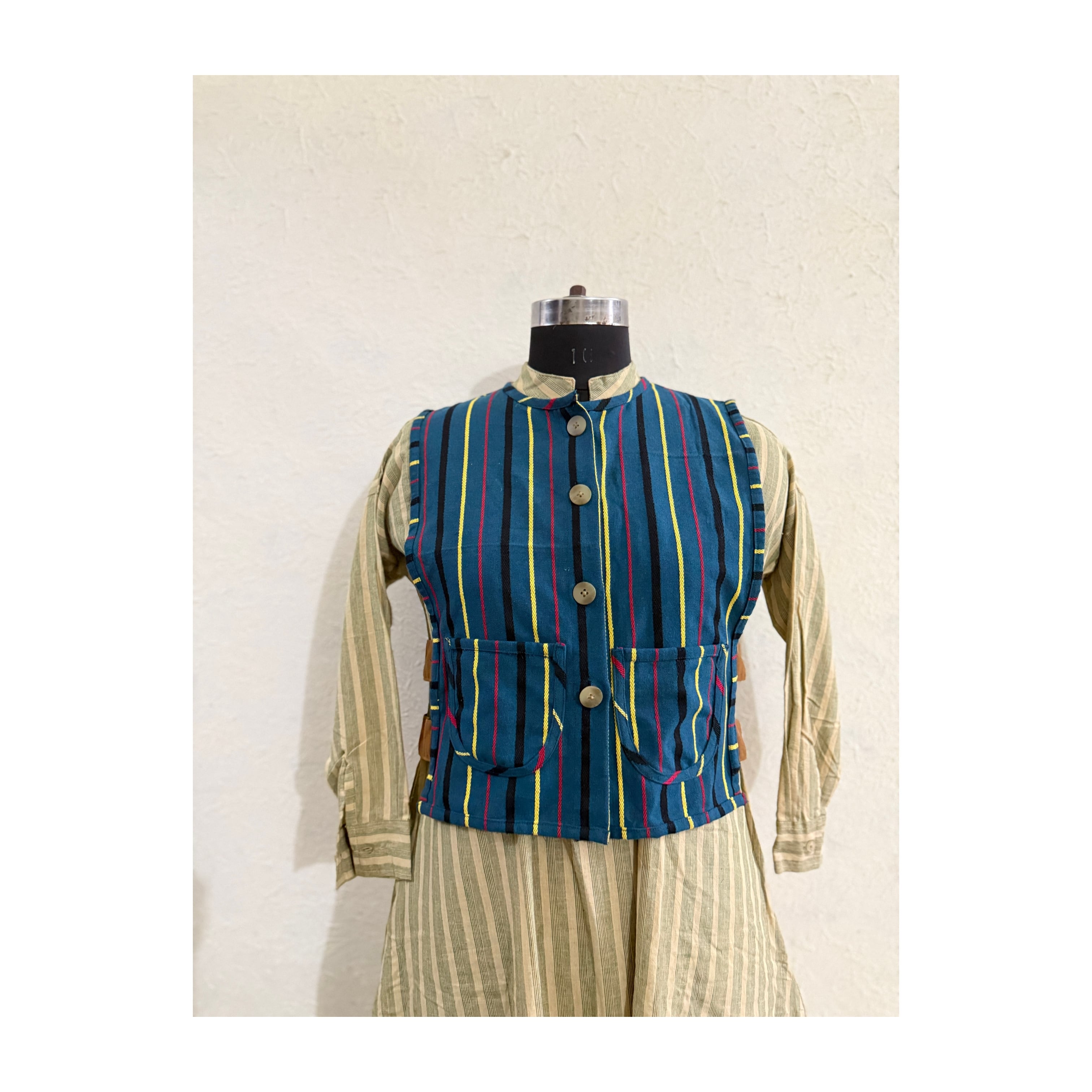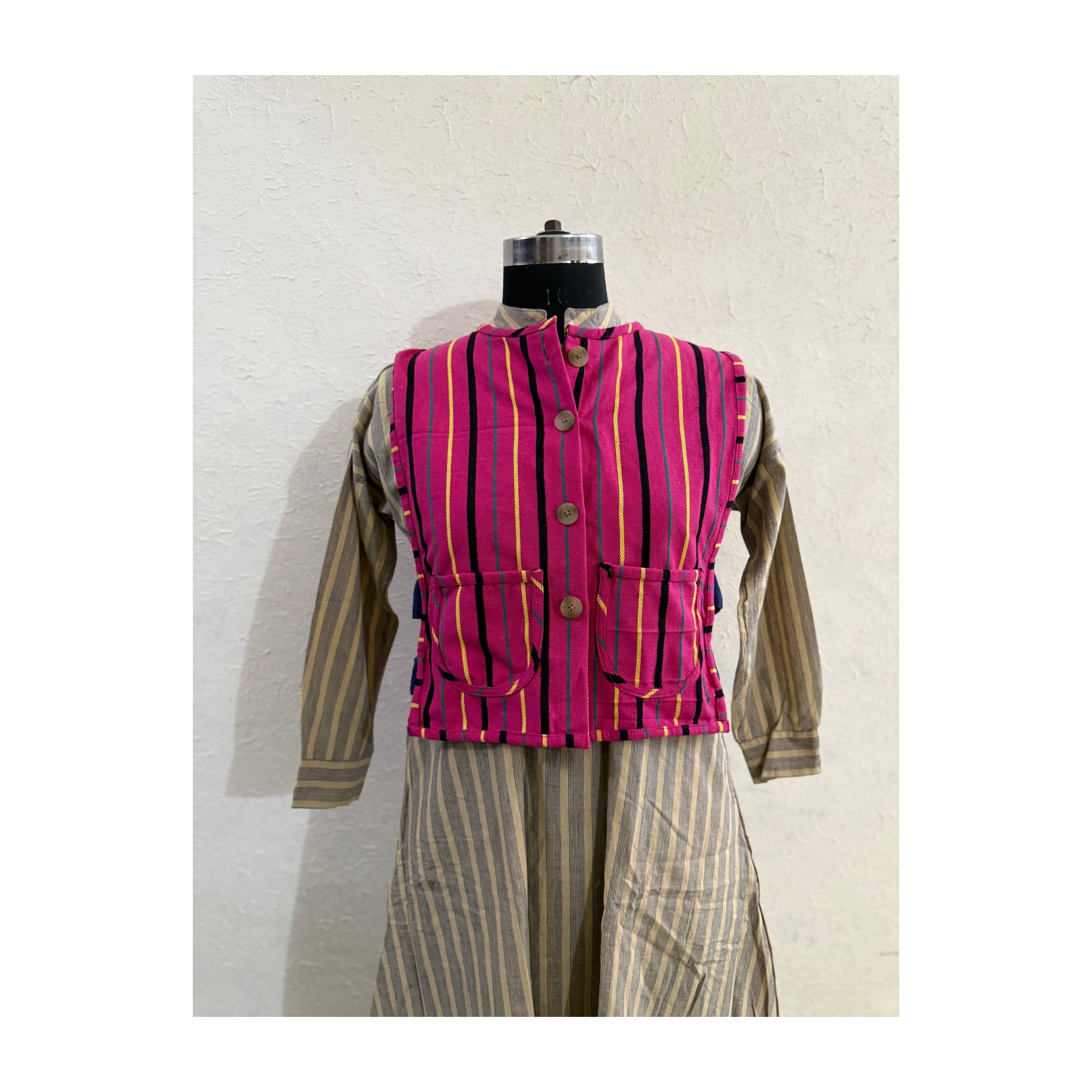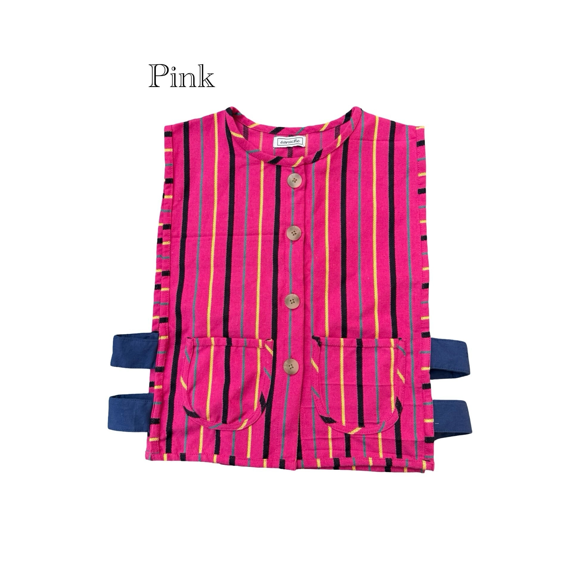 南インドではピローケースになったりする生地ですがsarucheではベストに。