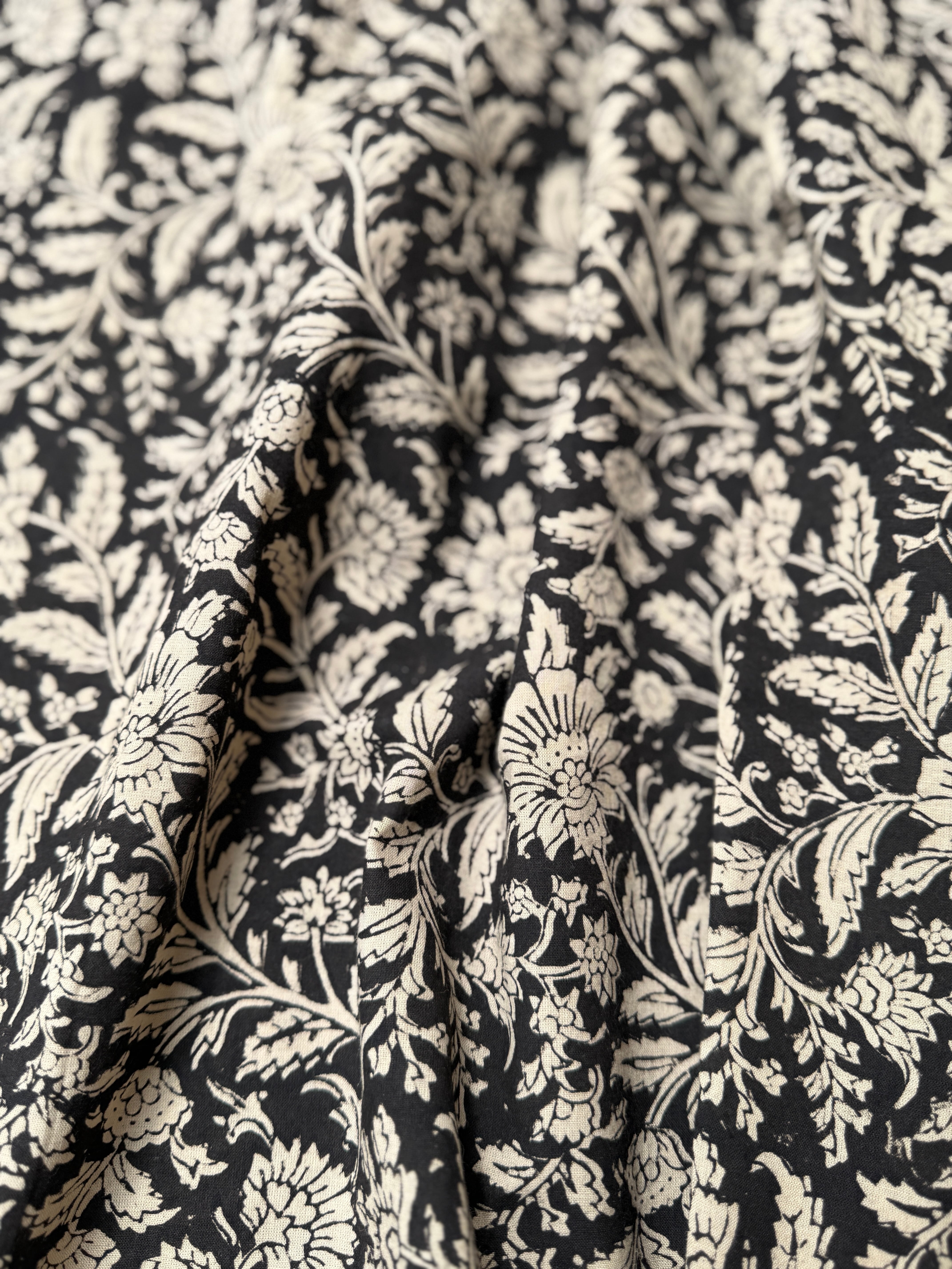 手でスタンプされた木製のブロックによりプリントされた生地です。塗料は天然の素材のみで染められたものです。