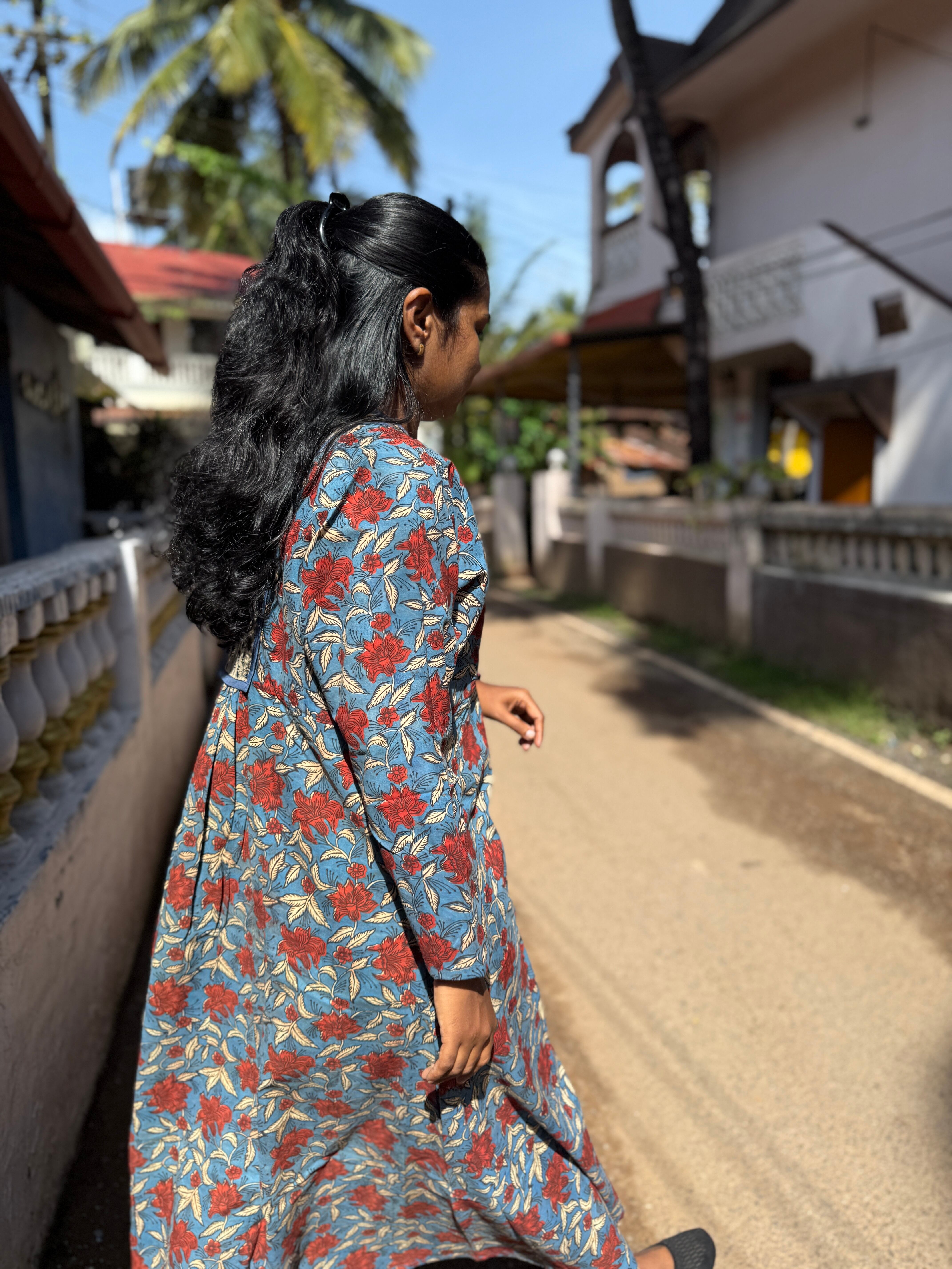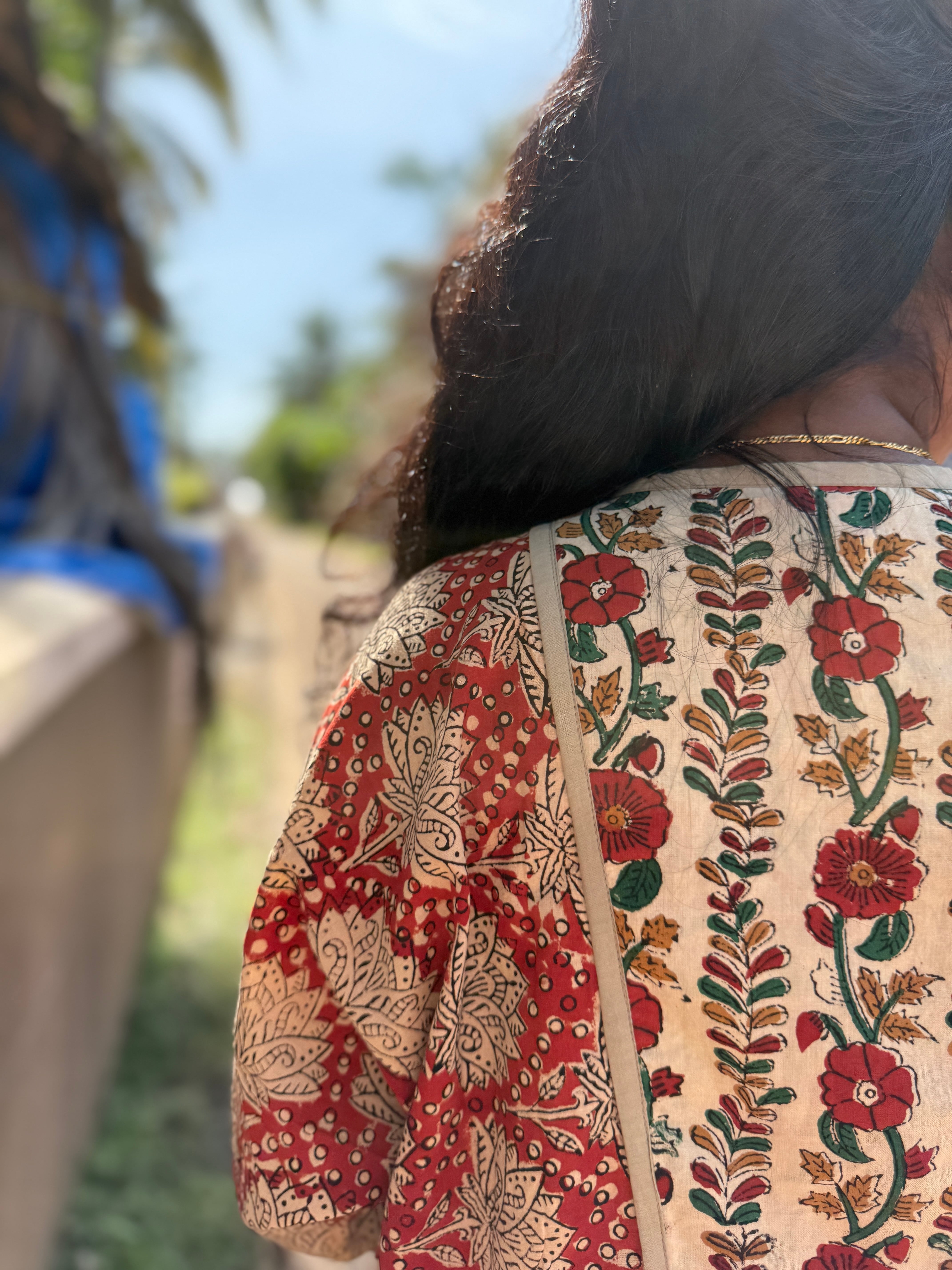 手でスタンプされた木製のブロックによりプリントされた生地です。塗料は天然の素材のみで染められたものです。