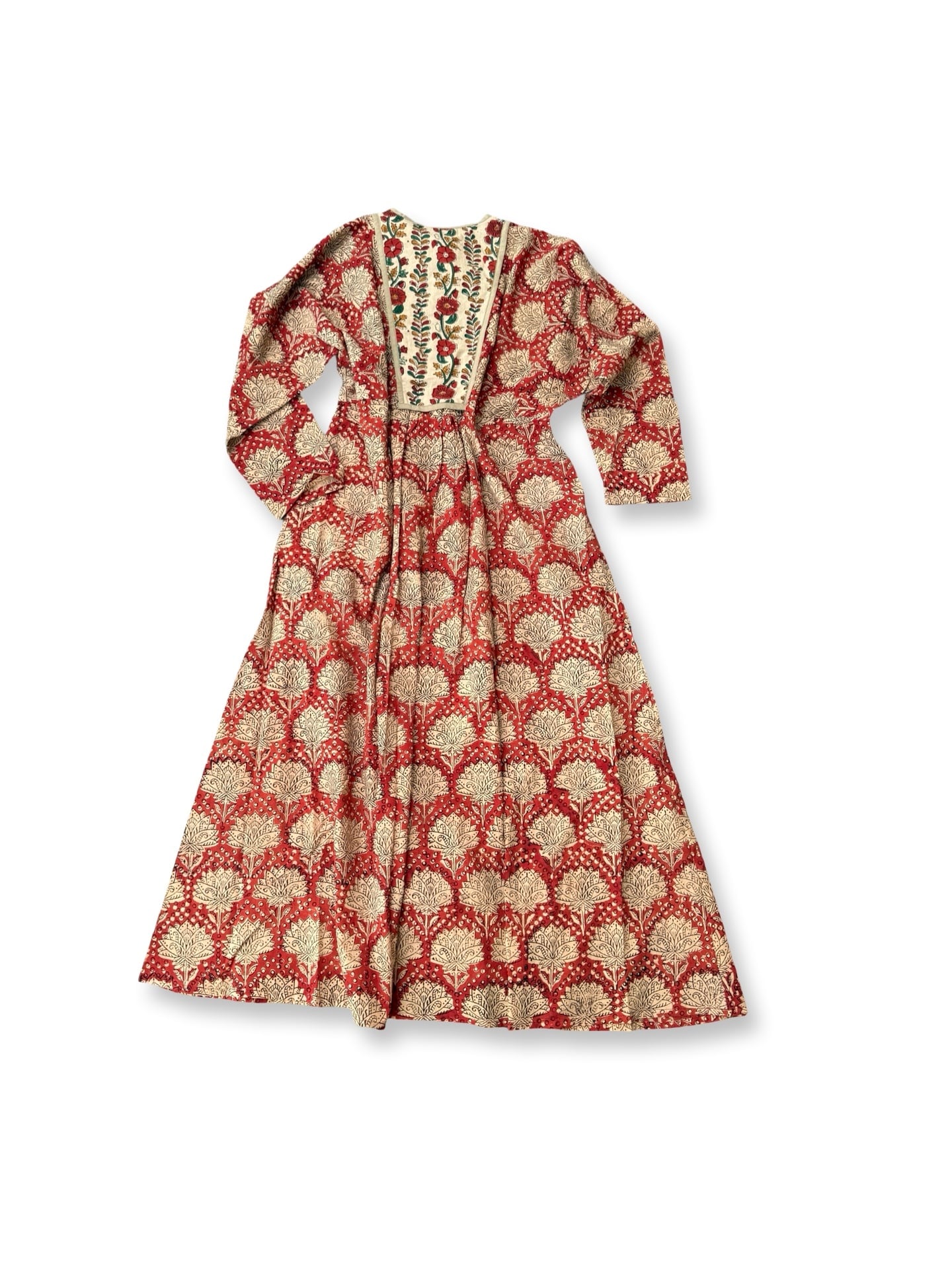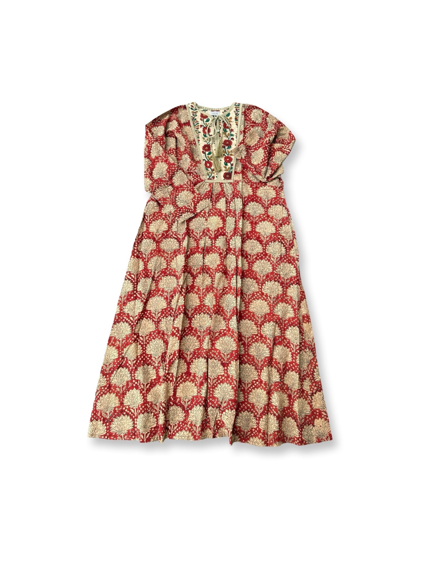 saruche ブロックプリント ナローヨークタッセルワンピース Red