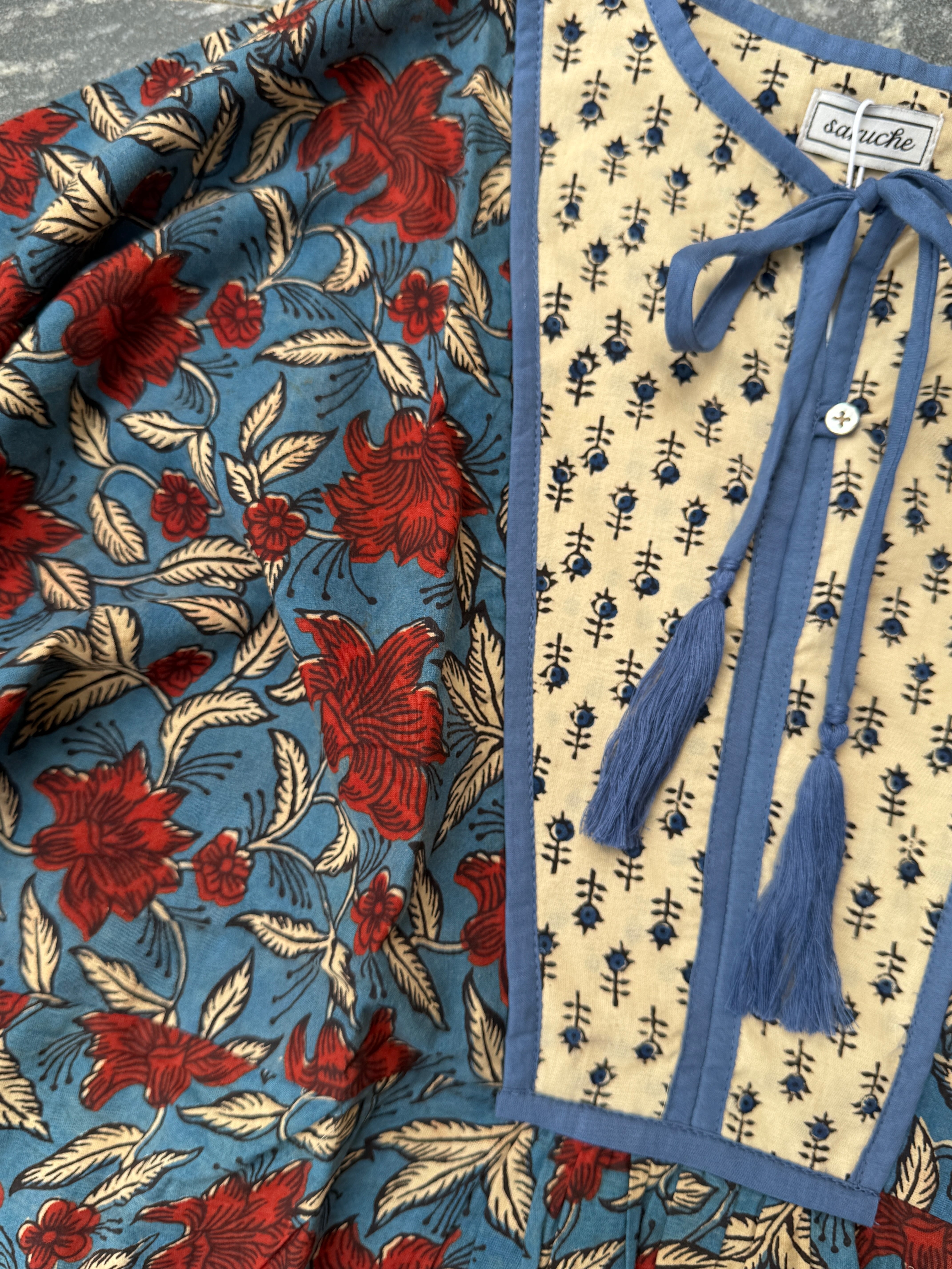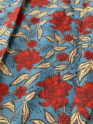手でスタンプされた木製のブロックによりプリントされた生地です。塗料は天然の素材のみで染められたものです。