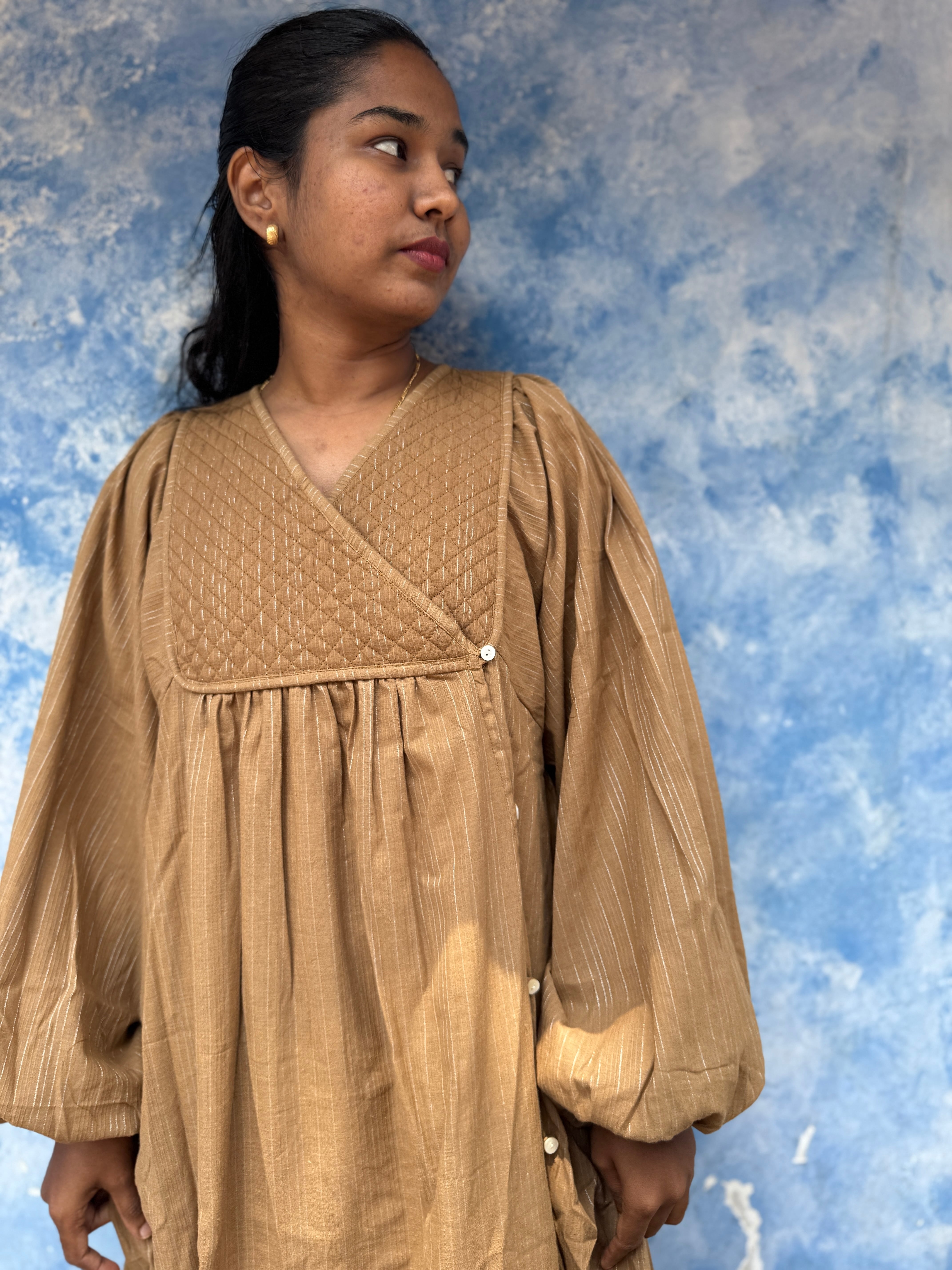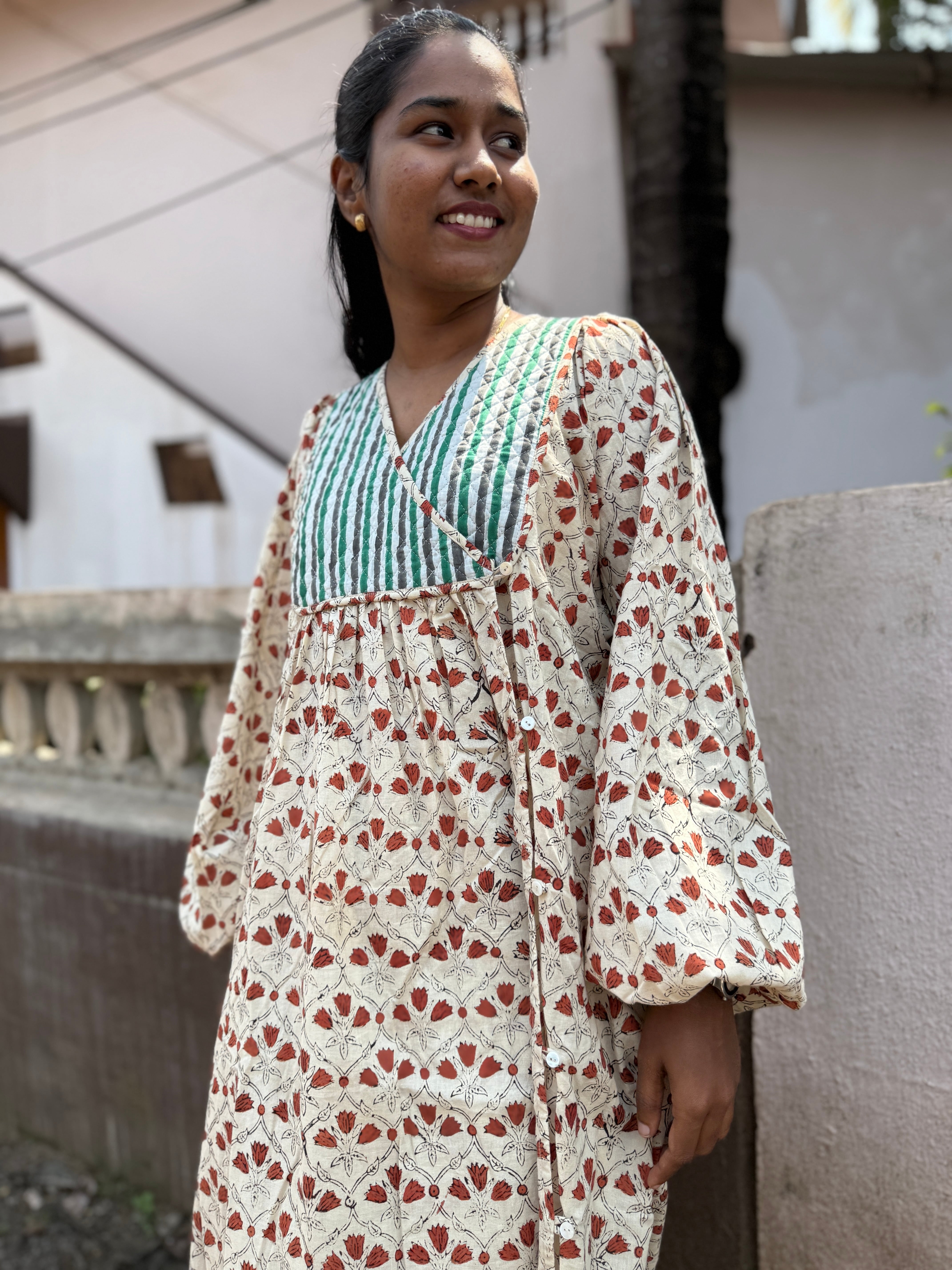 saruche 前開きミニボタンキルティングワンピース South Dobby Cotton