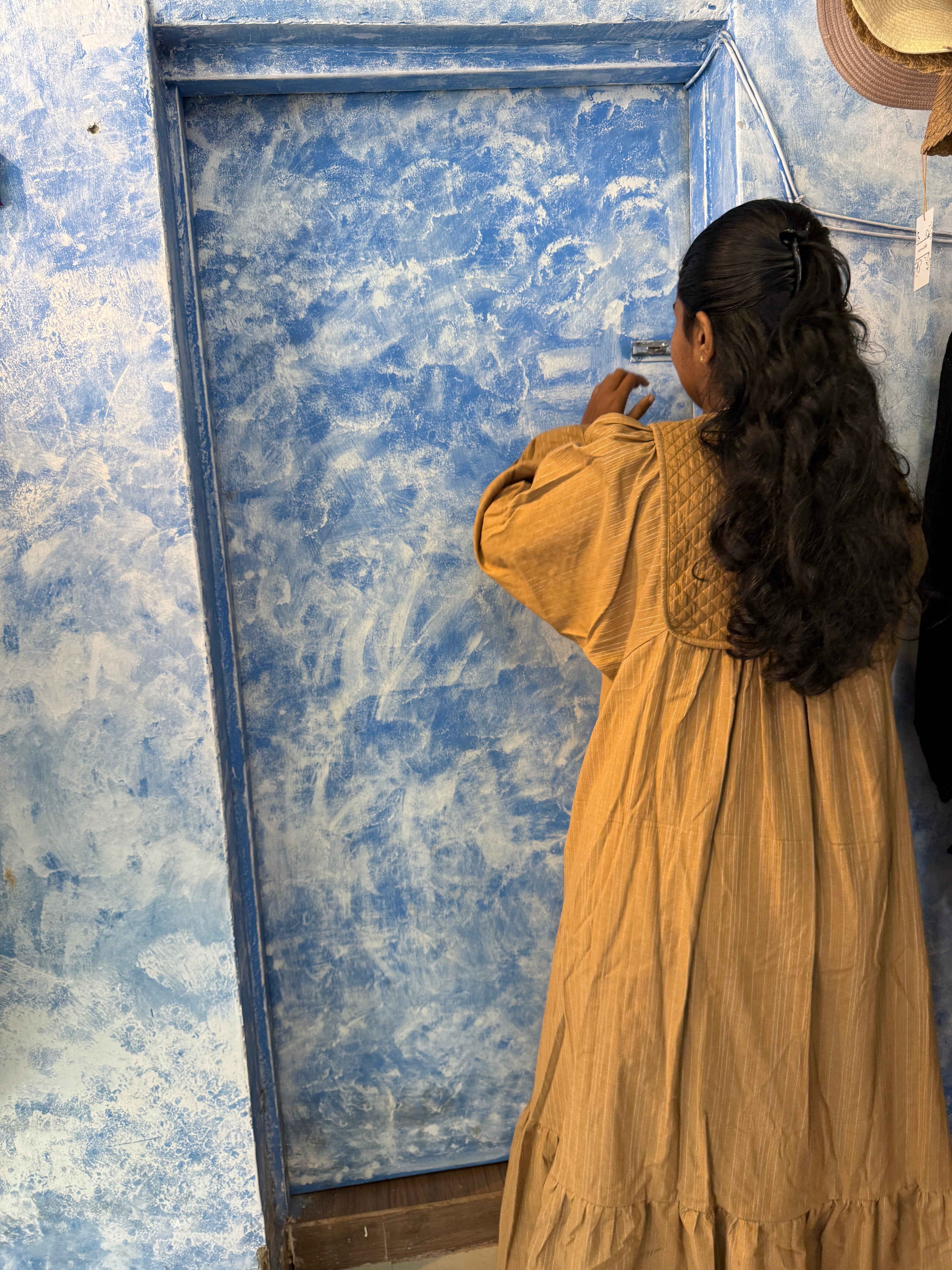 草木染めのブロックプリント、また手織り布は色落ちがしやすいため