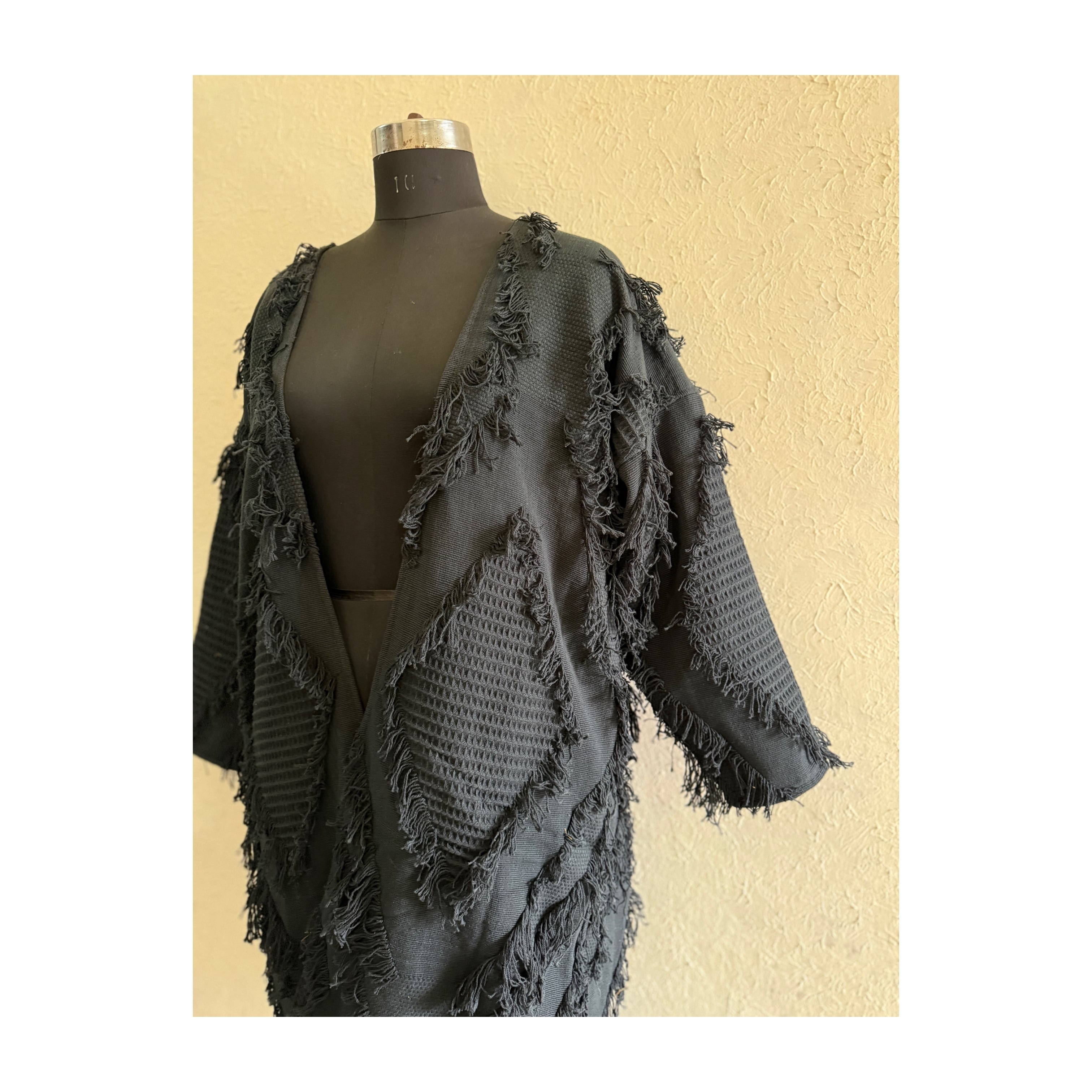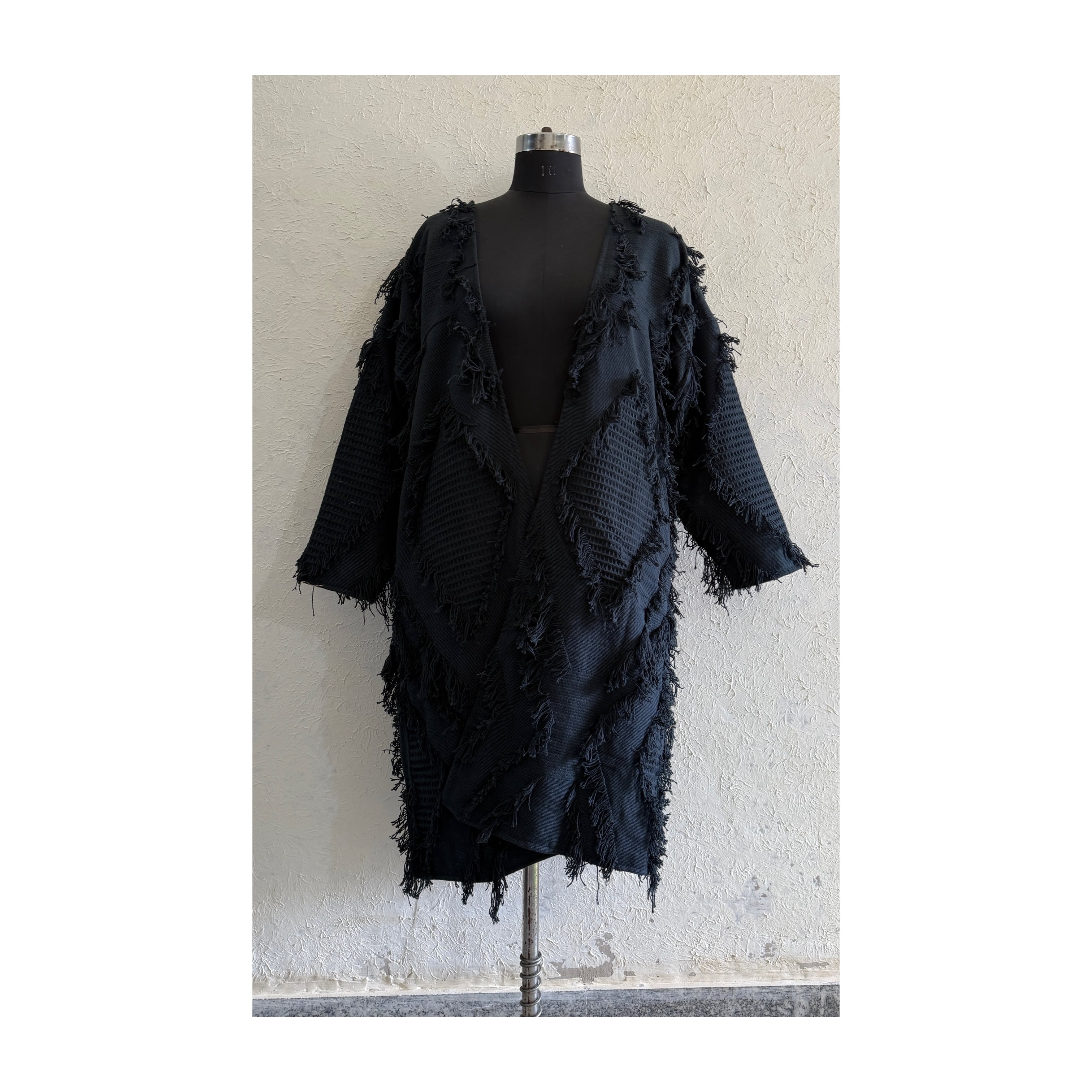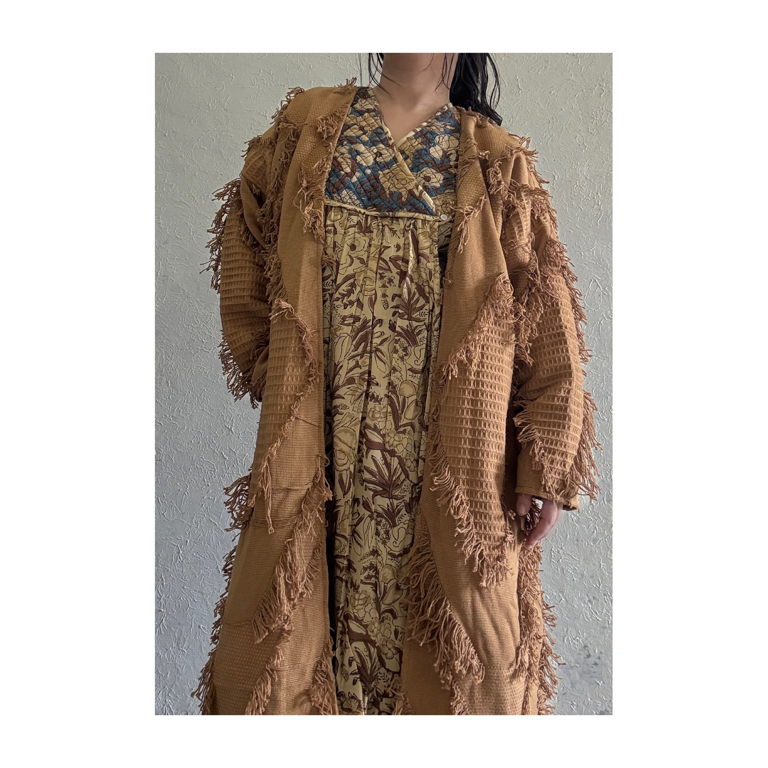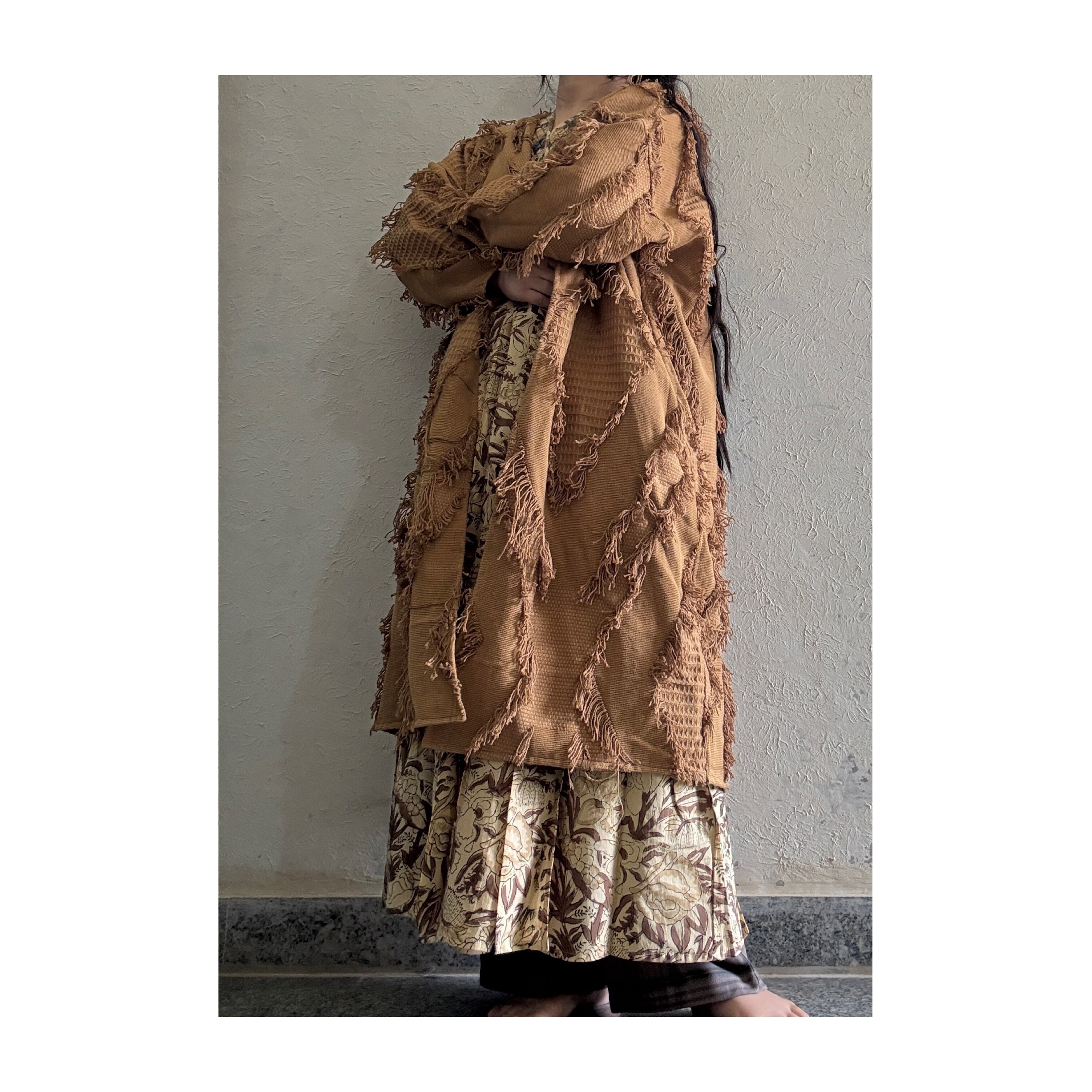 saruche フリンジ織布 ロングジャケット Brown