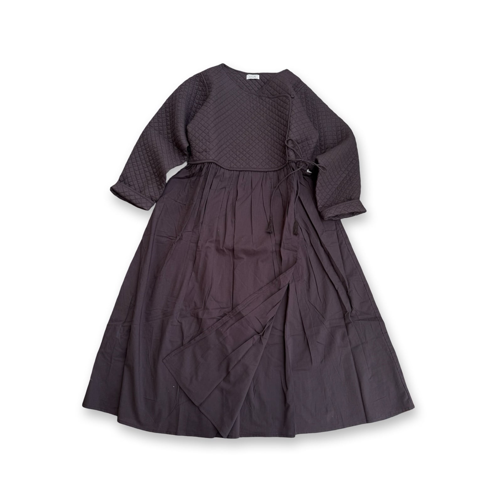Mujiシリーズから上身頃がキルティングになったラバリスタイルのカシュクールワンピース。
