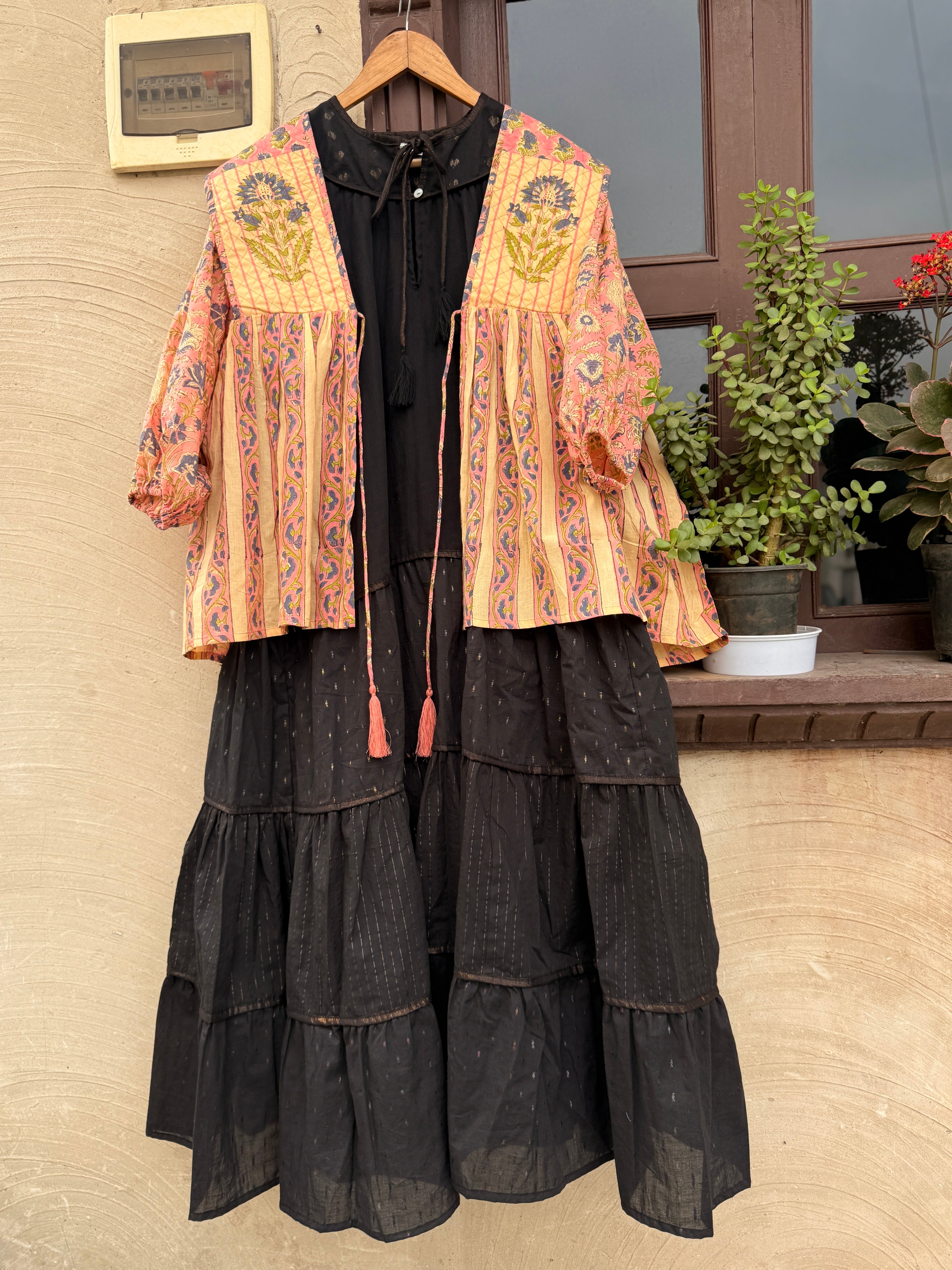 ブロックプリントを組み合わせsarucheらしい配色にこだわった前開きのチュニック。