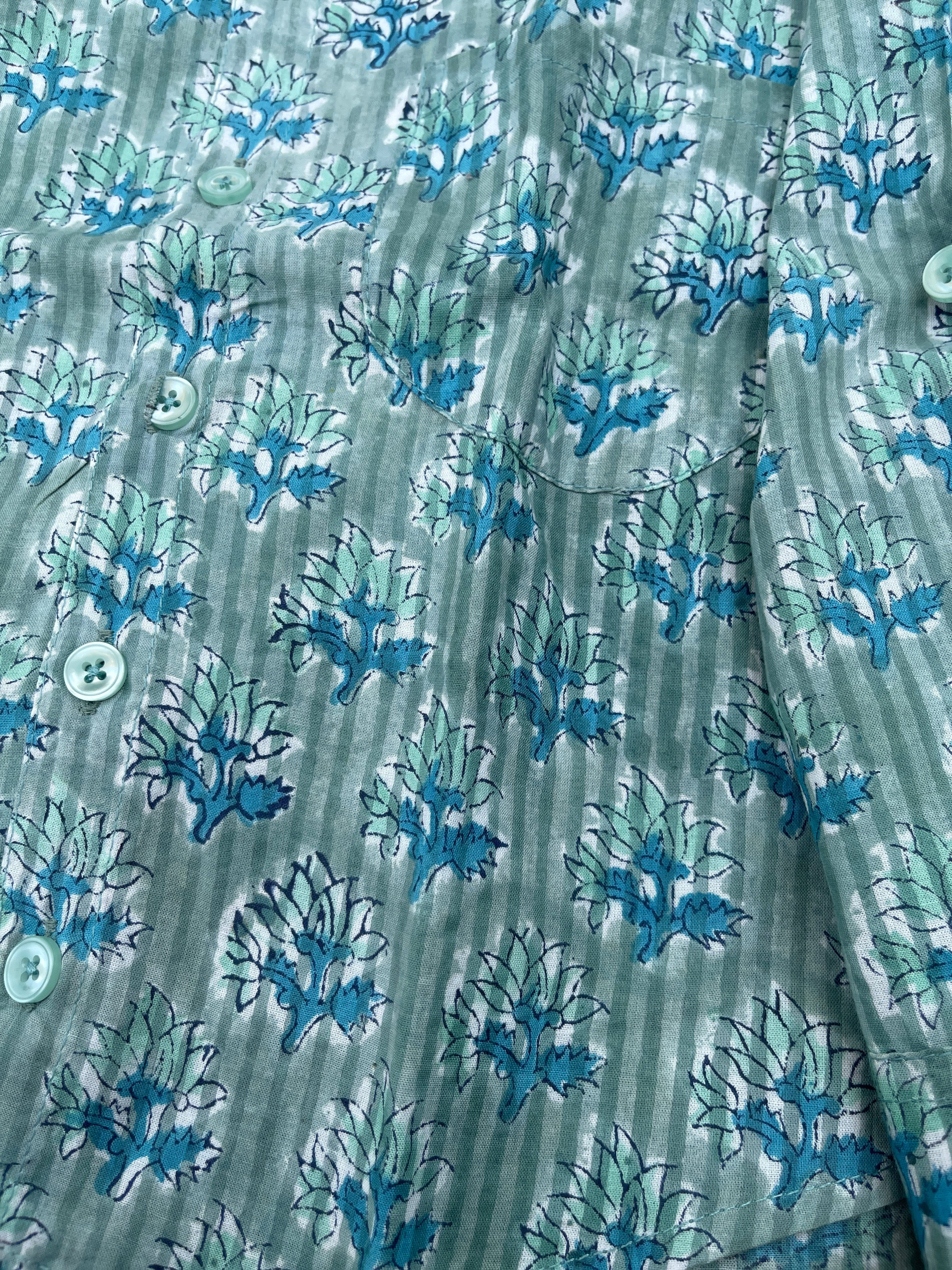 手でスタンプされた木製のブロックによりプリントされた生地です。塗料は天然の素材のみで染められたものです。