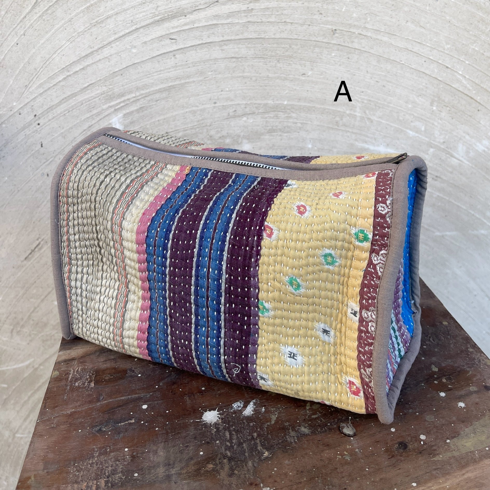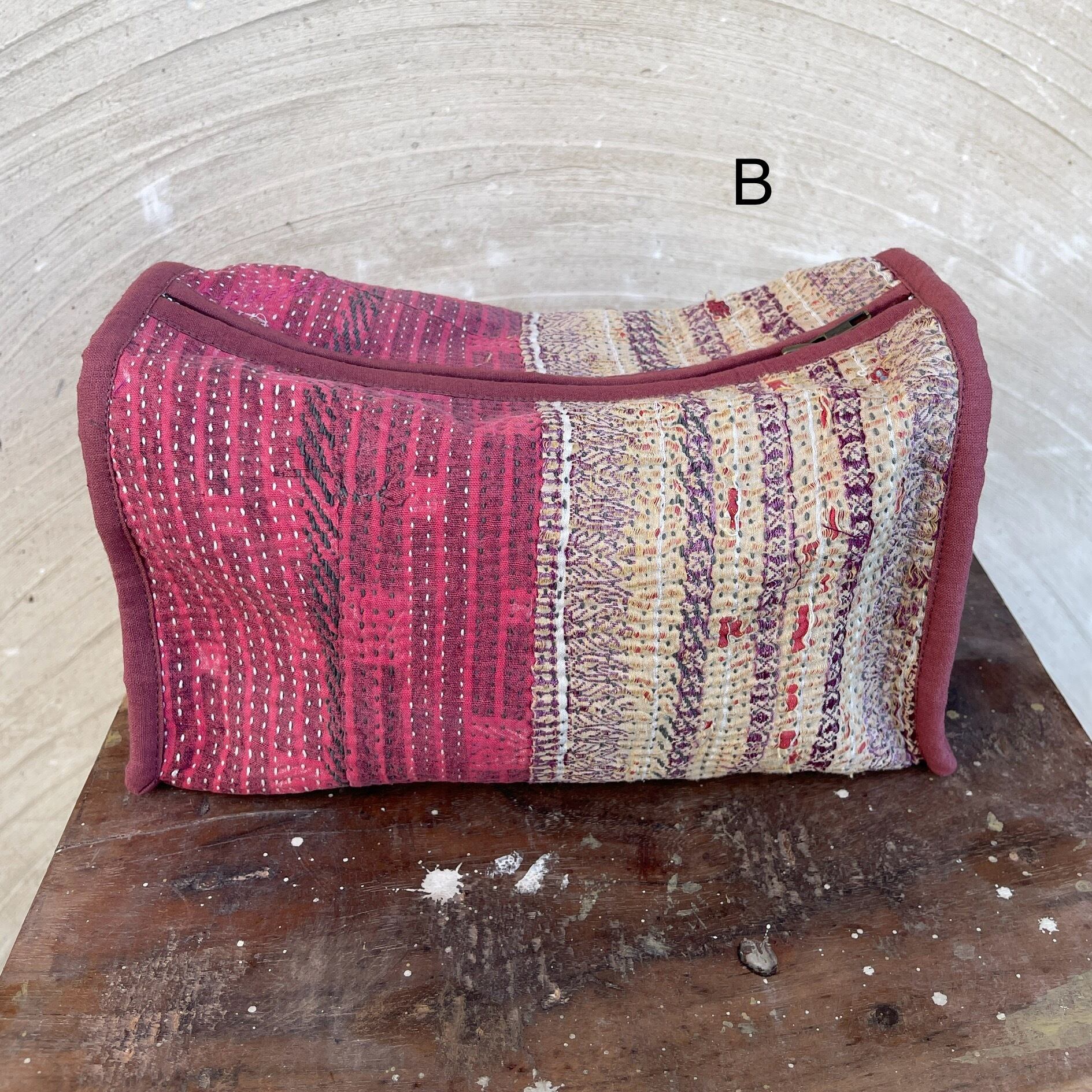 Vintage ラリーキルト 箱型大サイズポーチ A-D