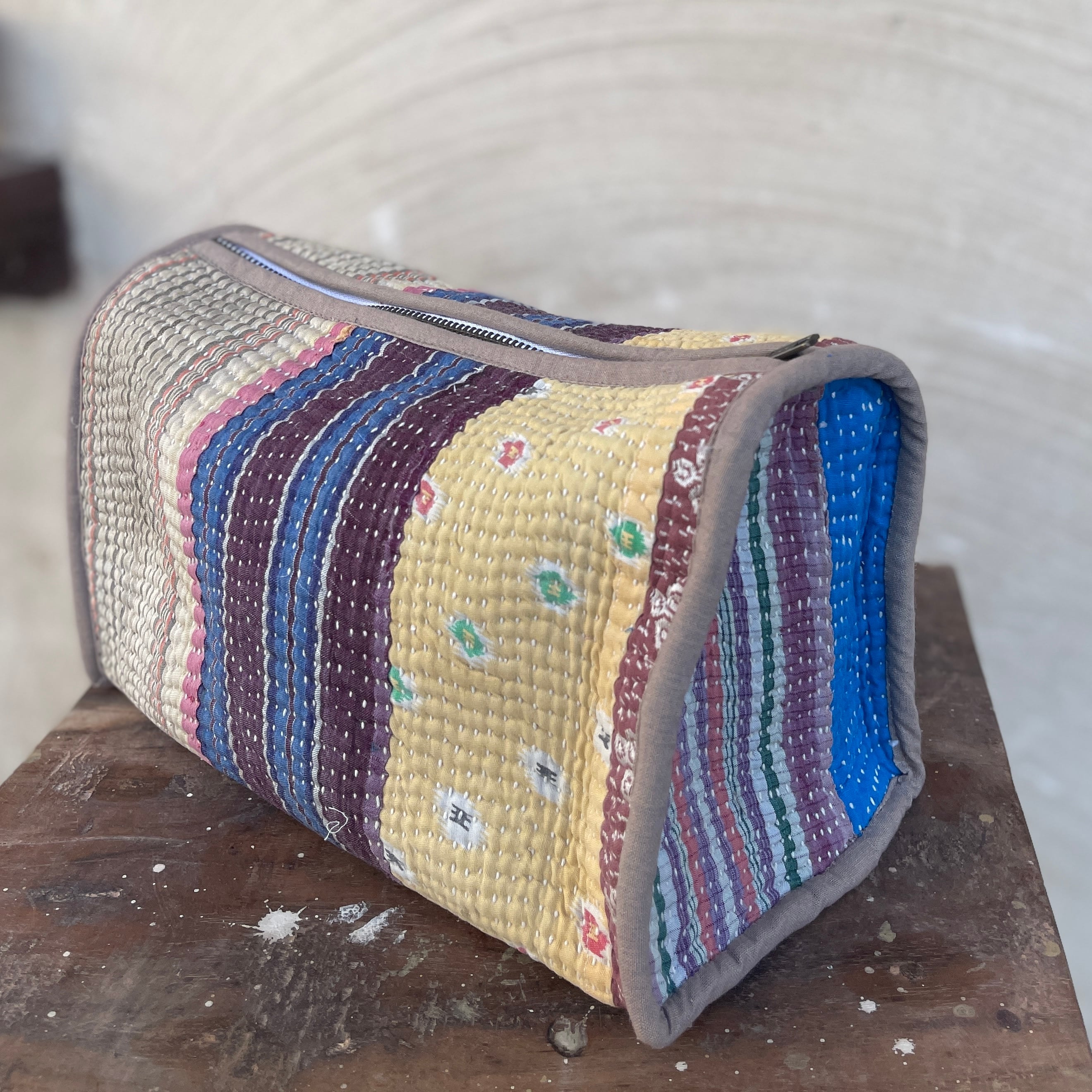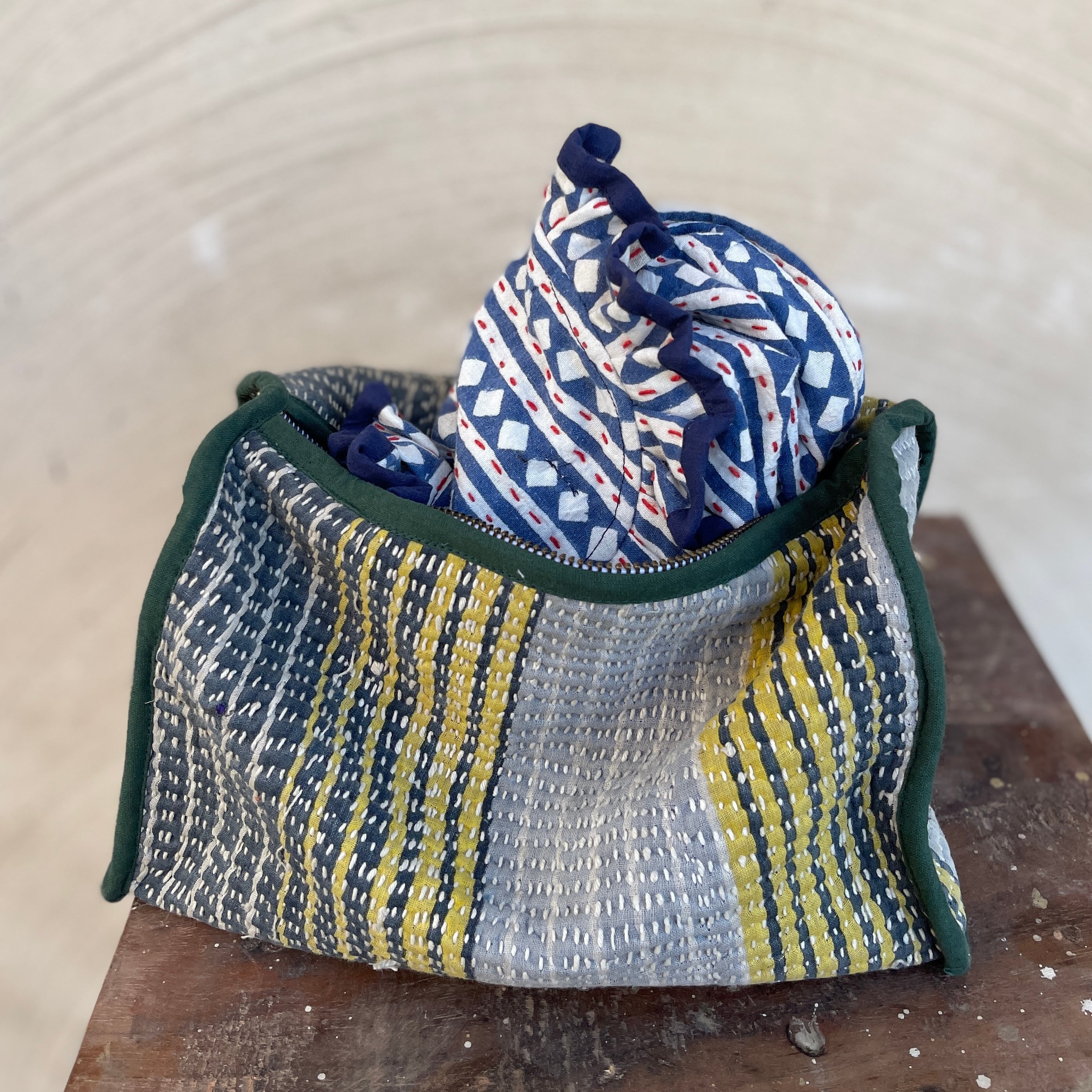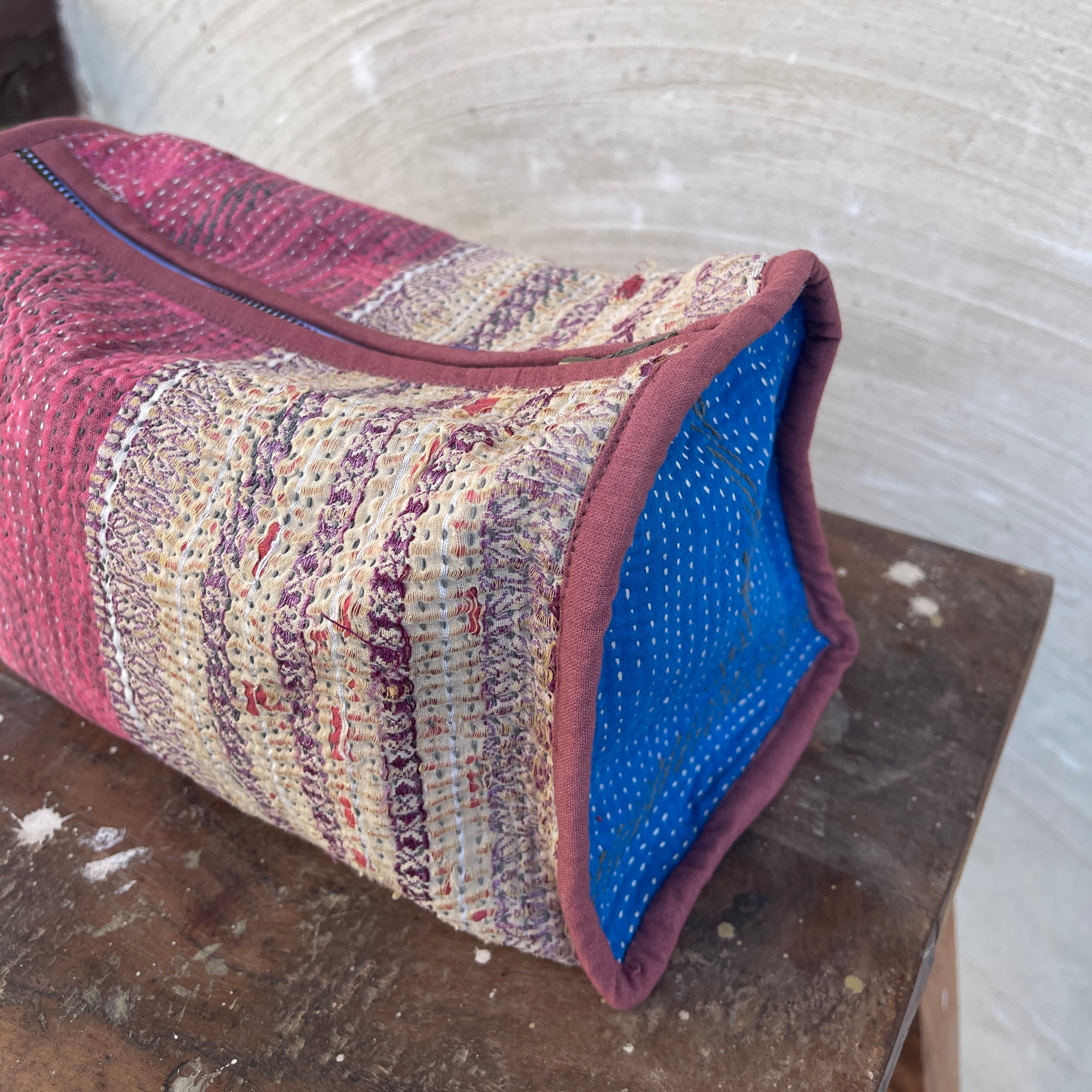 手で刺子された風合いあるヴィンテージ生地は味があり、グドゥリー自体が一点ものですが使う場所により柄や色の入り方が変わりさらに世界に一つしかないものに。