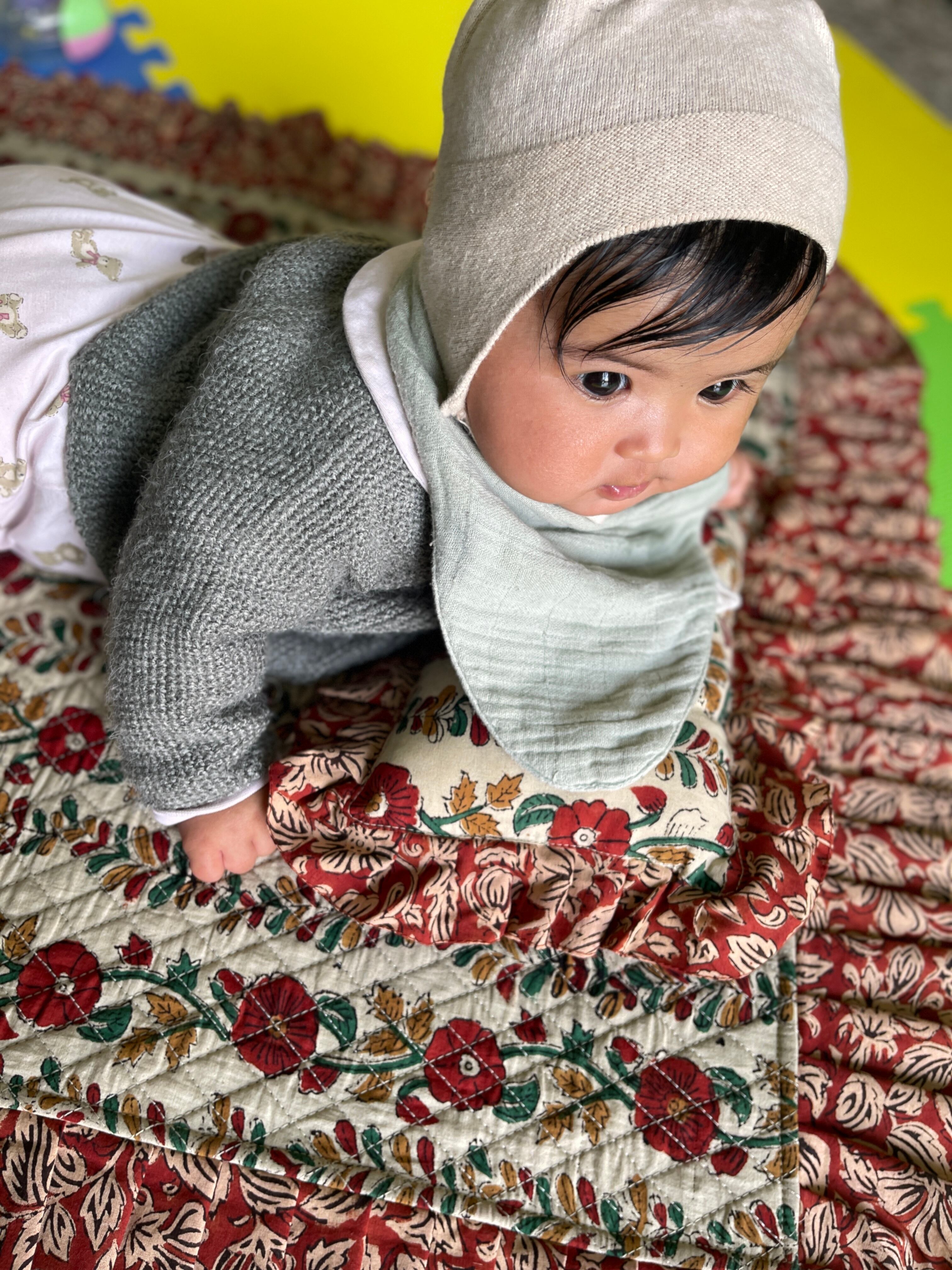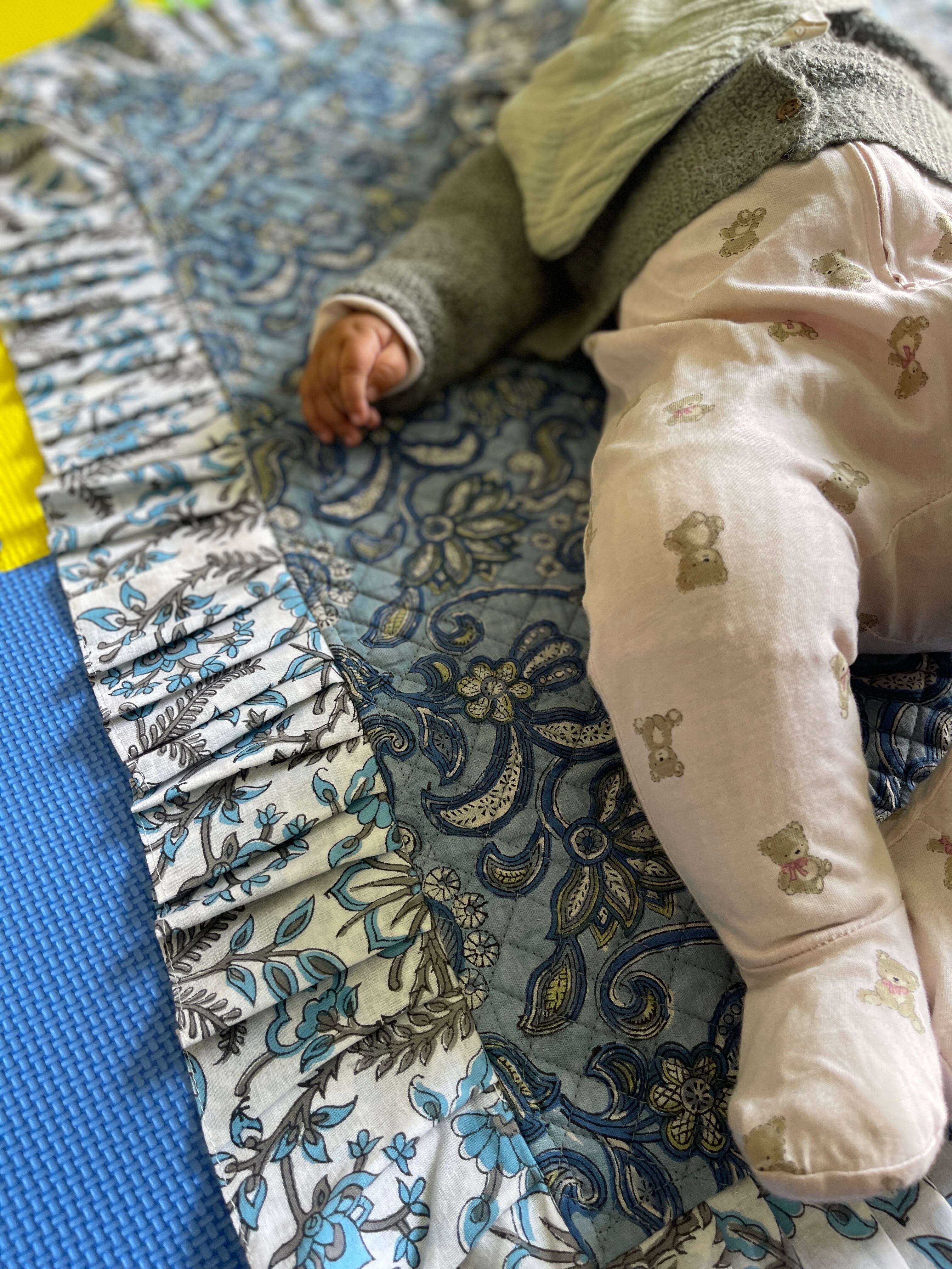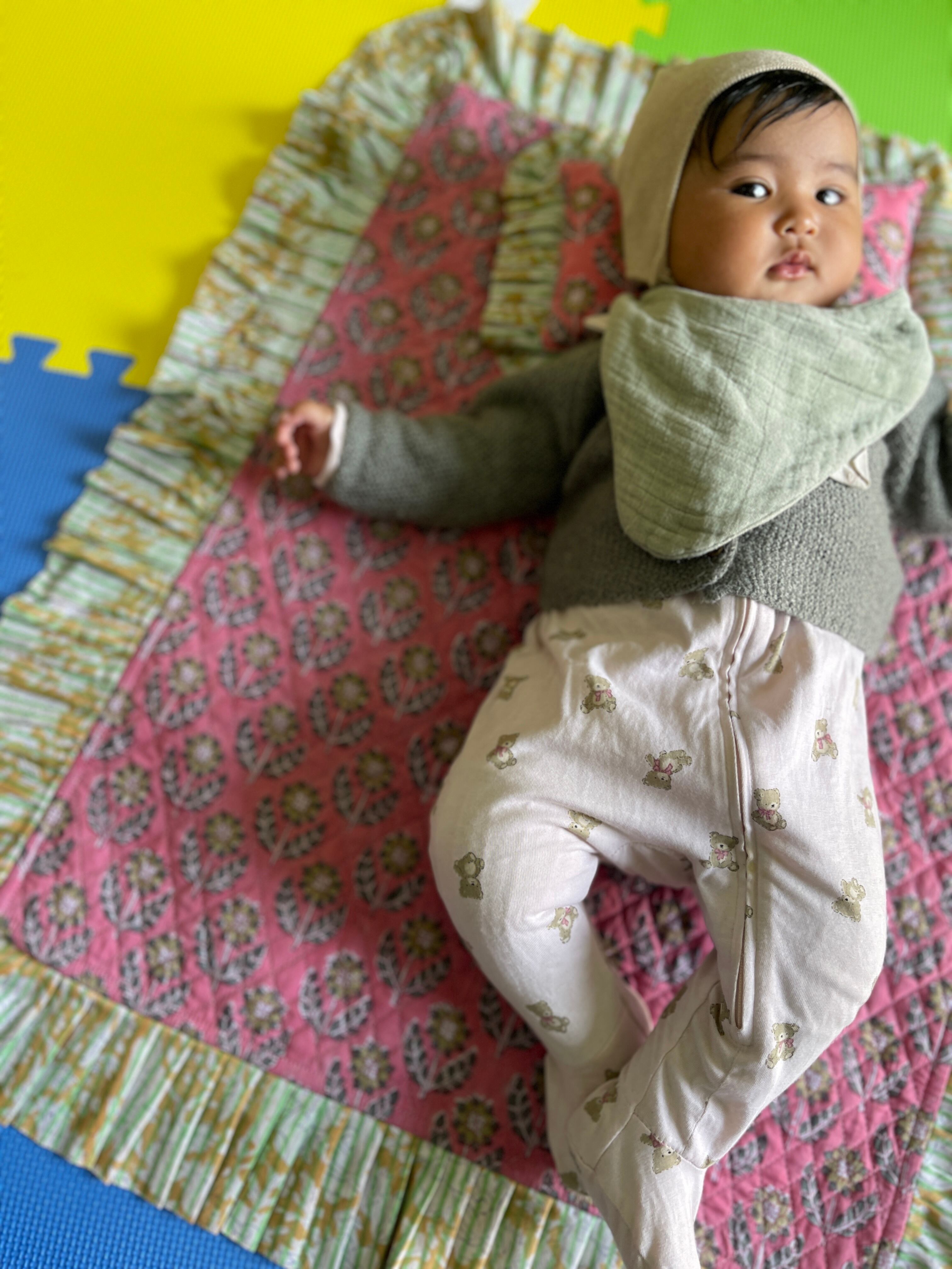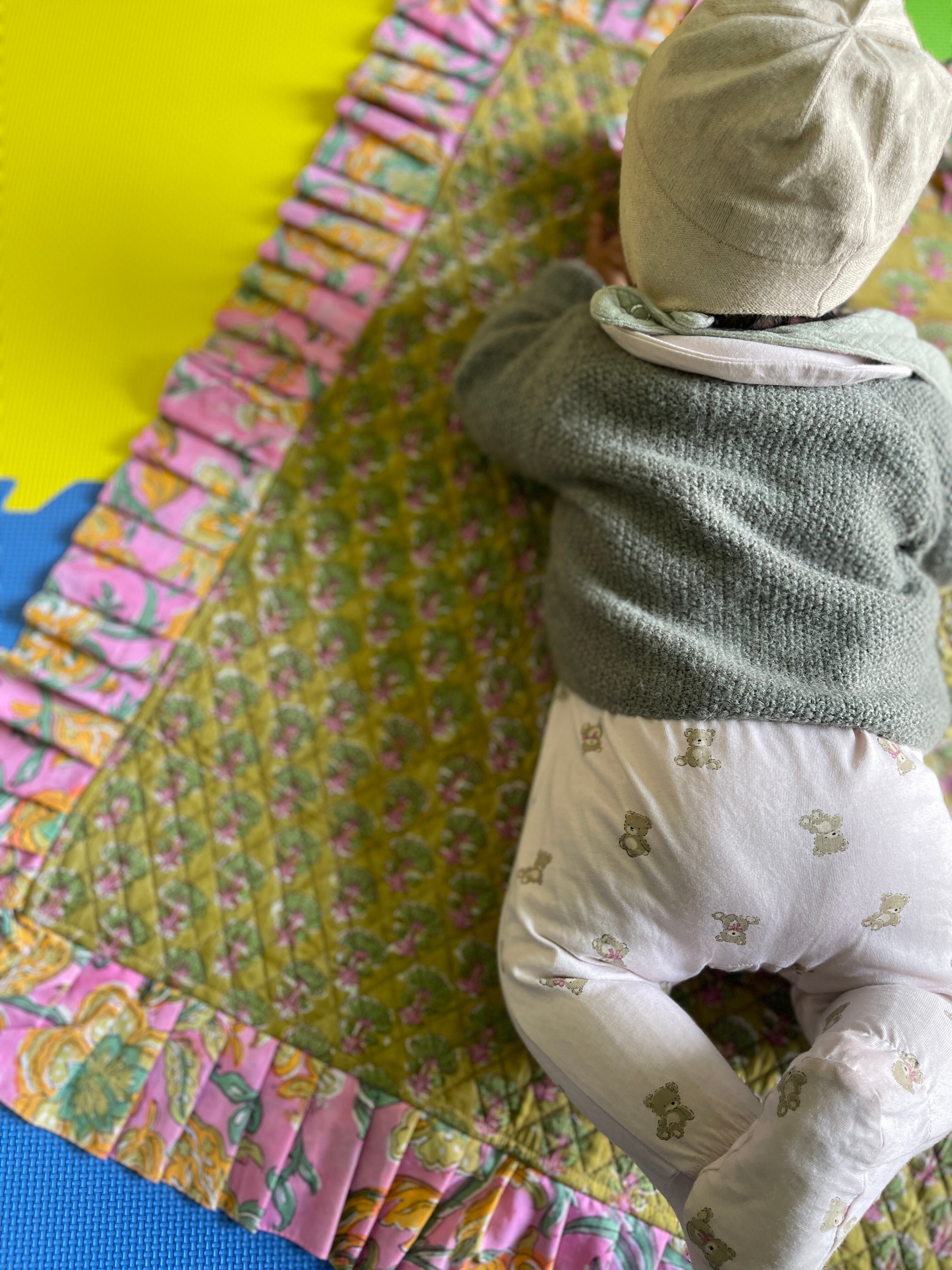 ミニサイズキルトは赤ちゃんのタミータイムにピッタリなサイズ感。