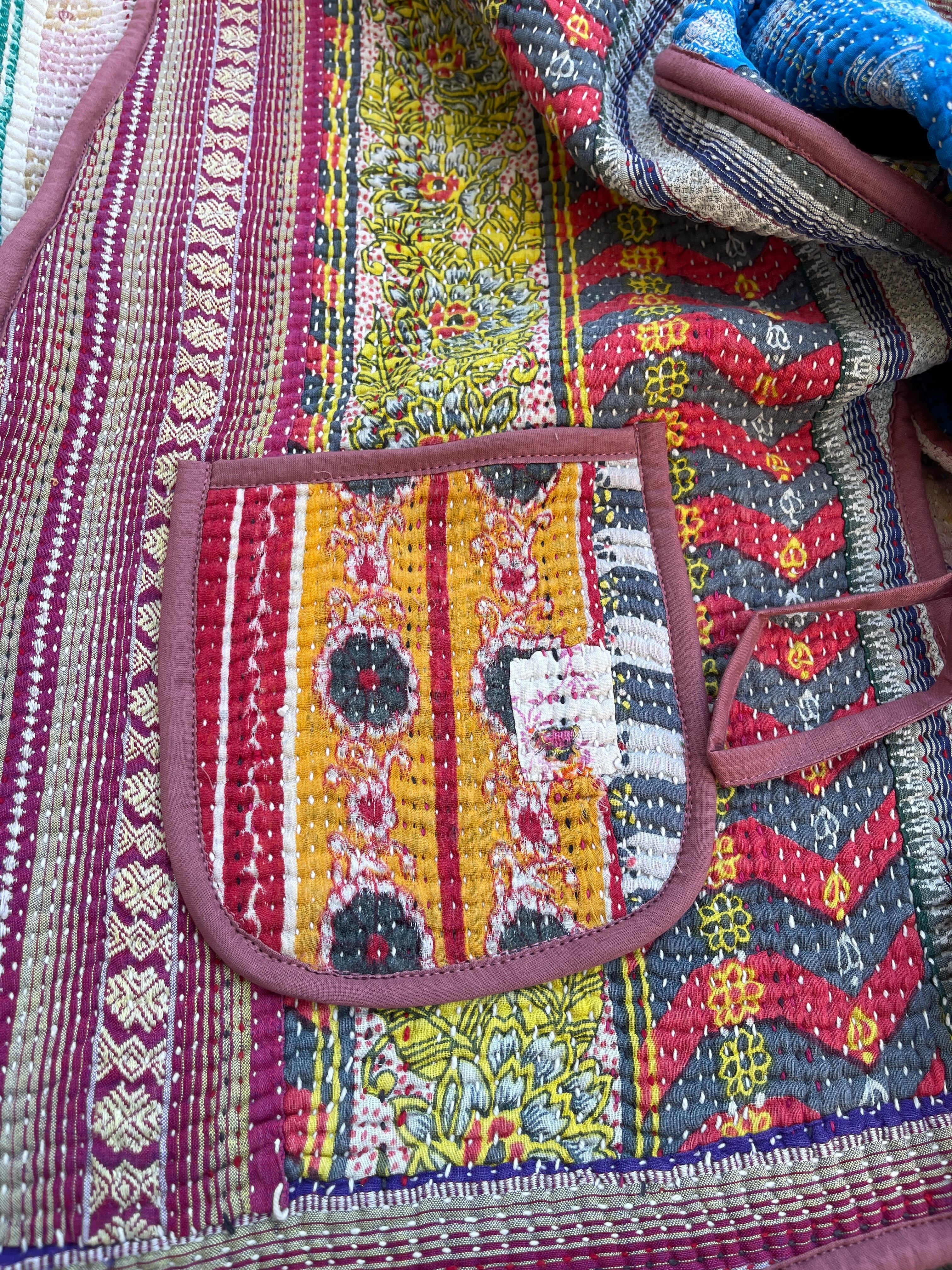 saruche Vintage グドゥリー 刺子のサイドリボンリバーシブルジャケット