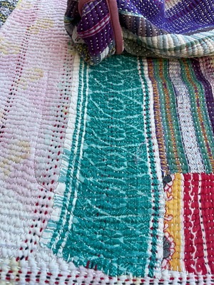 ラジャスタンでは敷物のことを"グドゥリー"とよび、着なくなったサリーなどを刺し子してリサイクルすることはまだまだ一般的なインド。