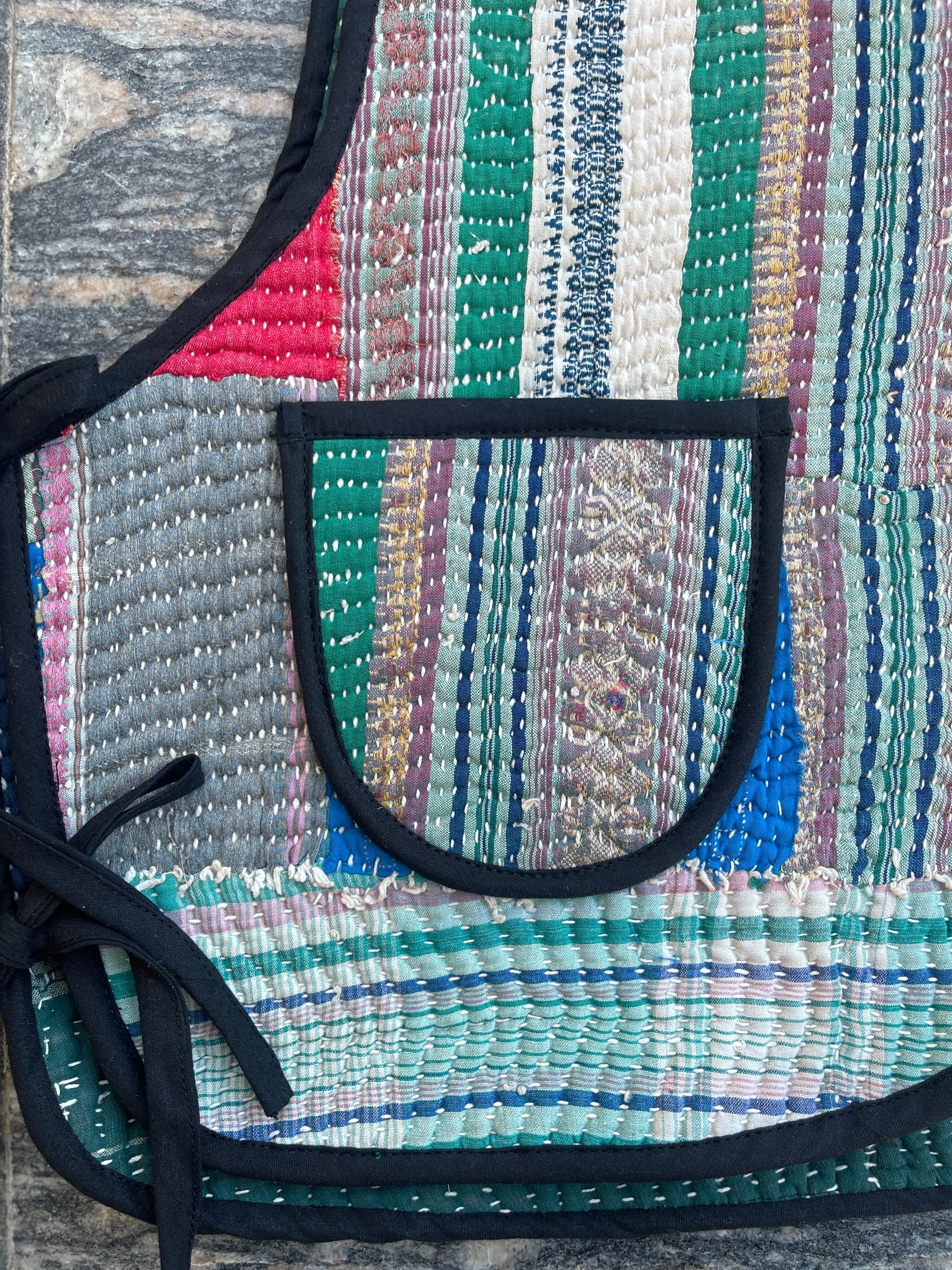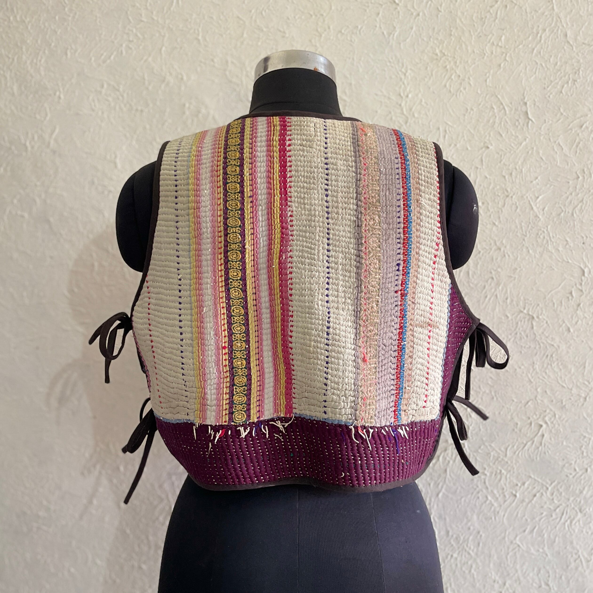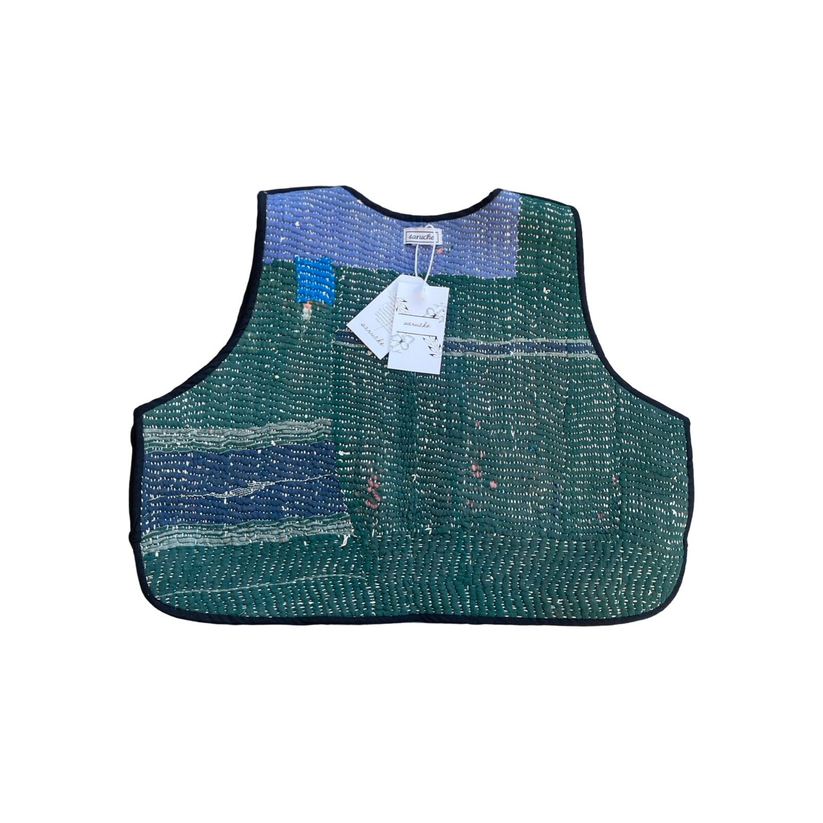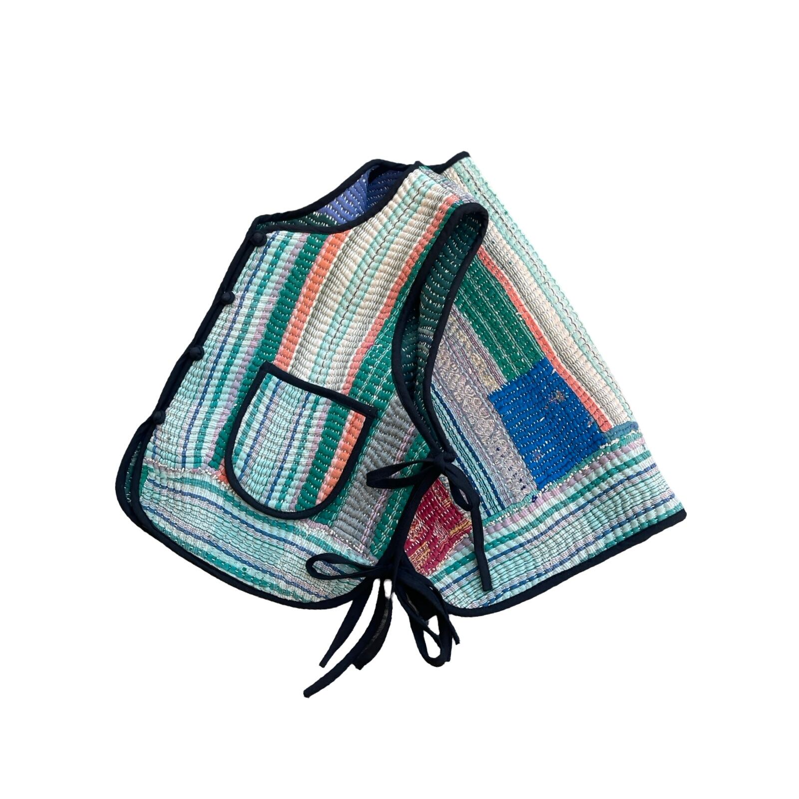 saruche Vintage グドゥリー 刺子のサイドリボンリバーシブルベスト