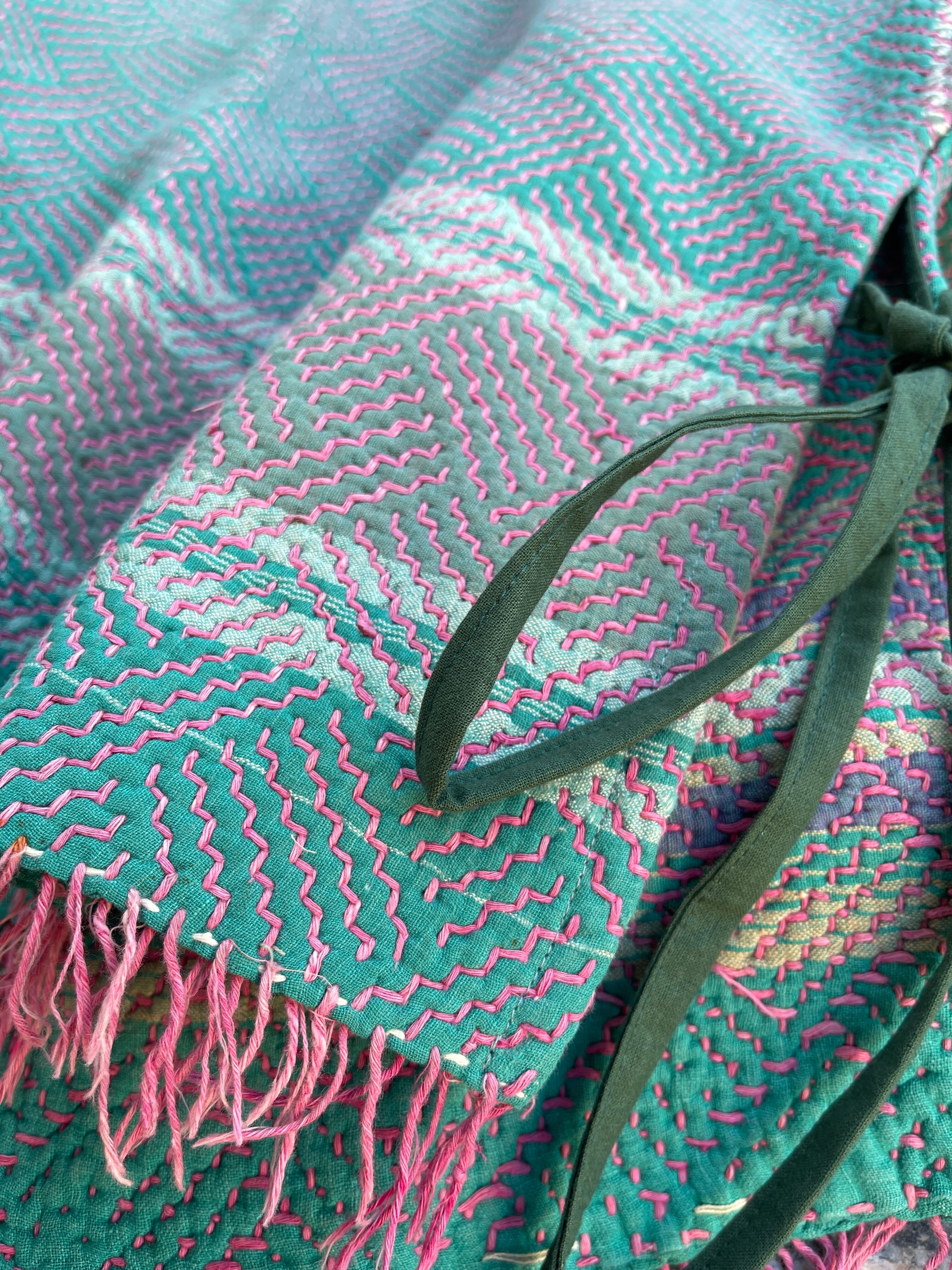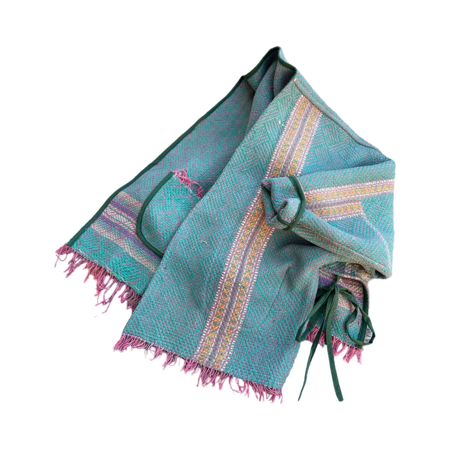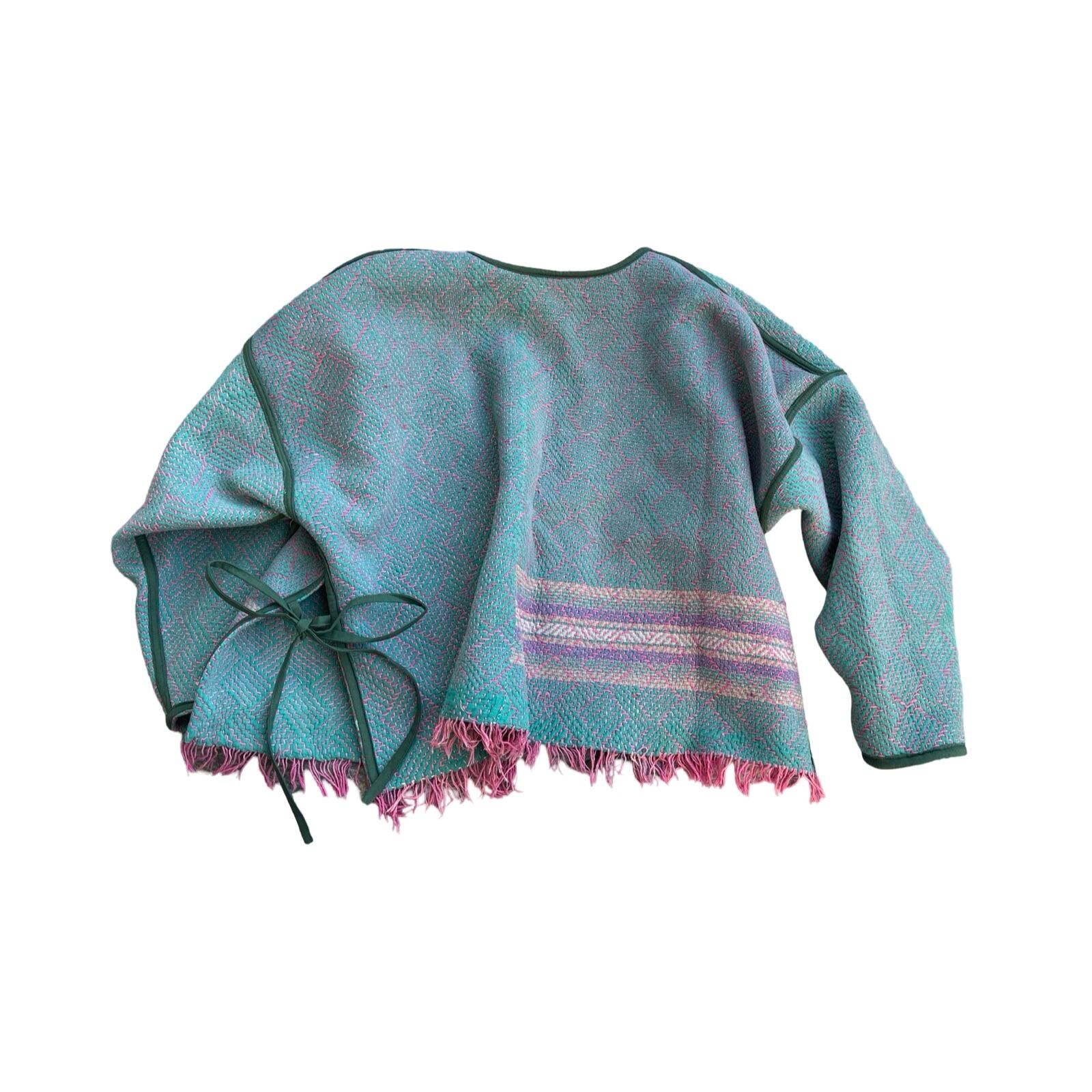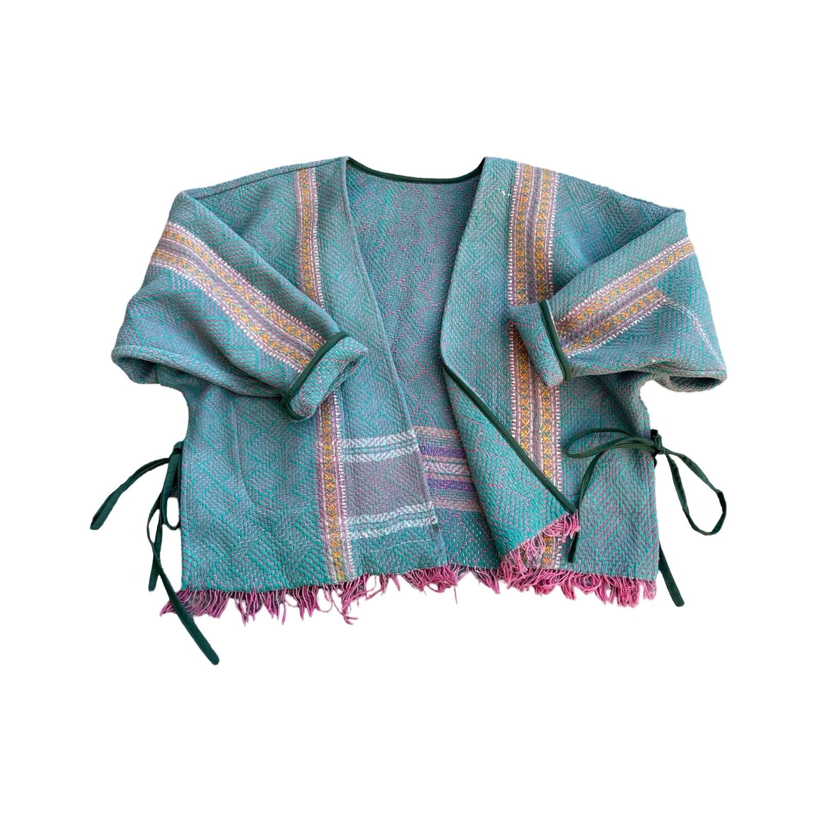 saruche Vintage パキスタングドゥリー 刺子のサイドリボンリバーシブルフリンジジャケット