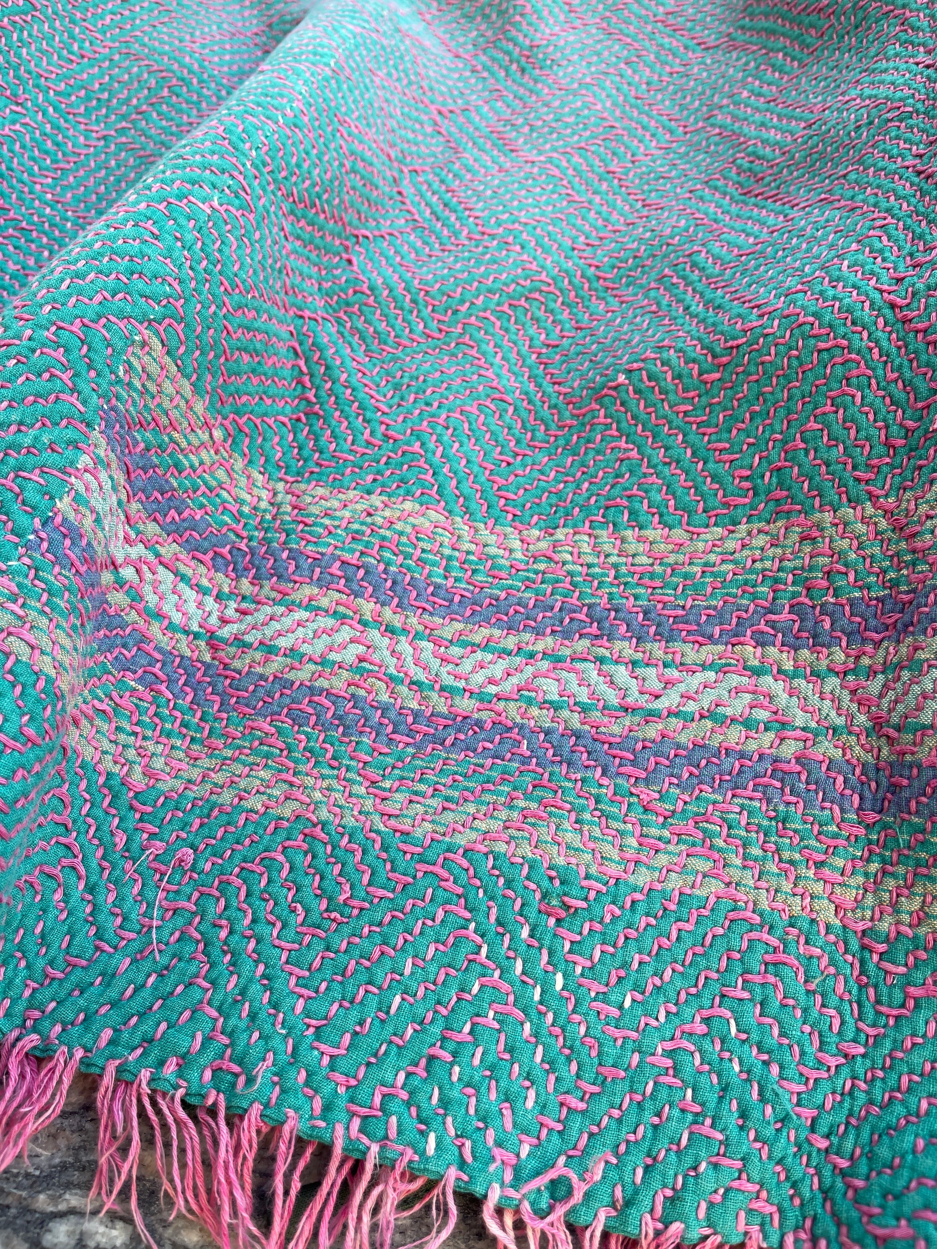こちらは重みある手刺繍はアートのような美しさが魅力のパキスタンカンタ。