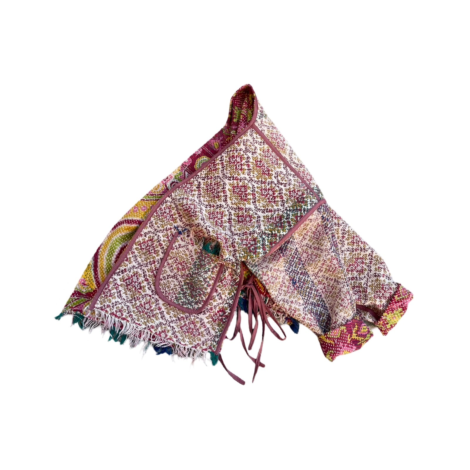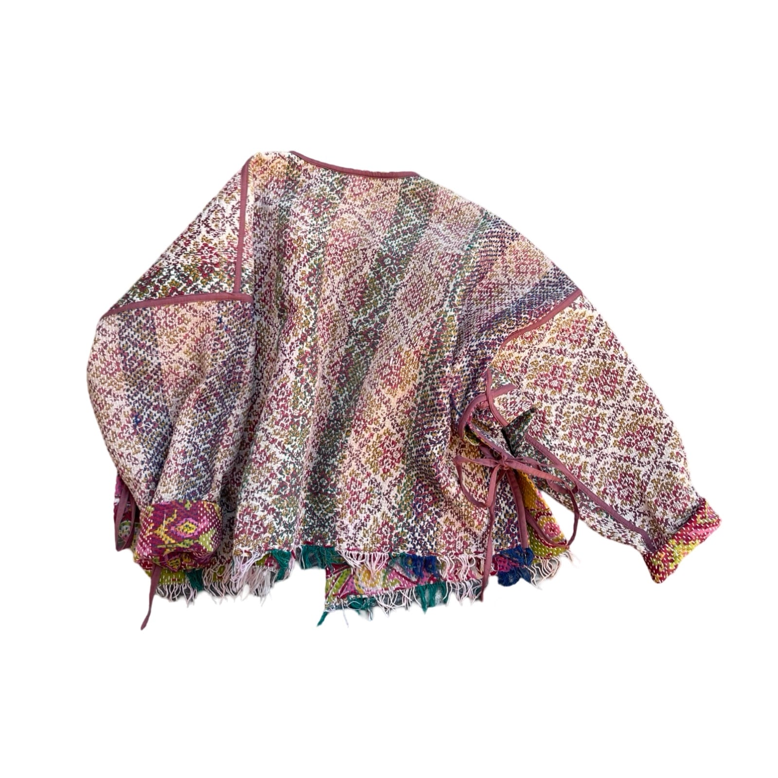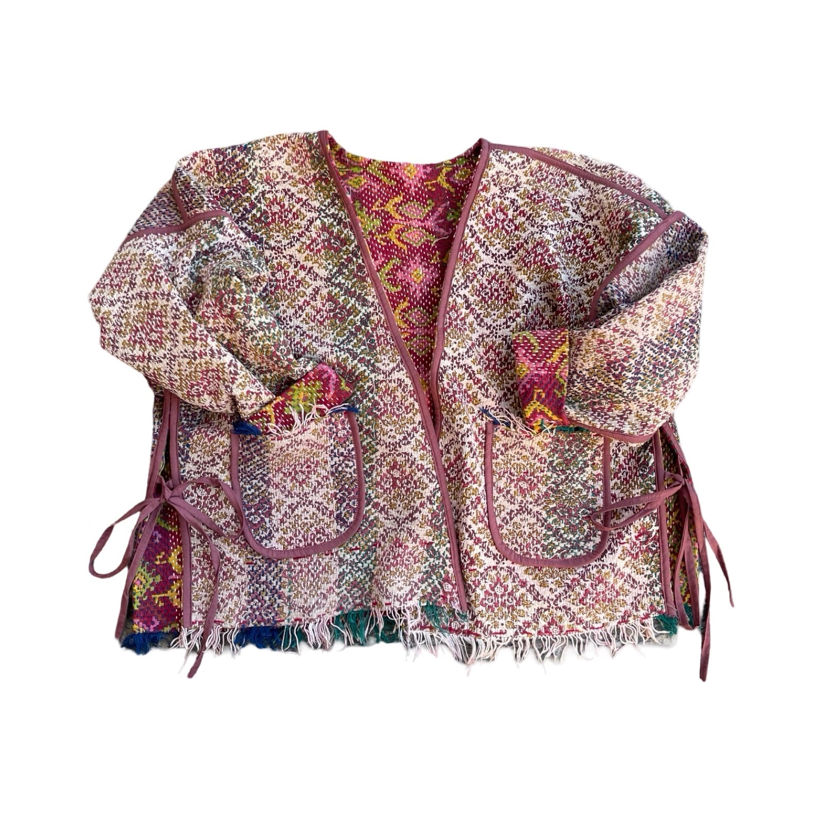 saruche Vintage パキスタングドゥリー 刺子のサイドリボンリバーシブルフリンジジャケット
