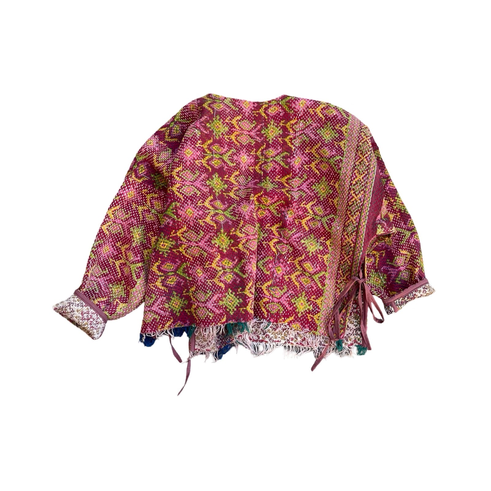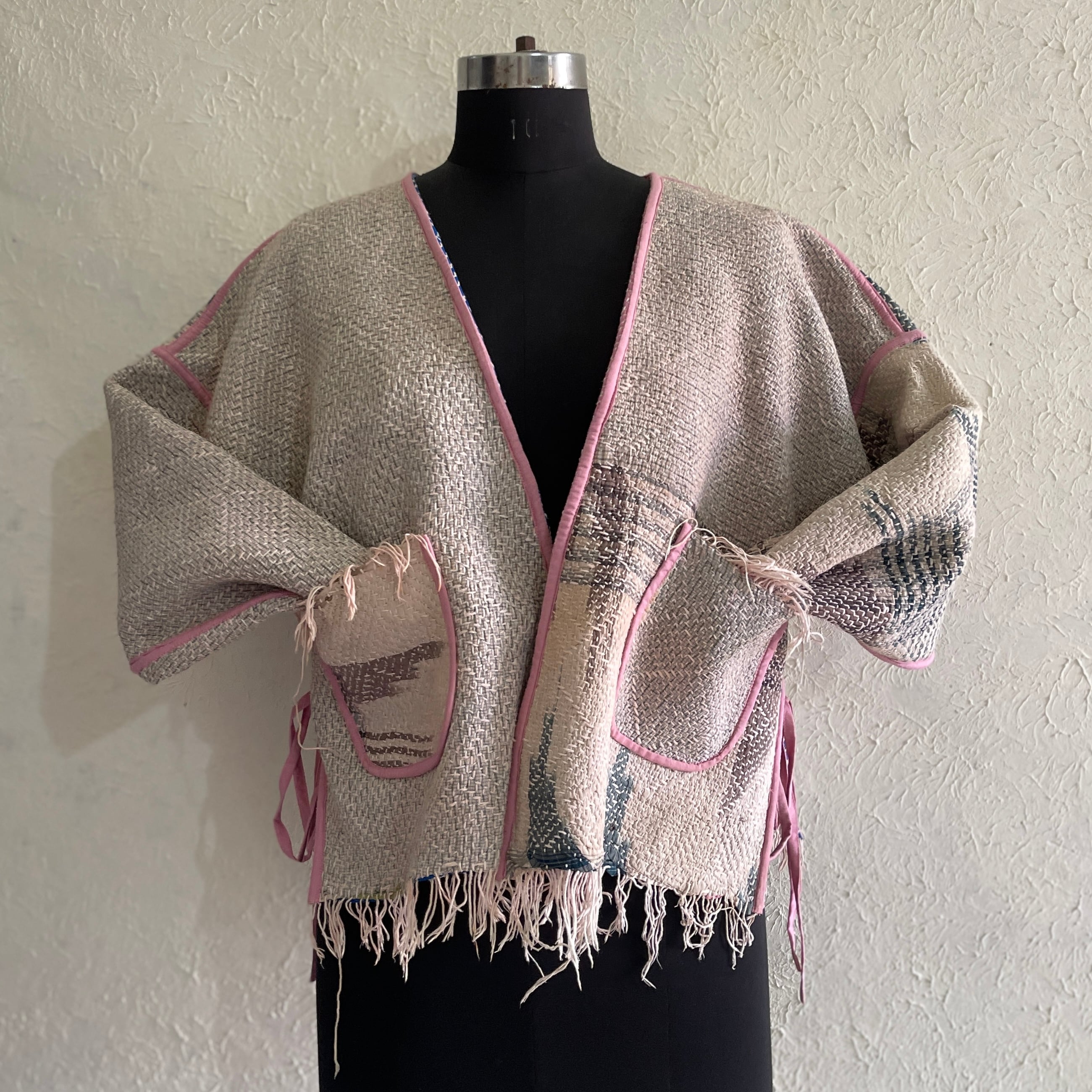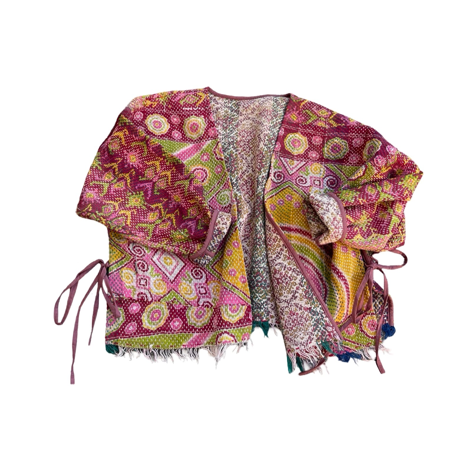 saruche Vintage パキスタングドゥリー 刺子のサイドリボンリバーシブルフリンジジャケット
