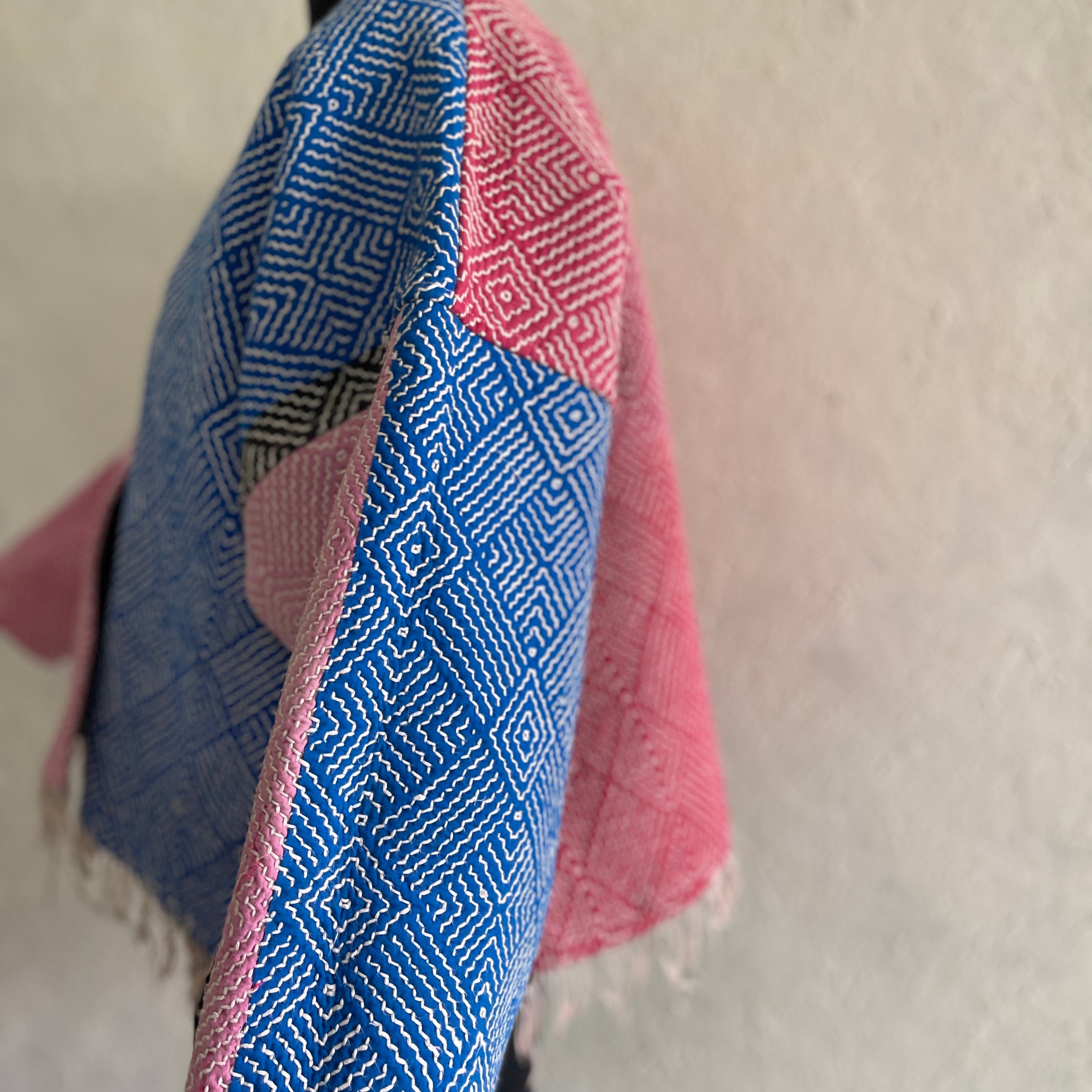 綺麗な幾何学模様がいくつもの時間をかけて手刺繍された特別なラリーキルトから制作したジャケット。