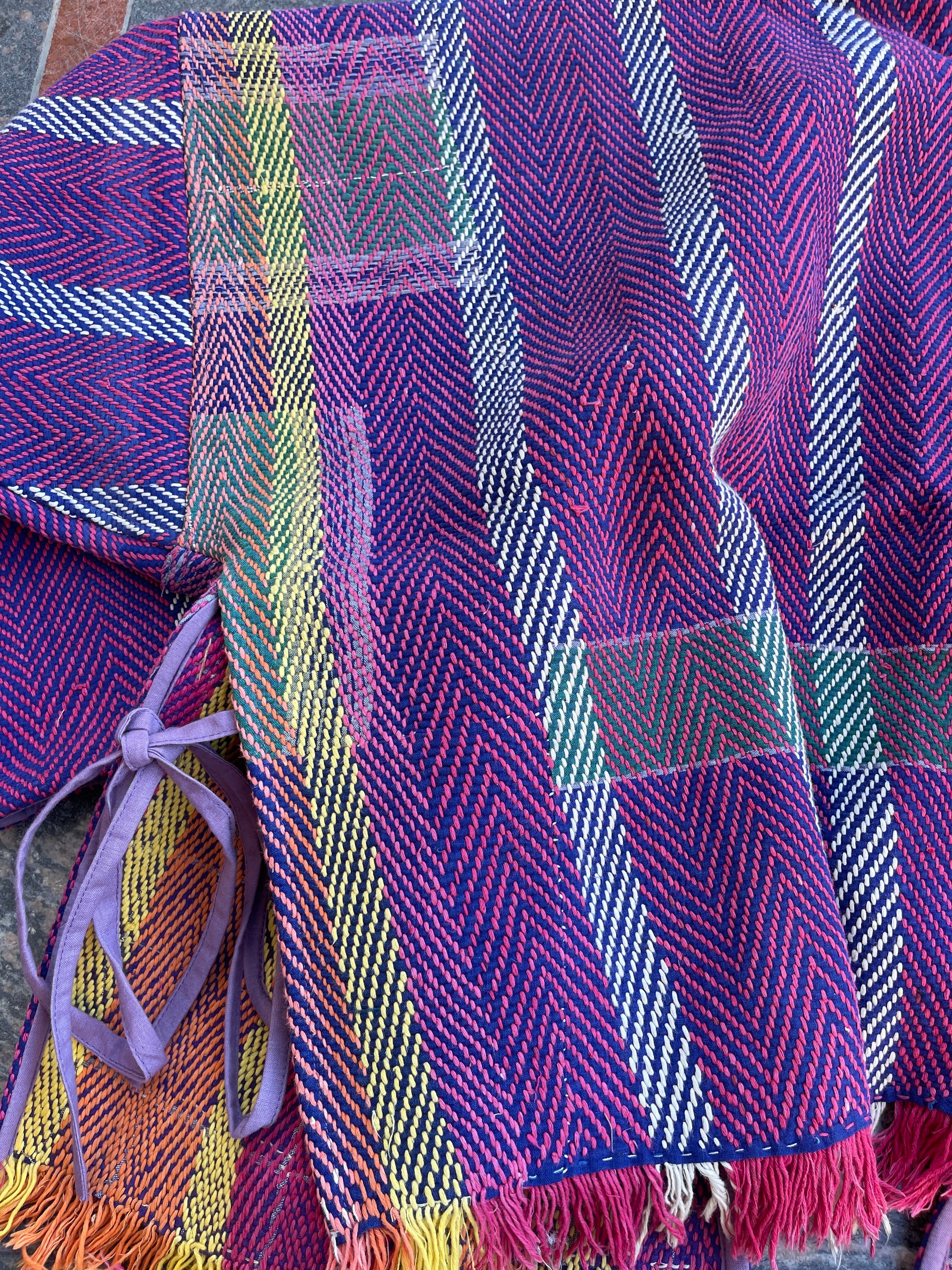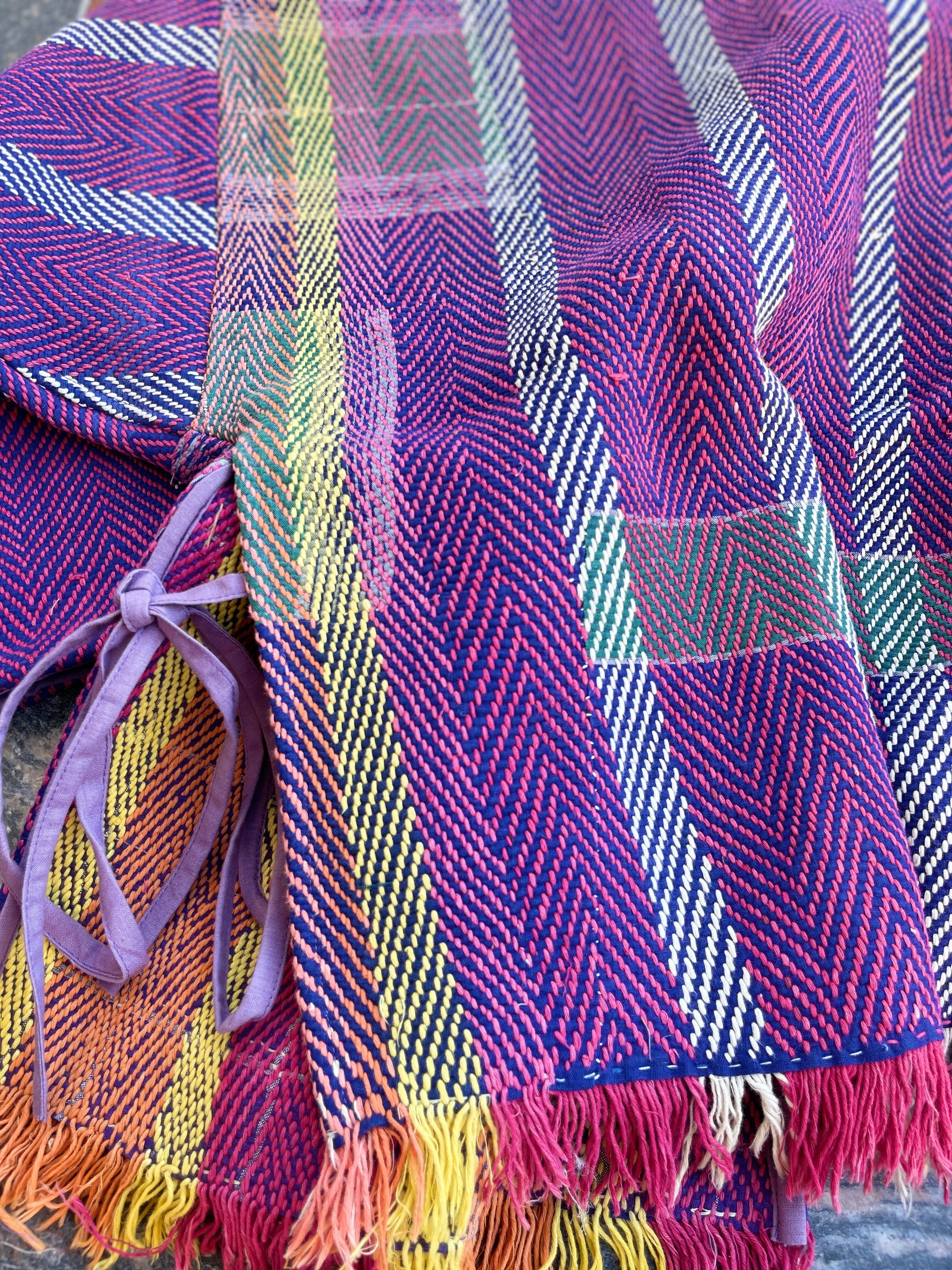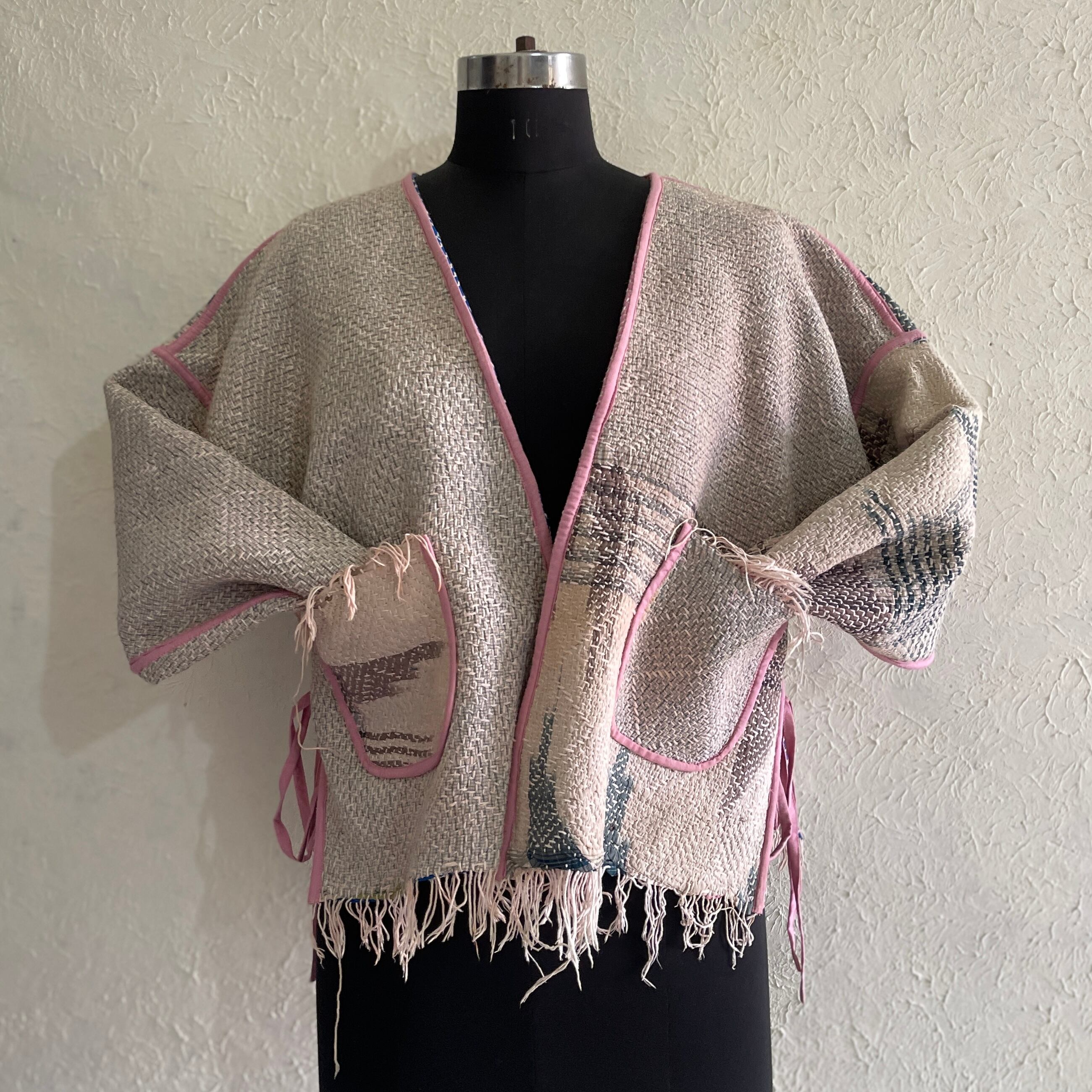 saruche Vintage パキスタングドゥリー 刺子のサイドリボンリバーシブルフリンジジャケット