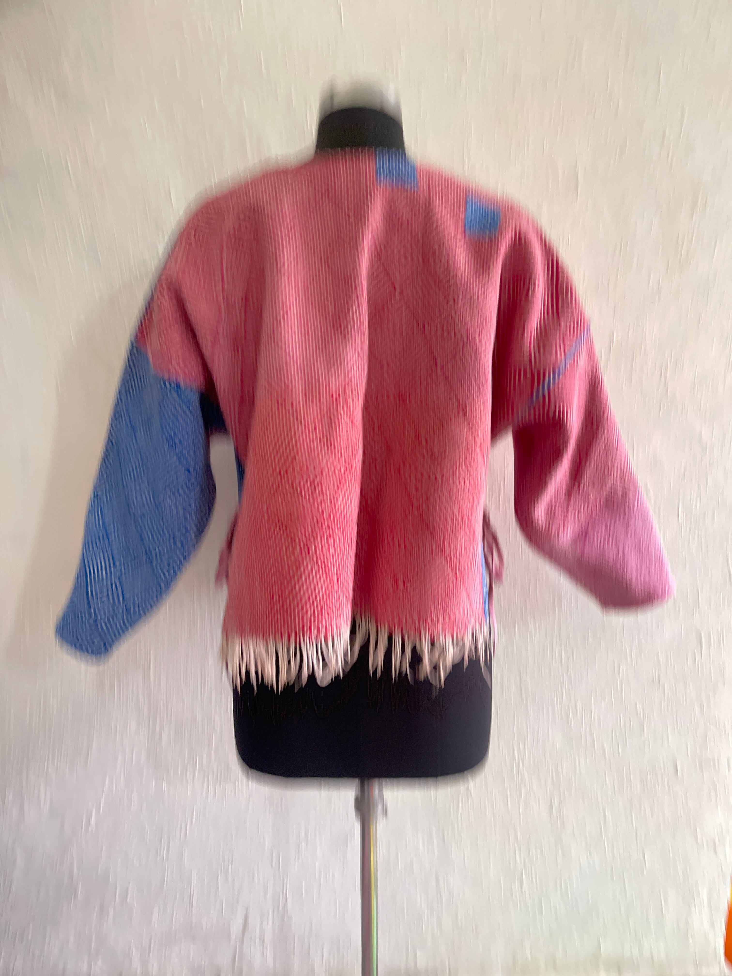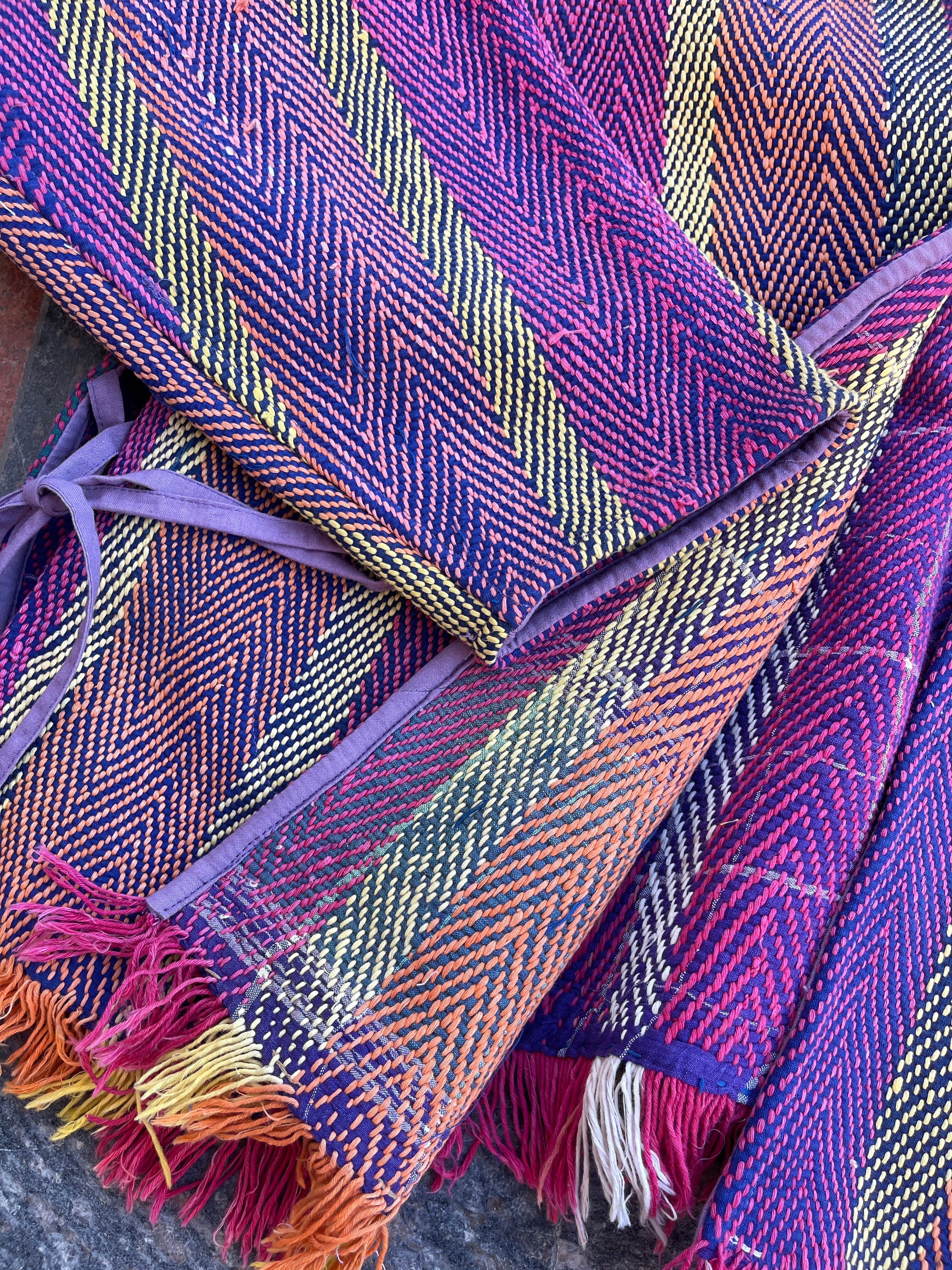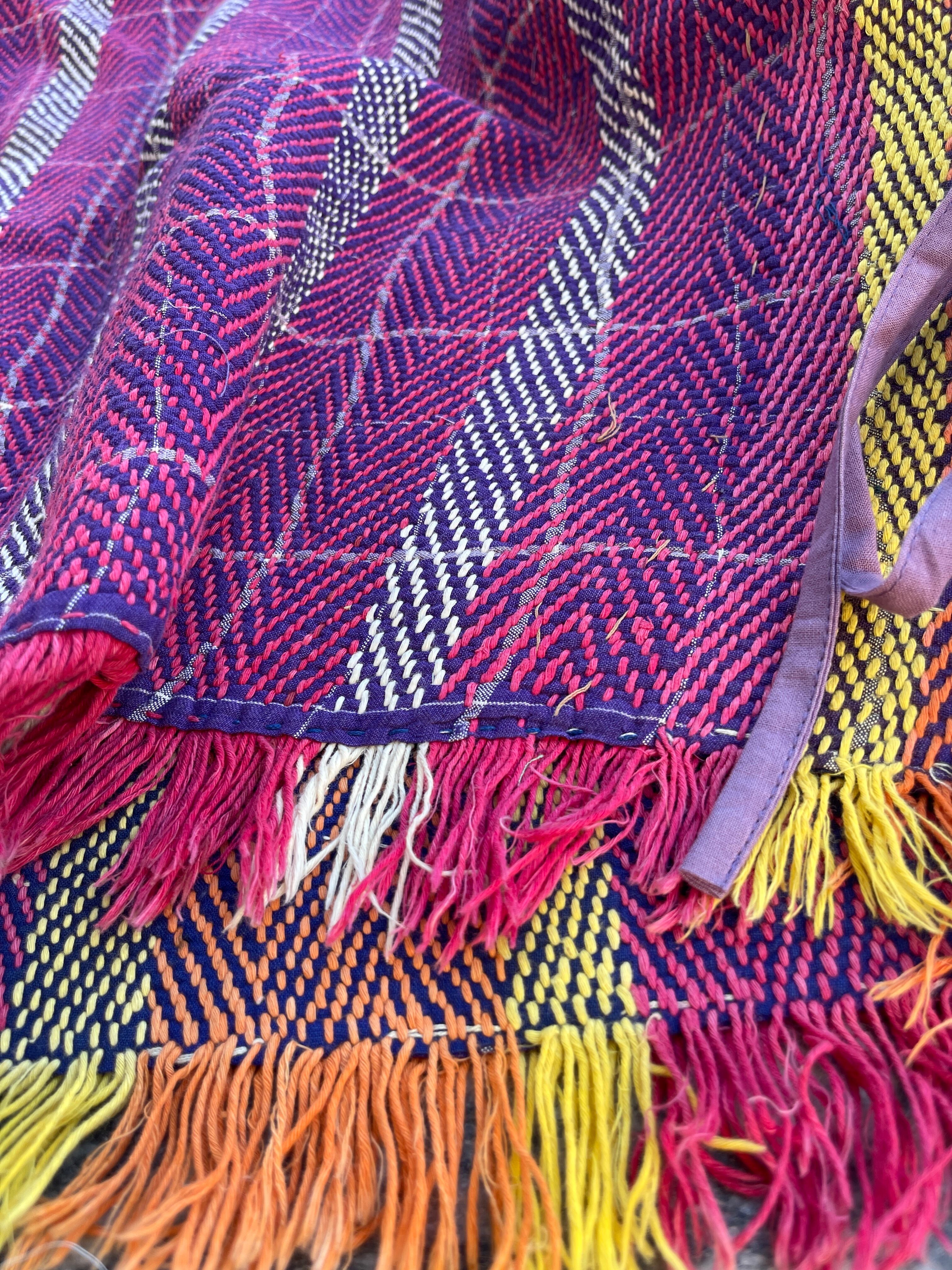 saruche Vintage パキスタングドゥリー 刺子のサイドリボンリバーシブルフリンジジャケット