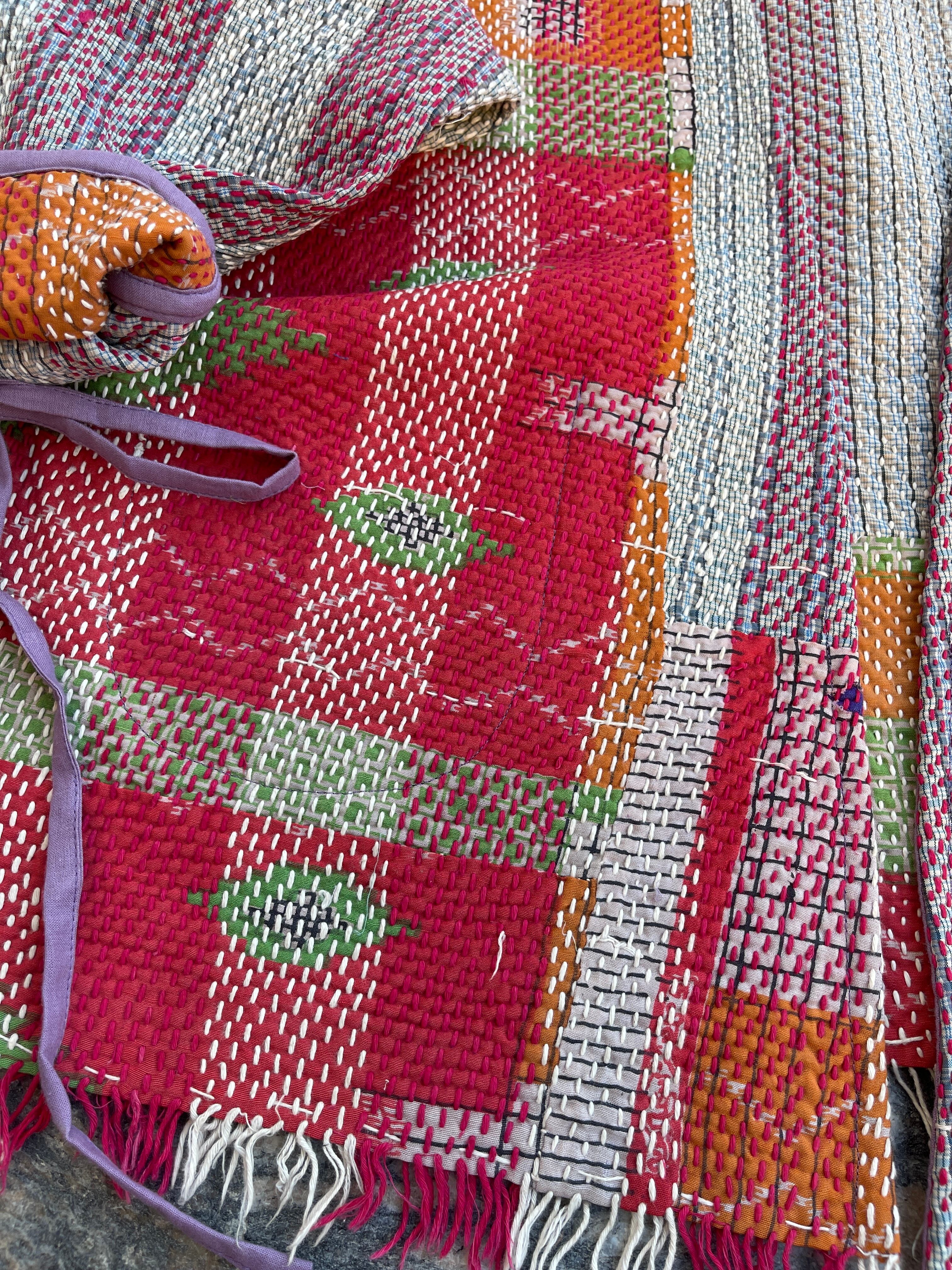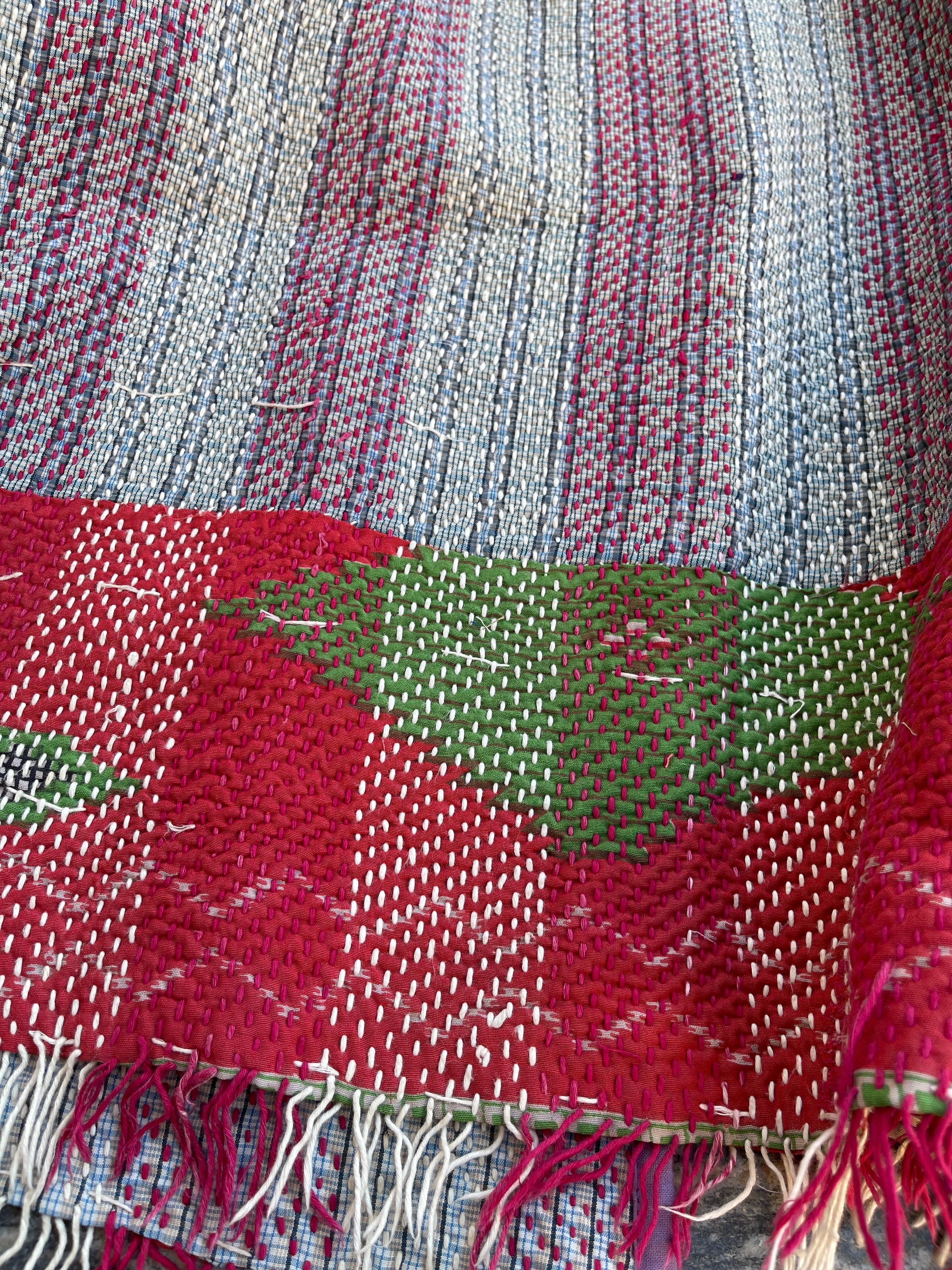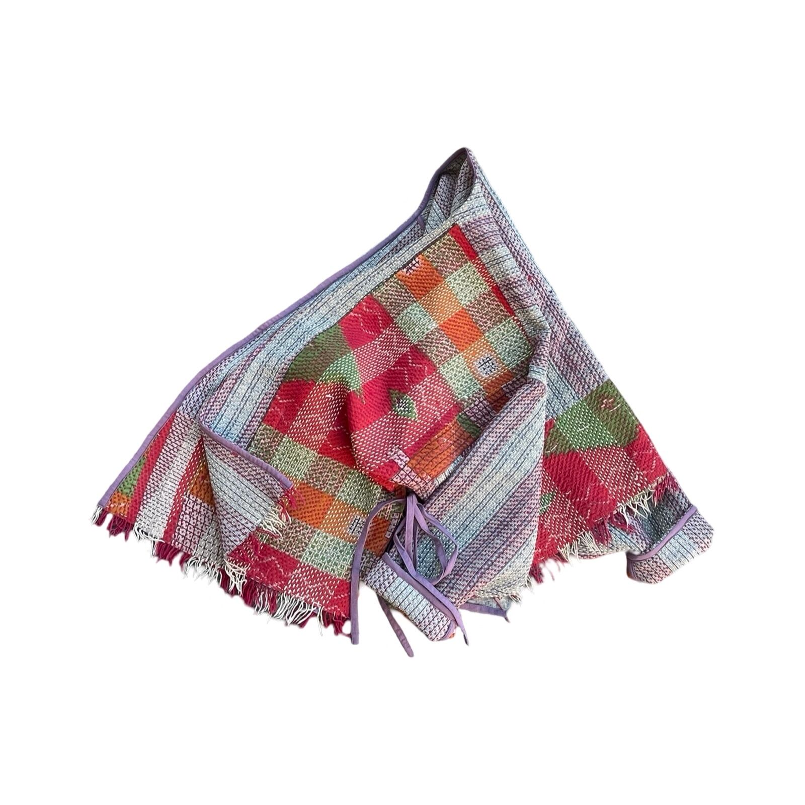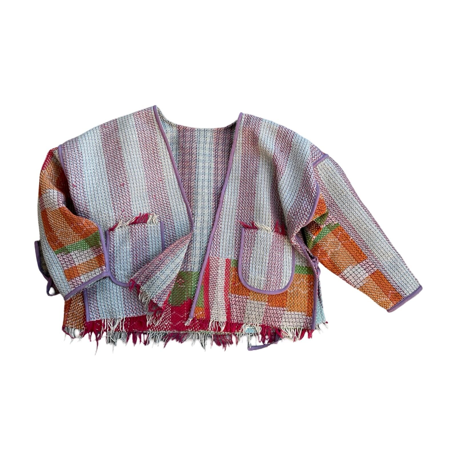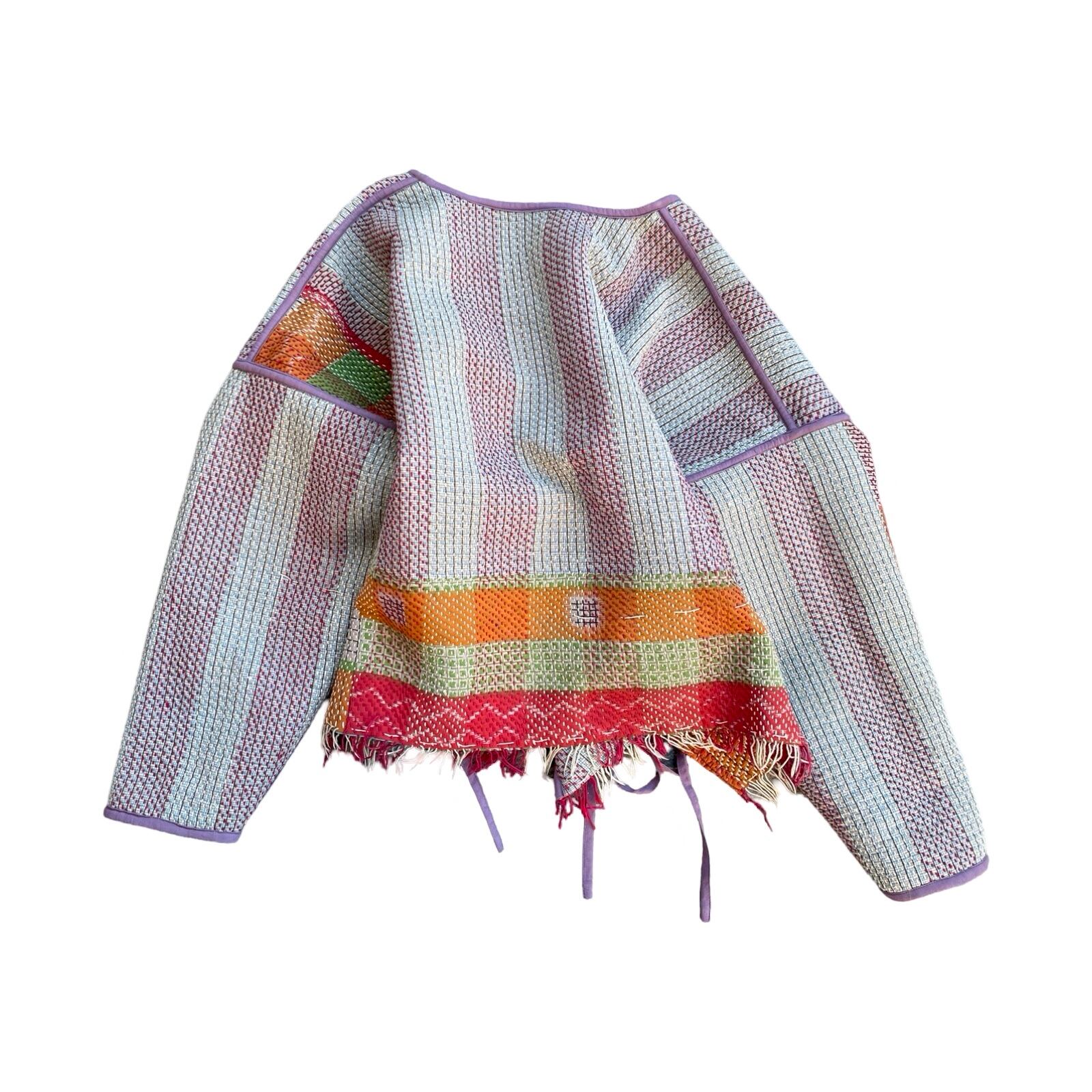 saruche Vintage パキスタングドゥリー 刺子のサイドリボンリバーシブルフリンジジャケット