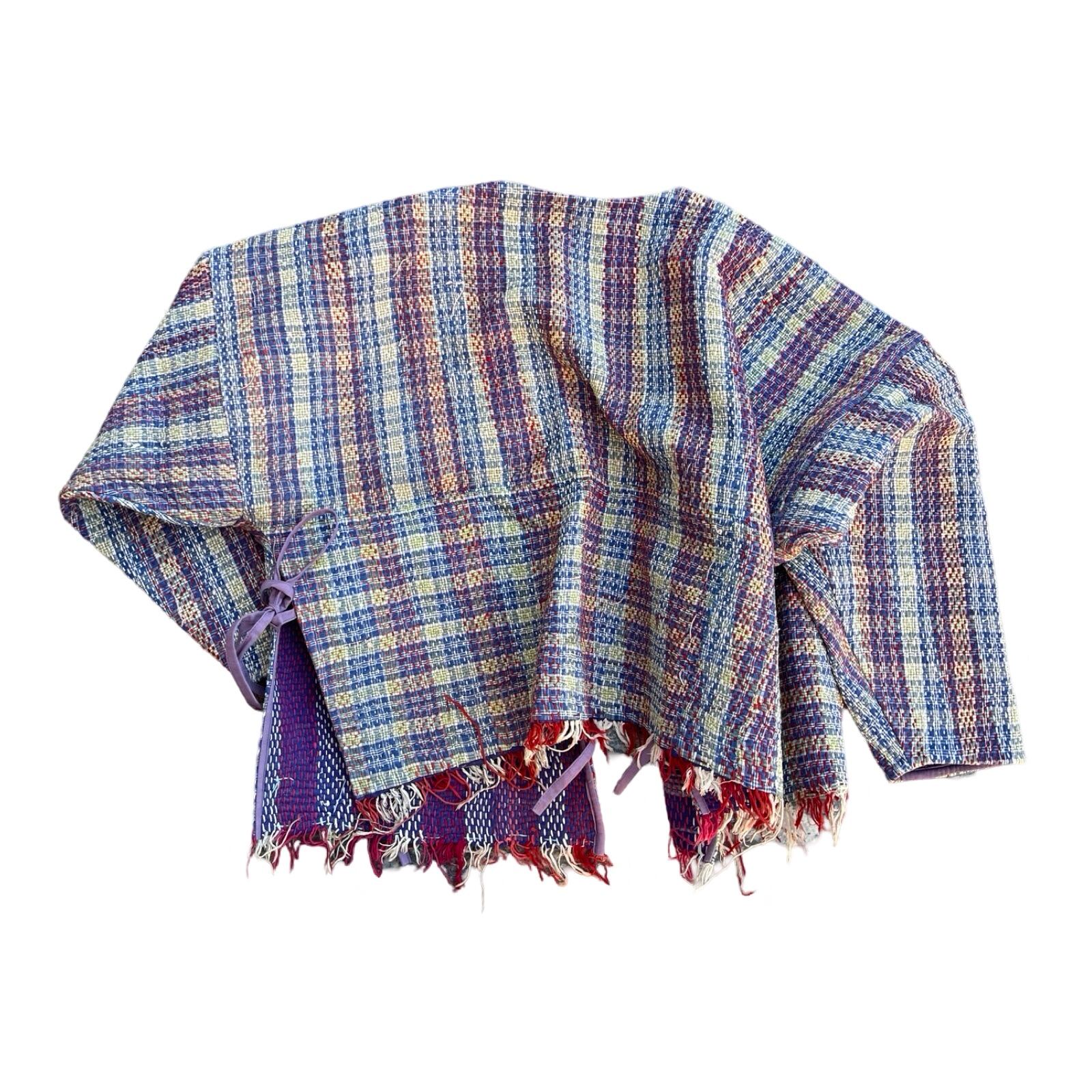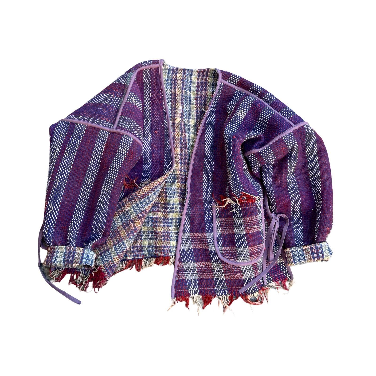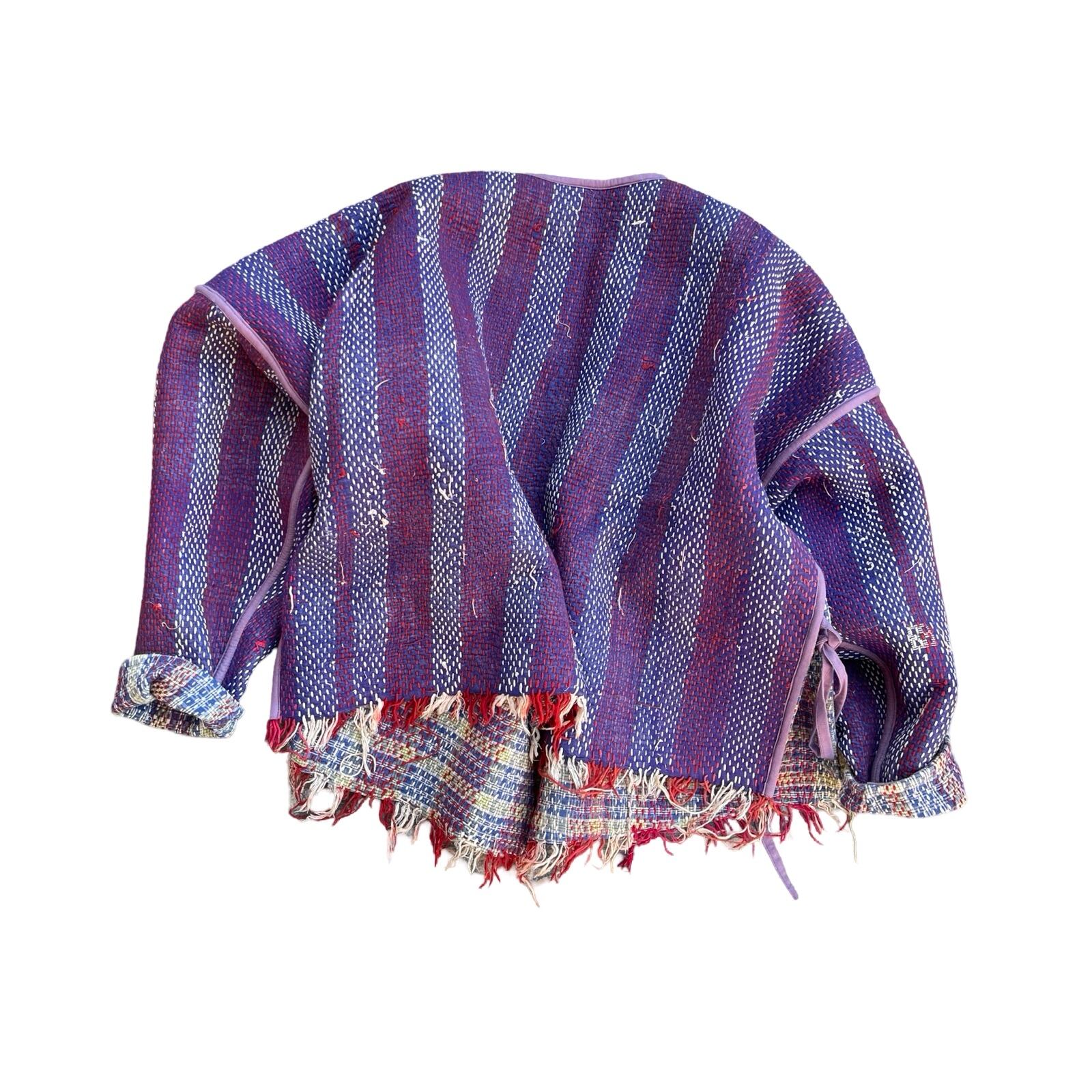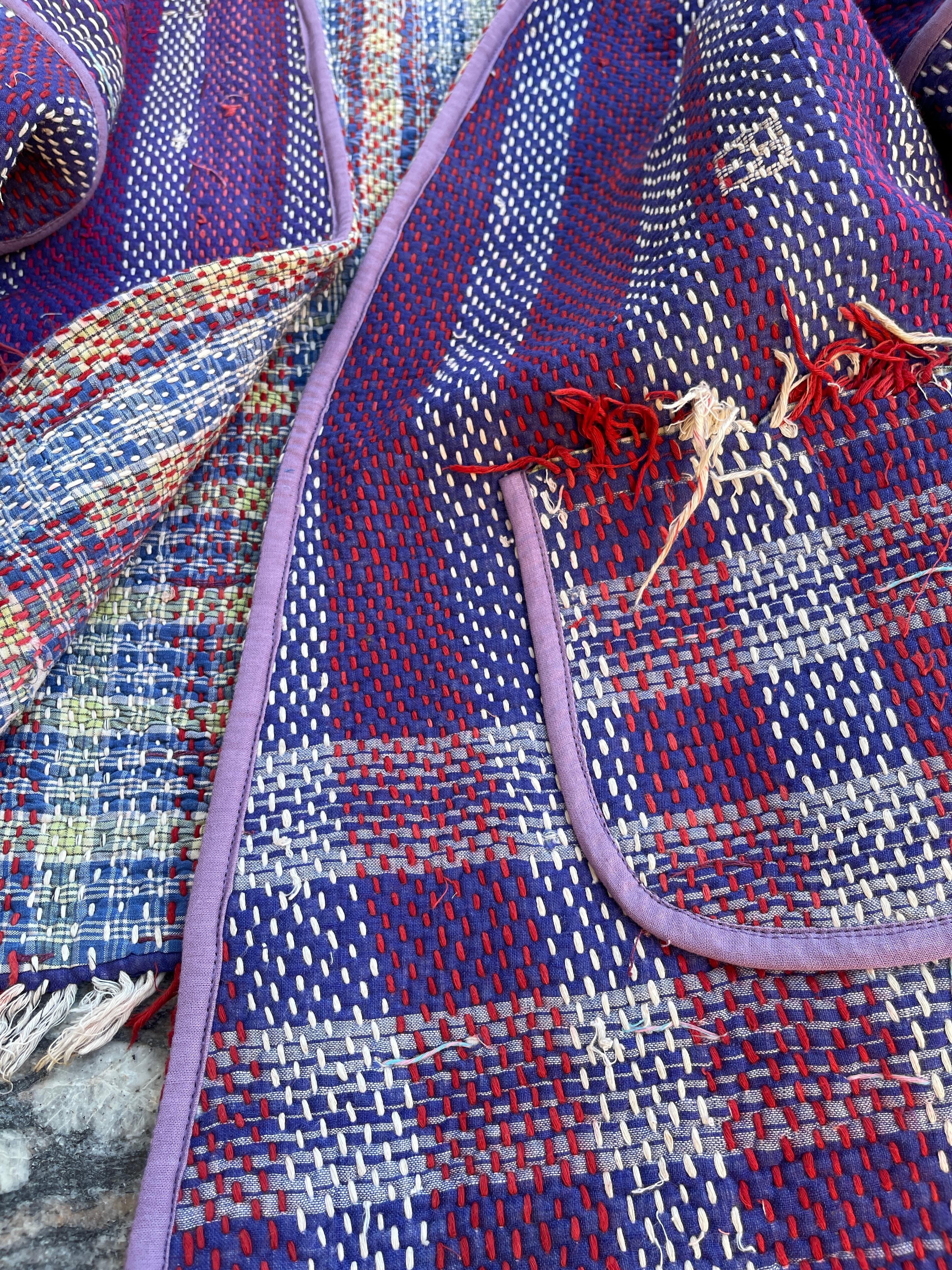 saruche Vintage パキスタングドゥリー 刺子のサイドリボンリバーシブルフリンジジャケット
